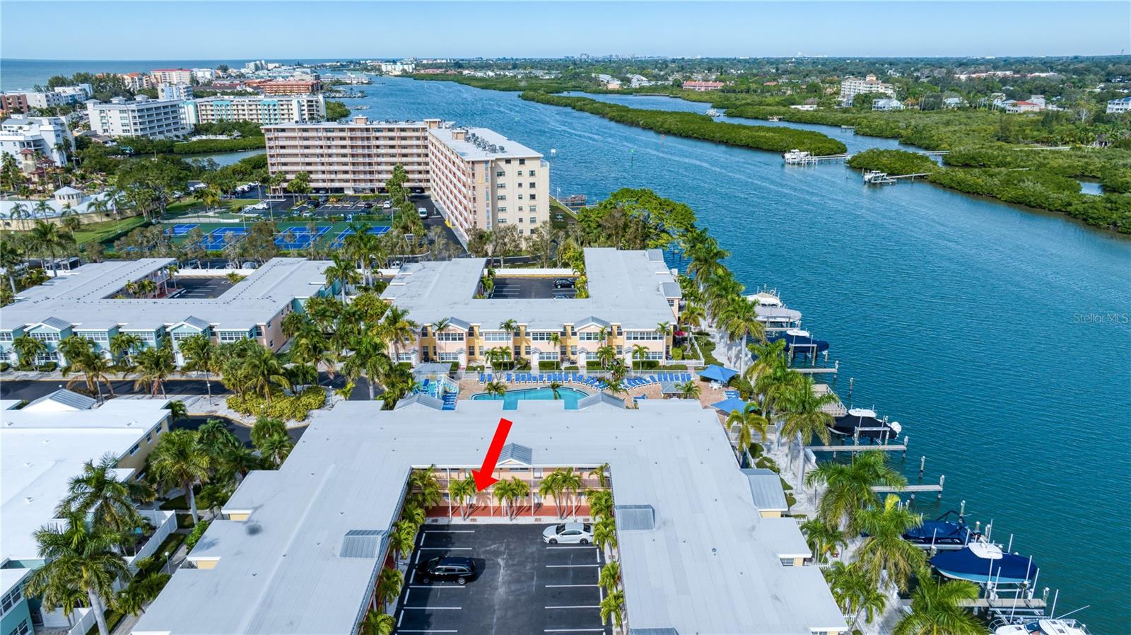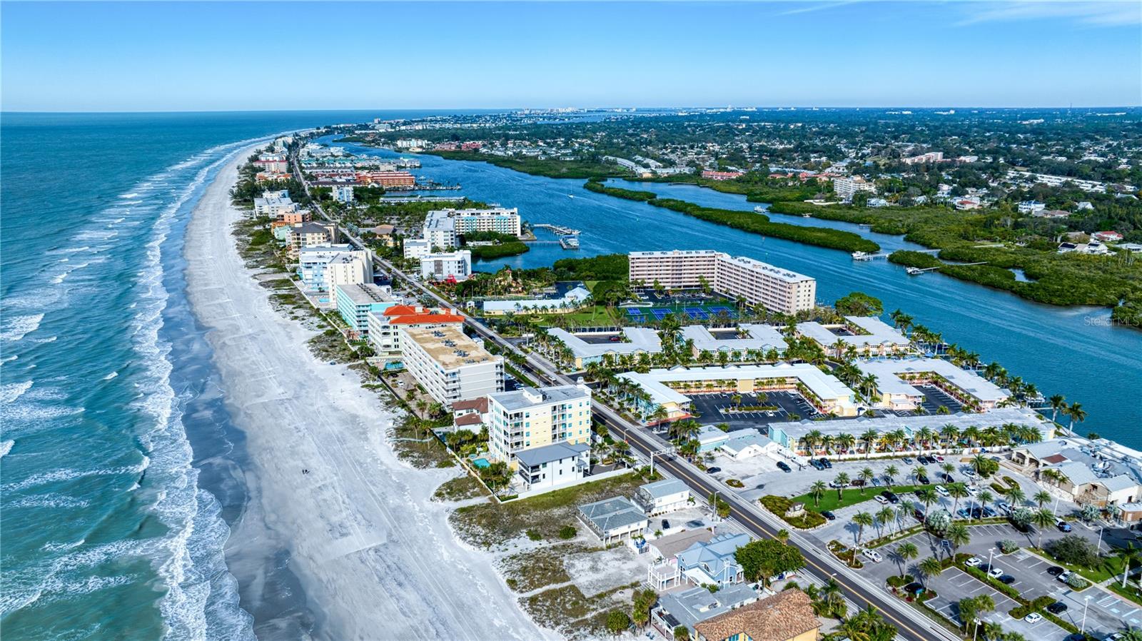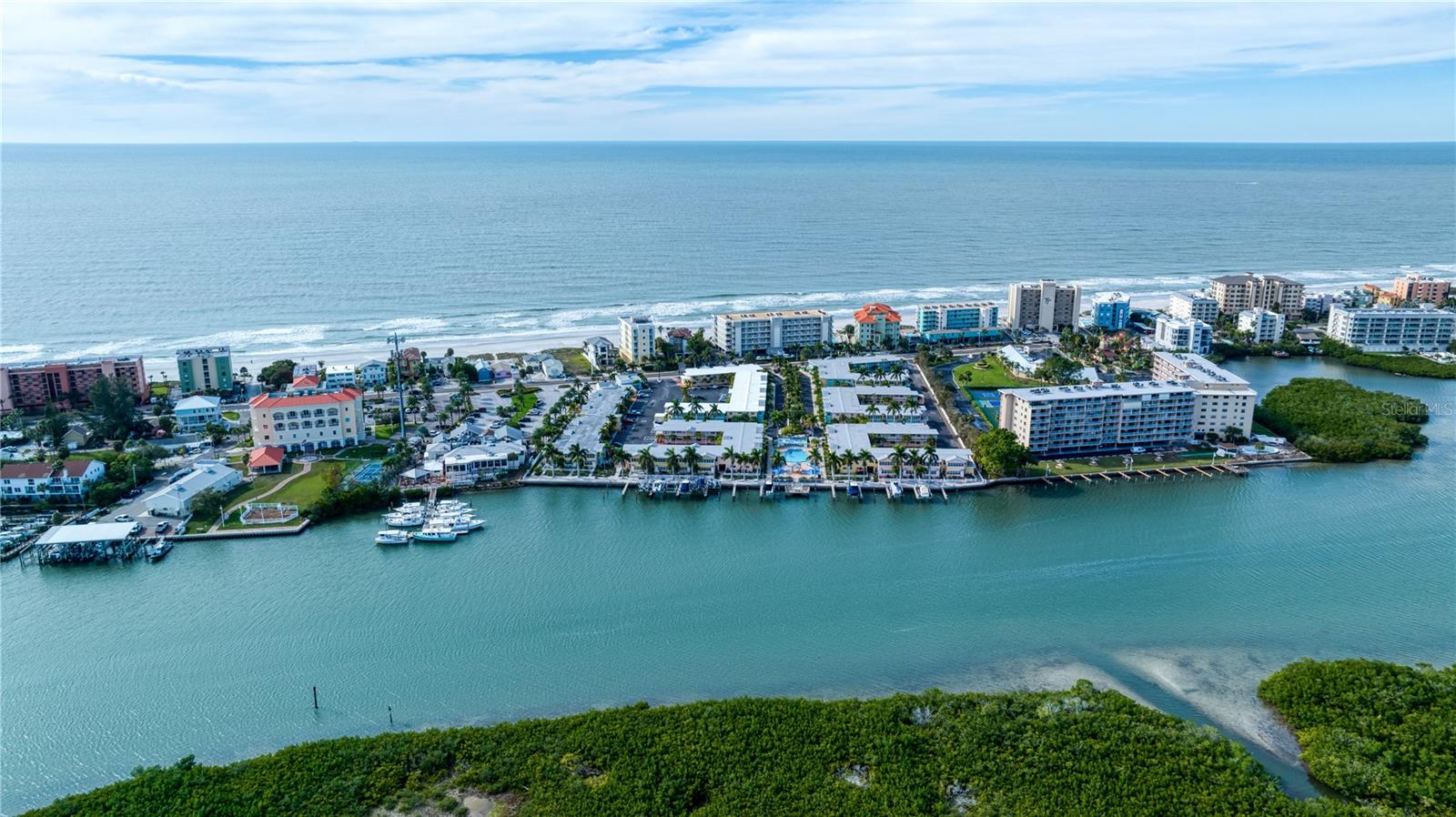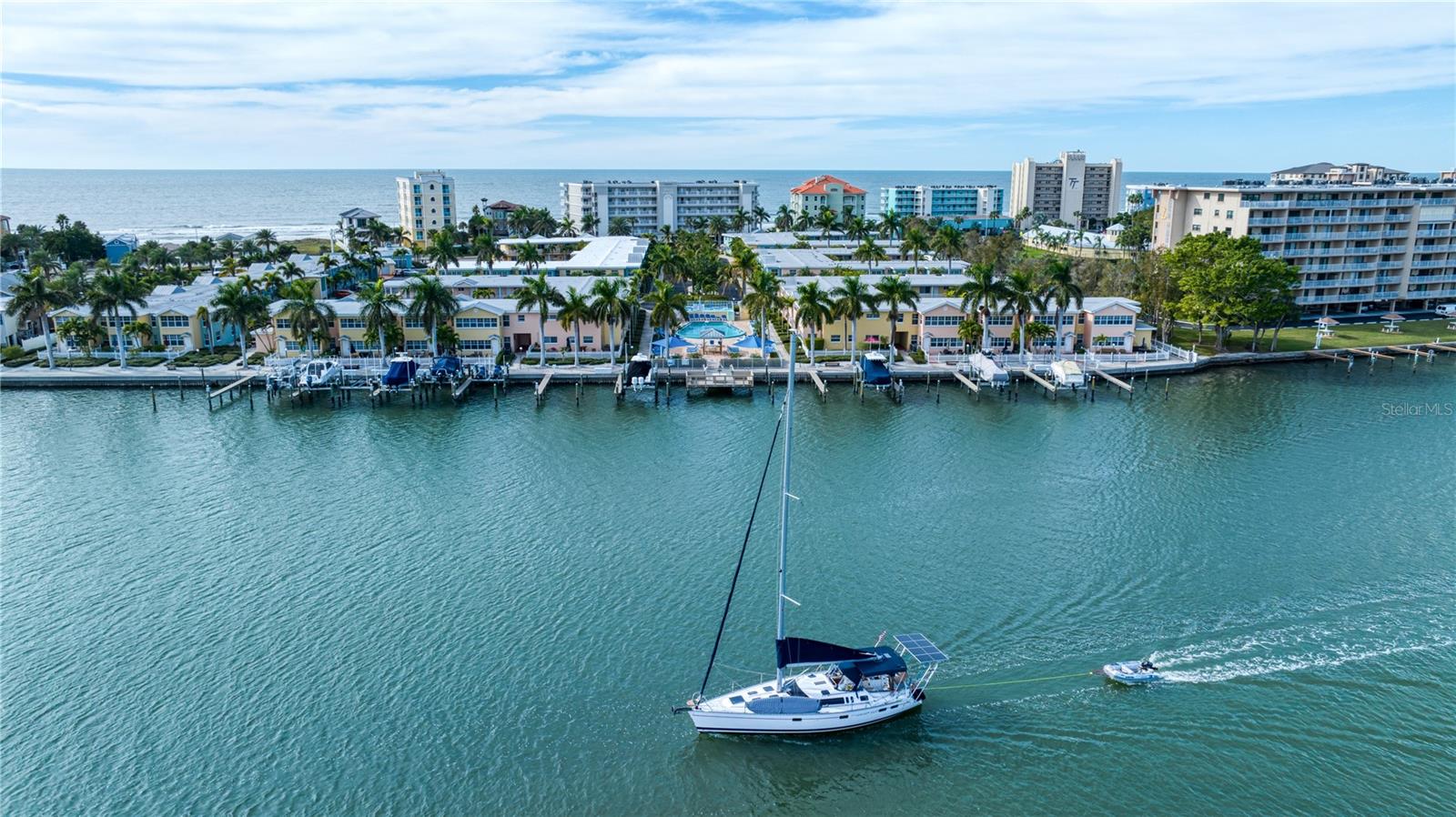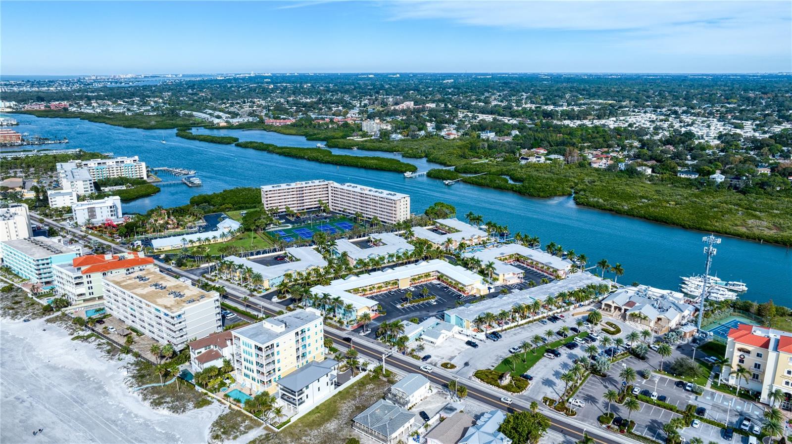 DEEDED BOAT SLIP INCLUDED!!! Indulge in the allure of a vibrant oasis in Indian Shores at Barefoot Beach Resort, boasting private beach access to the breathtaking Indian Rocks beach just steps away! The income potential is amazing and you have the opportunity to rent your property out short term or live there full or part time is so rare and unique! This property is nestled in a tropical resort on Florida's enchanting west coast, it is a fully furnished, turn-key unit, 1 Bedroom / 1 Bathroom with a deeded boat slip! The kitchen features granite counters, upgraded cabinets and appliances. Revel in a spacious layout where the dining room seamlessly merges with the living room. Escape to this prime location, perfectly situated between St Pete Beach and Clearwater Beach, where 27 miles of pristine, powdery sand beaches await. Immerse yourself in the abundance of activities, restaurants, and waterfront nightlife, with 25 options within a mere 2 miles of the property. Experience the luxury of French doors leading to a versatile Florida room/den, offering privacy for use as a second bedroom. Open another door to access the pool area conveniently located just steps away. Your gateway to aquatic bliss continues with a private boat slip on the dock, leading to the Gulf in one direction and the intracoastal in the other. This property offers more than just a residence—it's a lifestyle of leisure and convenience. Picture yourself enjoying a heated pool overlooking the coastal waterway and marina, with dolphins and boats as your backdrop. Embrace the charm of a fishing pier, picnic areas with gas grills, and bike-friendly zones. The property ensures seamless connectivity with Wi-Fi accessible throughout, complemented by two laundry facilities in every building. Seize the opportunity to own a slice of paradise with private beach access facilitated by a convenient crosswalk. No rental restrictions allow for flexible options, from daily to monthly rentals. Manage through the on-site rental office or personally curate your rental experience. Additionally, you have the option to live in the property full time, providing a perfect blend of investment and lifestyle. Convenience extends beyond the property, as downtown St Petersburg is a mere 20 minutes away, while Tampa and its airports are just 30 minutes away. Elevate your living experience; this property is not just a home, but a gateway to coastal elegance and endless possibilities.