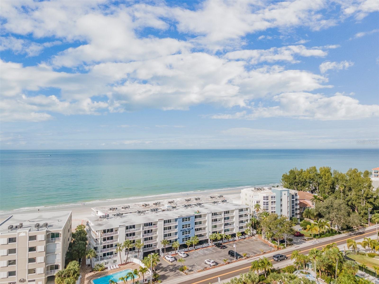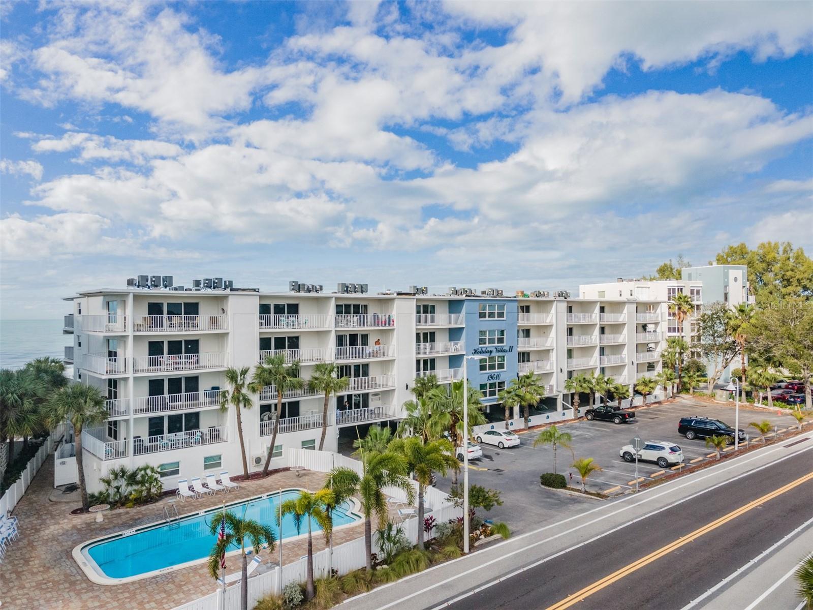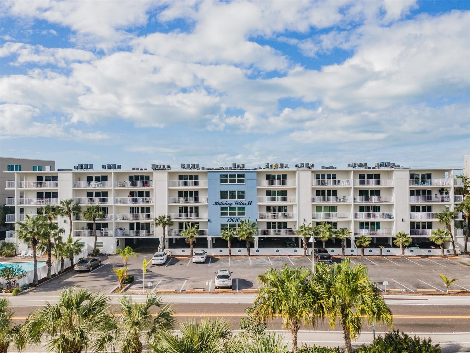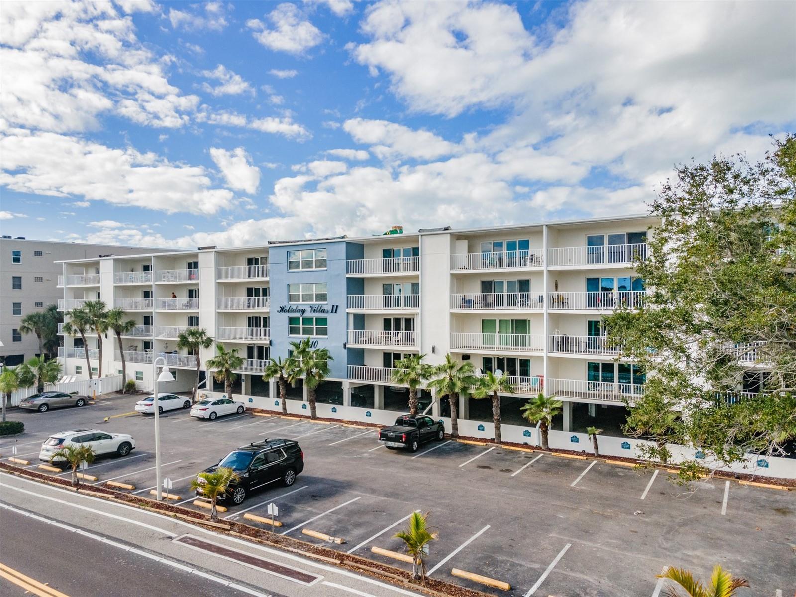 This UPDATED CONDO located in NEWLY RENOVATED Holiday Villas II is the PERFECT VACATION HOME and INCOME GENERATING property. The Beach location and 4 NIGHT MINIMUM RENTAL POLICY are an ideal combination! This unit is your real money-maker! The Condo has been updated with VINYL PLANK floors throughout and tile in the baths. The OPEN FLOOR PLAN combines the kitchen, living area, and dining room seamlessly. Both bedrooms are SPACIOUS with ample storage/closet space. The Master has an EN SUITE BATH with stone counters, updated fixtures, and tub/shower combination. The IMPACT RATED SLIDERS lead you to a large balcony that offers a view of the Intercoastal to the North. This unit is sold TURNKEY so you can begin enjoying beach life immediately. 2023/2024 BUILDING RENOVATION includes - Concrete and stucco repair, NEW WEST ROOF, Gemstone balcony sealing, PAINT, Garage columns, beams and concrete panels, and other miscellaneous work to be finished this Fall. Holiday Villas II is a popular vacation spot since the building is directly on the beach and has a HEATED POOL. For your peace of mind the elevator, stairwells, pool, and beach are by SECURE ACCESS only. Your reserved parking is UNDER THE BUILDING. Soaking up Sun, Gulf Swims, Sunset Beach Strolls, Dolphins, Cute Beach Shops, and Great Restaurants- these opportunities are ALL INCLUDED! Make it yours today!!