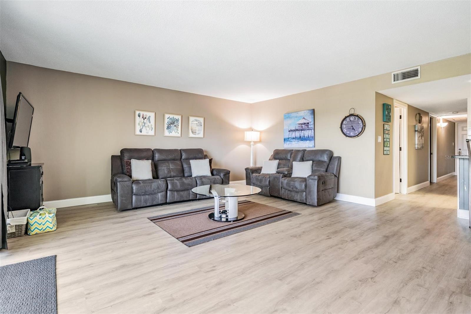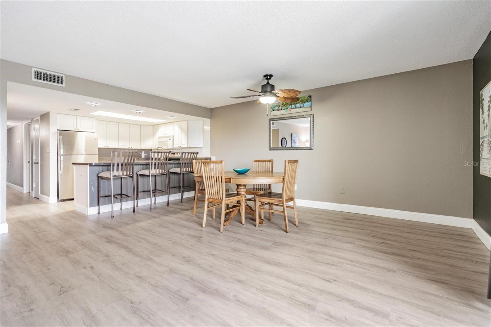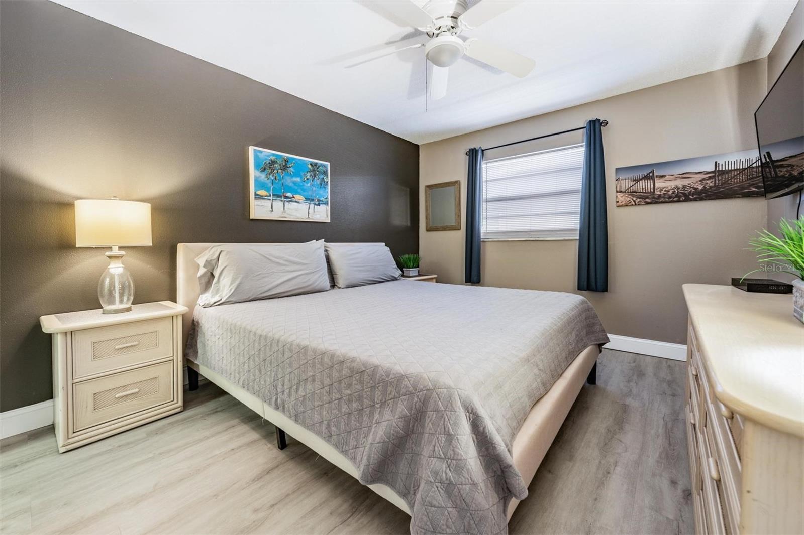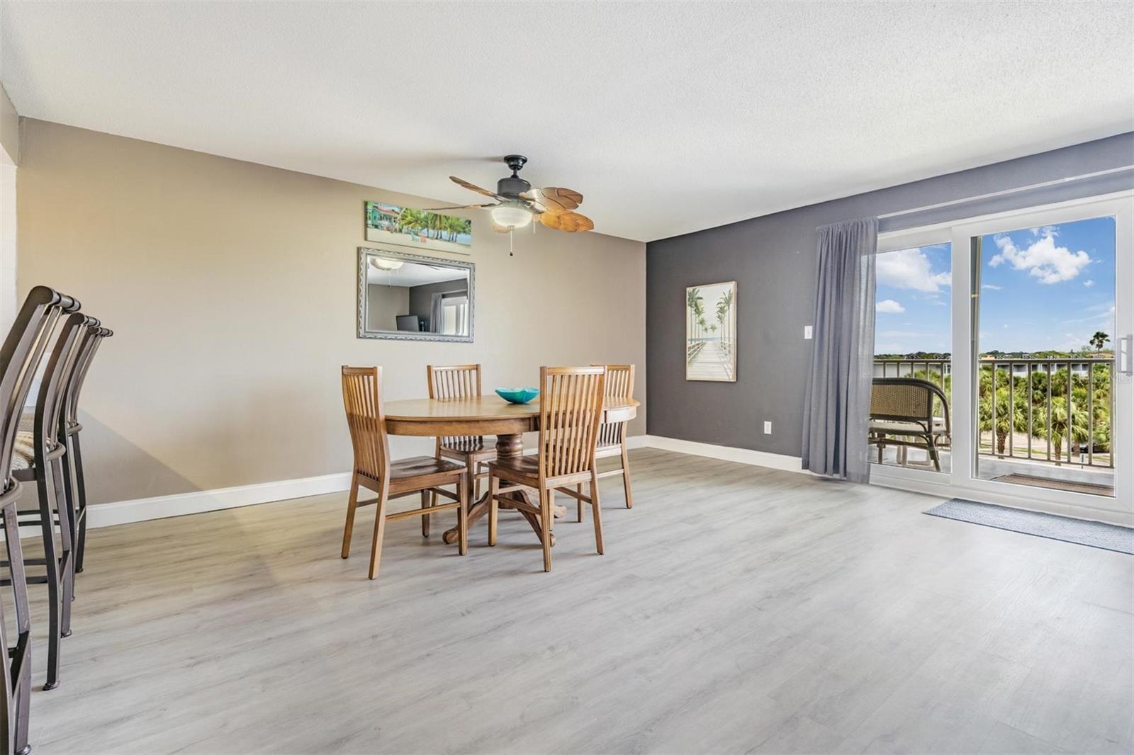 This UPDATED CONDO located in NEWLY RENOVATED Holiday Villas II is the PERFECT VACATION HOME and INCOME GENERATING property. The Beach location and 4 NIGHT MINIMUM RENTAL POLICY are an ideal combination! This unit is your real money-maker! The Condo has been updated with VINYL PLANK floors throughout and tile in the baths. The OPEN FLOOR PLAN combines the kitchen, living area, and dining room seamlessly. Both bedrooms are SPACIOUS with ample storage/closet space. The Master has an EN SUITE BATH with stone counters, updated fixtures, and tub/shower combination. The IMPACT RATED SLIDERS lead you to a large balcony that offers a view of the Intercoastal to the North. This unit is sold TURNKEY so you can begin enjoying beach life immediately. 2023/2024 BUILDING RENOVATION includes - Concrete and stucco repair, NEW WEST ROOF, Gemstone balcony sealing, PAINT, Garage columns, beams and concrete panels, and other miscellaneous work to be finished this Fall. Holiday Villas II is a popular vacation spot since the building is directly on the beach and has a HEATED POOL. For your peace of mind the elevator, stairwells, pool, and beach are by SECURE ACCESS only. Your reserved parking is UNDER THE BUILDING. Soaking up Sun, Gulf Swims, Sunset Beach Strolls, Dolphins, Cute Beach Shops, and Great Restaurants- these opportunities are ALL INCLUDED! Make it yours today!!
