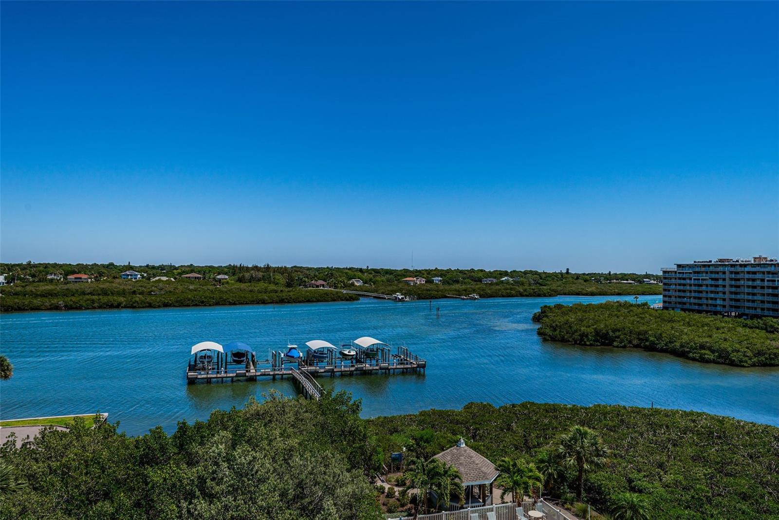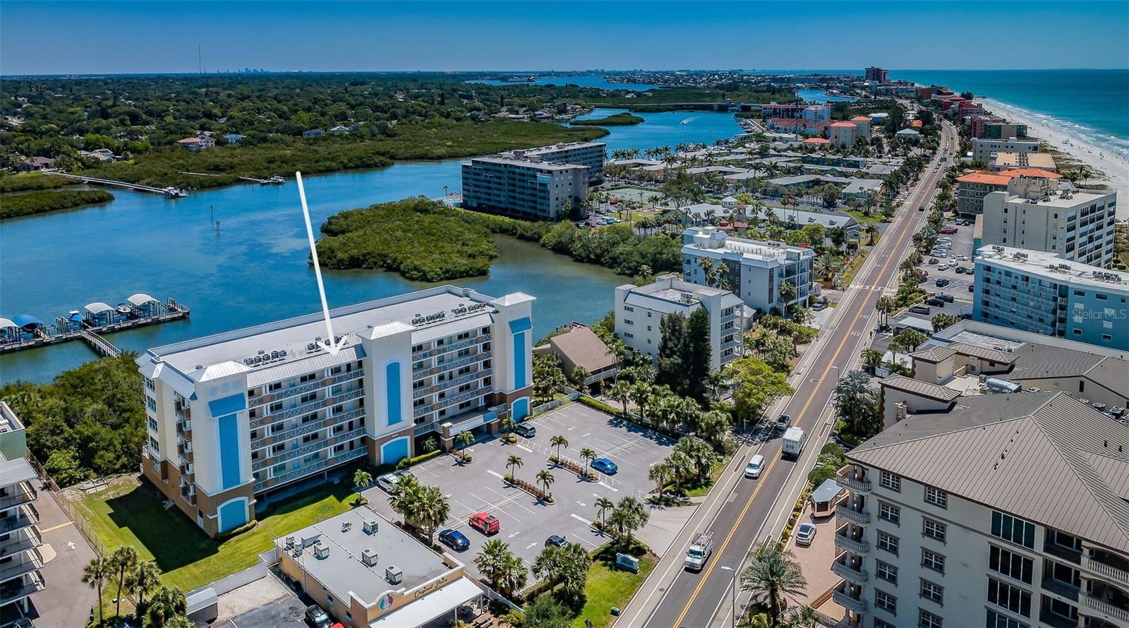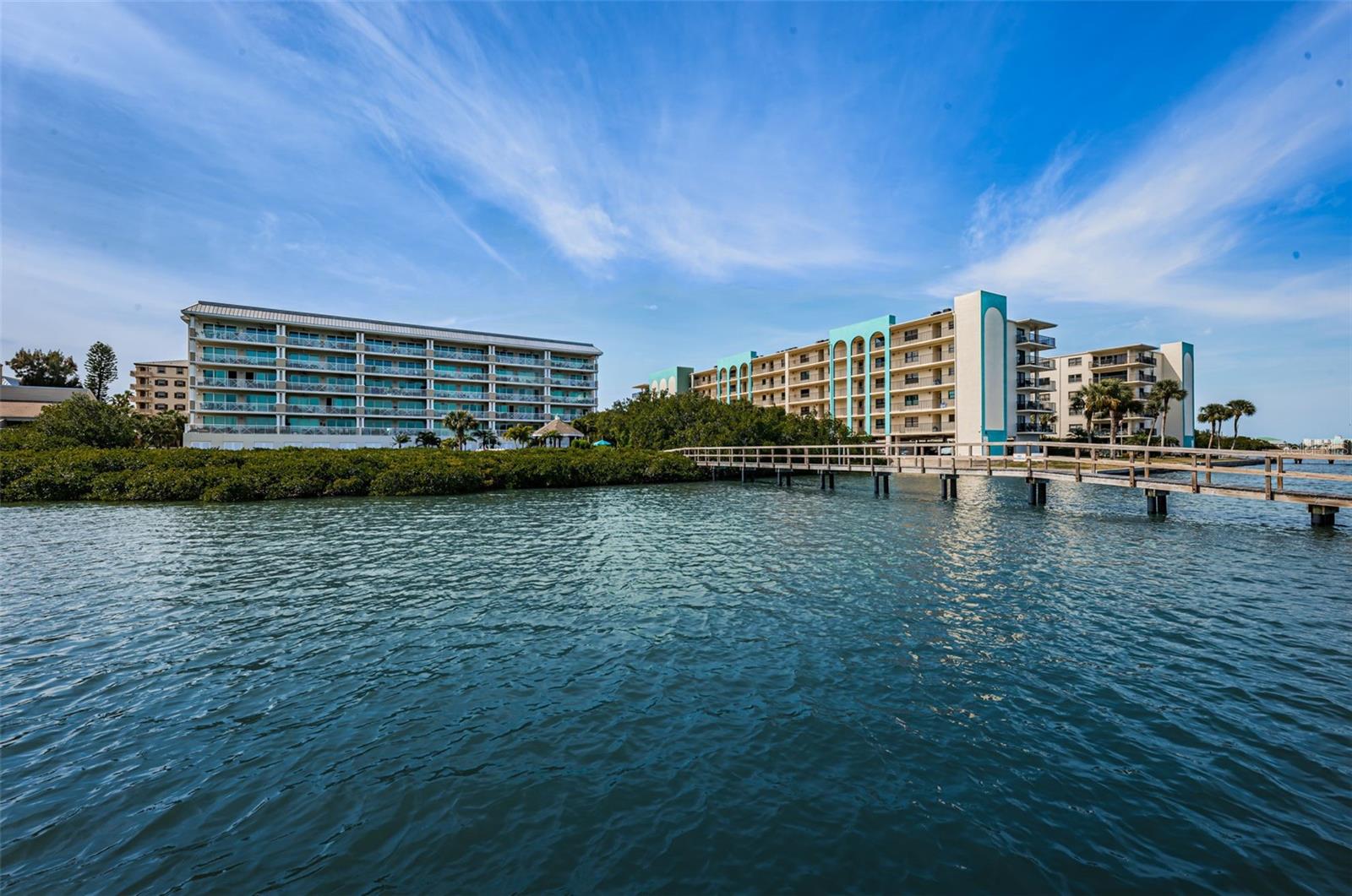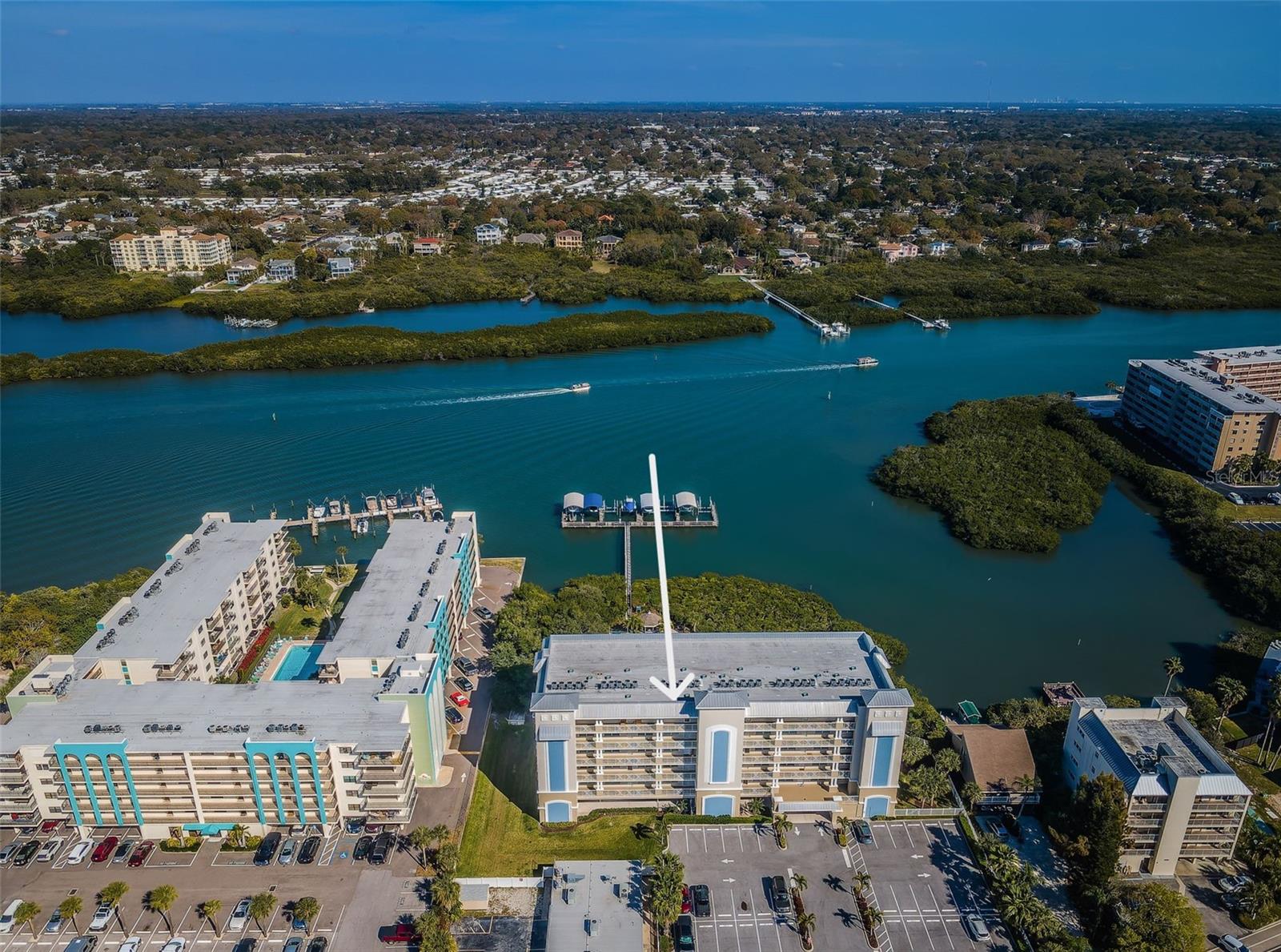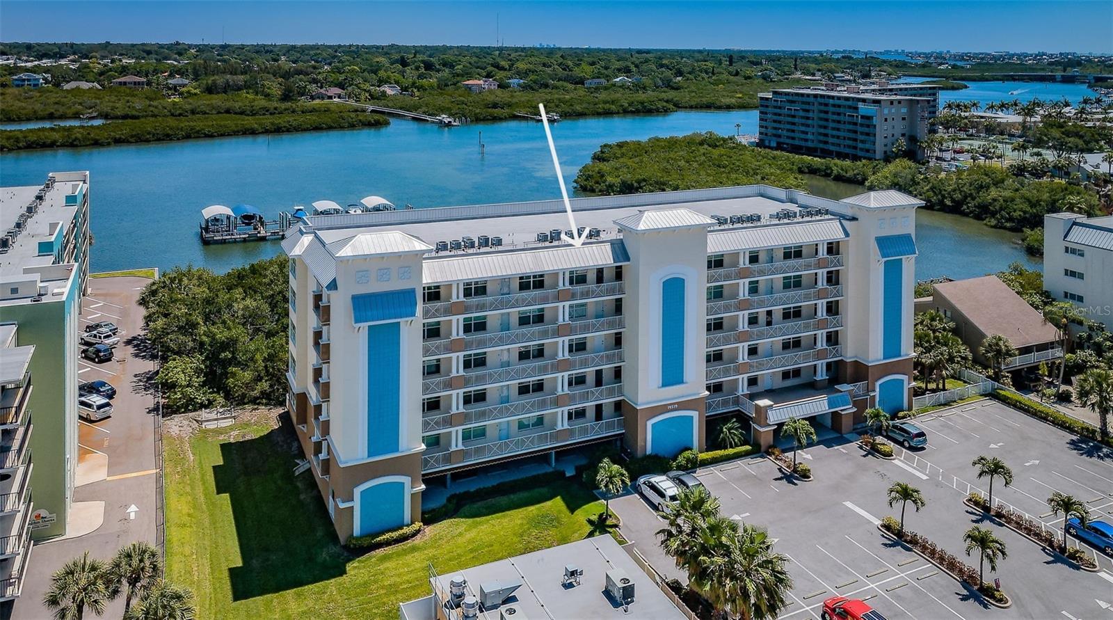 STUNNING PENTHOUSE LEVEL Residence at the HIGHLY SOUGHT AFTER, Coastal Contemporary Dolphin Key Condos in Indian Shores! Sophisticated and maintenance-free living DIRECTLY on the Intracoastal Waterway with SWEEPING, UNOBSTRUCTED water views! LIKE NEW 3 BR, 2 BA, 1560 SF TOP FLOOR residence in a PREMIER 30 unit condo community built in 2017 with DESIGNER finishes and an EXPANSIVE, SUN DRENCHED 300 square foot WATERFRONT balcony overlooking the Intracoastal Waterway! Entertaining is effortless as family and friends flow easily between the Kitchen, Dining & Living area and then step through the IMPACT RATED TRIPLE sliding doors and onto the waterfront balcony that features EXCEPTIONAL, unobstructed waterfront views! Some additional VALUE-ADDED features include, post-tension reinforced concrete construction, textured concrete masonry exterior walls, metal standing seam roofing system, paver entry drive from Gulf Blvd, coded entry, Cat 5 wiring, HIGH CEILINGS that only a top floor can boast, three SKYLIGHTS (that only the top floor boasts!) that bring in the indirect lighting, LVP flooring in the living areas and bedrooms, Ultra-Chic & Customized Kitchen with quartz countertops, white shaker 42 inch cabinets, stainless steel appliances, on demand hot water heater, plenty of cabinet space & storage and crown molding! If FIRST IMPRESSIONS are important, a GRACIOUS foyer greets your guests and will take you into the living areas. Down the hallway and through the kitchen area lies an ELEGANT, sun-filled living area and sliding doors to the balcony! The upgraded kitchen with large breakfast bar overlooking the living area is the family center that lets the soul of the home shine through! Enjoy “Suite Retreat” in your large WATERFRONT Master Suite with IMPACT RATED triple sliding glass doors taking you out to your HUGE, waterfront balcony, a SUMPTUOUS 5 PC bath & dual walk in closets! There are two GENEROUS sized secondary bedrooms off the entry with ample closet space, plantation shutters and most importantly, both with wonderful views of the Gulf of Mexico just across the street! The second full bath is adjacent to one of the bedrooms and could easily be an ENSUITE bedroom! Enjoy evening sunsets and views of the Gulf of Mexico DAILY from your front porch – the top floor gives you a PREMIUM VIEW of the Gulf for those magnificent Tangerine sunsets! There is a convenient inside full sized laundry closet with additional storage, 2 assigned parking spaces - one under building and one in front, custom closet systems & more! Community amenities to include a Resort like HEATED Pool and Spa, waterfront recreation deck, Barbecue gas grills, Private & very intimate Gazebo, LOVELY promenade along the shoreline, boardwalk to the dock, fire pit, kayak storage, ample guest parking and much more! LIKE NEW WITHOUT THE WAIT, Dolphin Key Condos in Indian Shores - be the envy of all with this UNRIVALED TOP FLOOR, Contemporary residence!