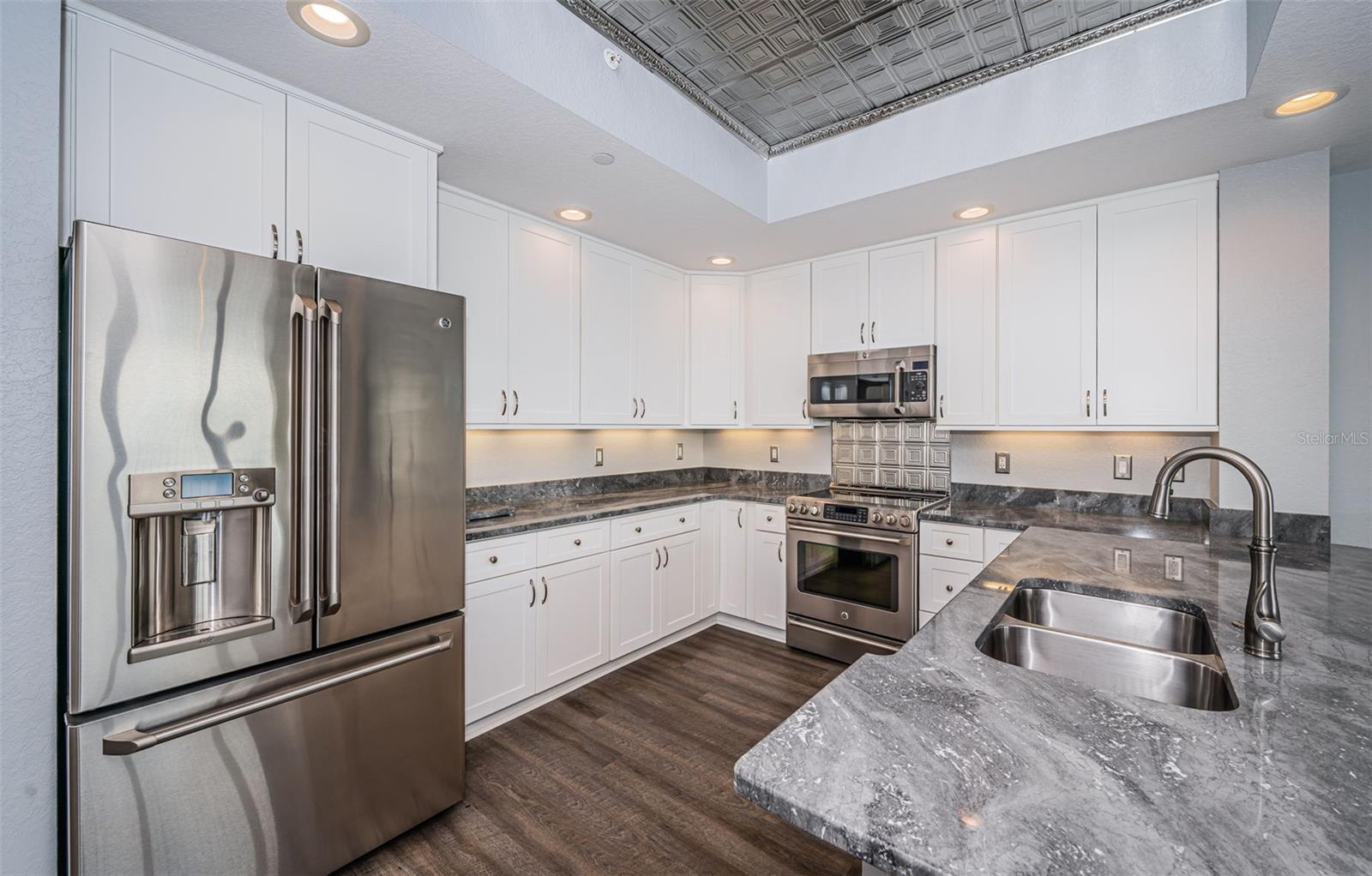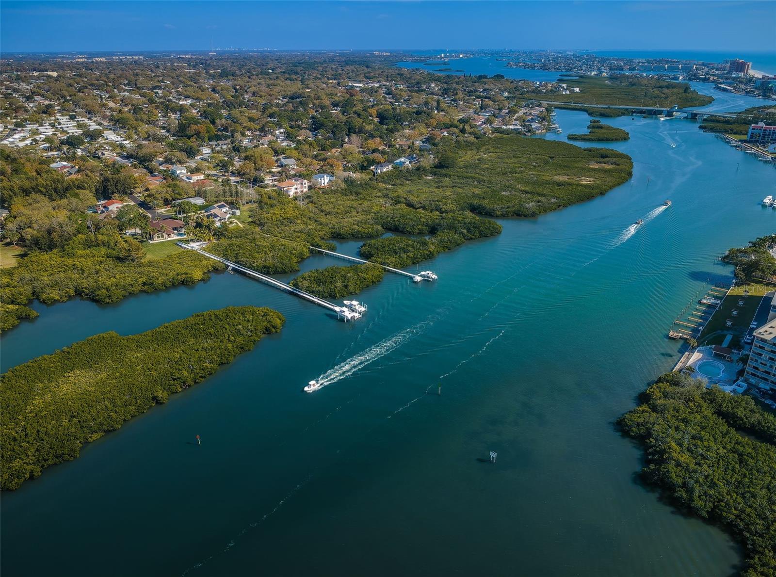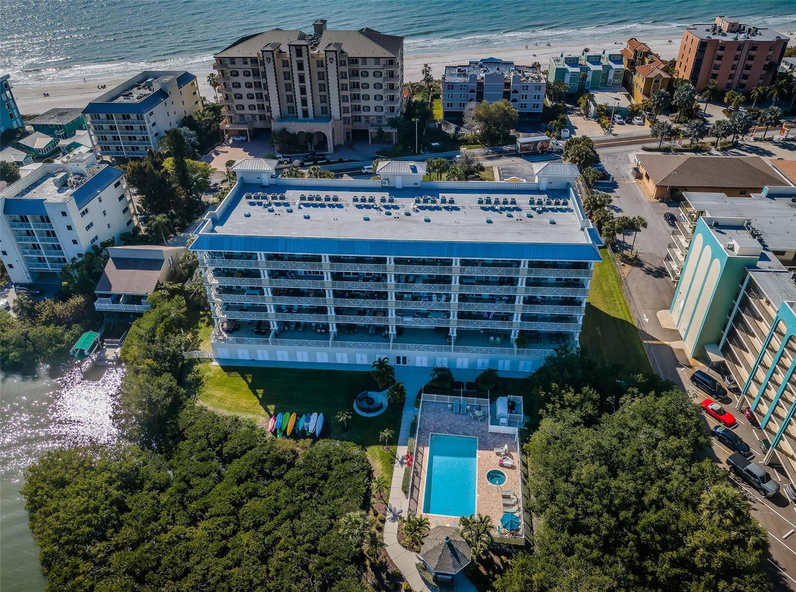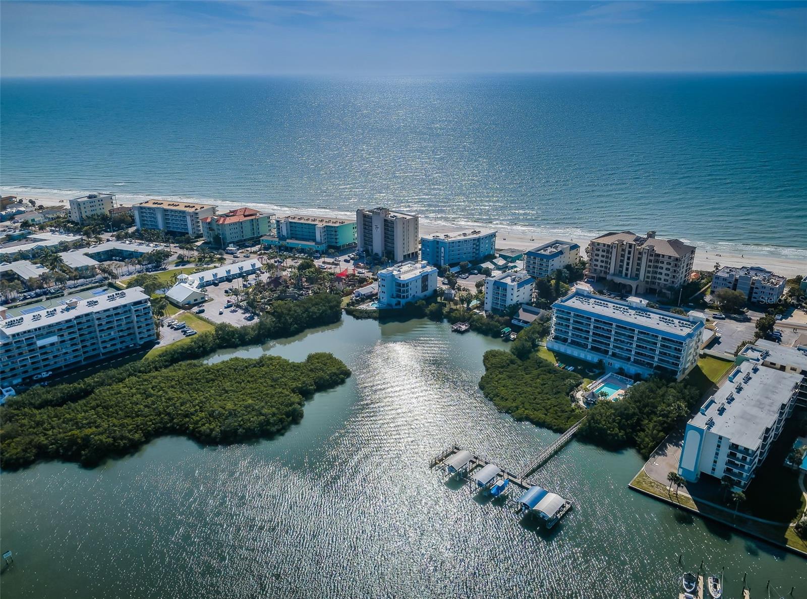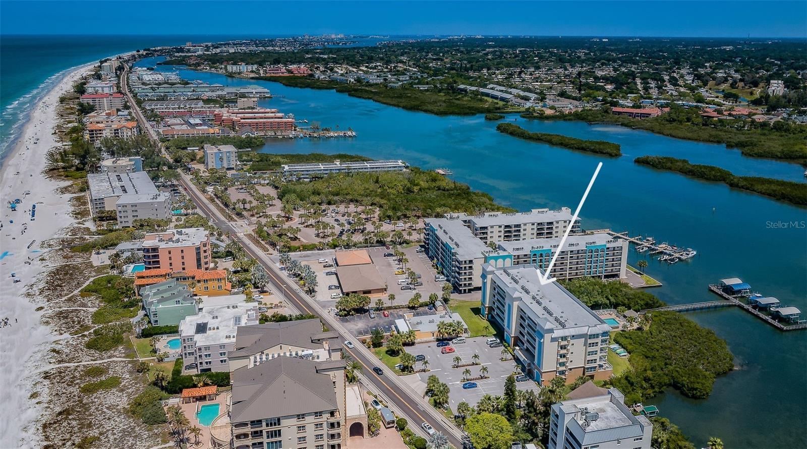STUNNING PENTHOUSE LEVEL Residence at the HIGHLY SOUGHT AFTER, Coastal Contemporary Dolphin Key Condos in Indian Shores! Sophisticated and maintenance-free living DIRECTLY on the Intracoastal Waterway with SWEEPING, UNOBSTRUCTED water views! LIKE NEW 3 BR, 2 BA, 1560 SF TOP FLOOR residence in a PREMIER 30 unit condo community built in 2017 with DESIGNER finishes and an EXPANSIVE, SUN DRENCHED 300 square foot WATERFRONT balcony overlooking the Intracoastal Waterway! Entertaining is effortless as family and friends flow easily between the Kitchen, Dining & Living area and then step through the IMPACT RATED TRIPLE sliding doors and onto the waterfront balcony that features EXCEPTIONAL, unobstructed waterfront views! Some additional VALUE-ADDED features include, post-tension reinforced concrete construction, textured concrete masonry exterior walls, metal standing seam roofing system, paver entry drive from Gulf Blvd, coded entry, Cat 5 wiring, HIGH CEILINGS that only a top floor can boast, three SKYLIGHTS (that only the top floor boasts!) that bring in the indirect lighting, LVP flooring in the living areas and bedrooms, Ultra-Chic & Customized Kitchen with quartz countertops, white shaker 42 inch cabinets, stainless steel appliances, on demand hot water heater, plenty of cabinet space & storage and crown molding! If FIRST IMPRESSIONS are important, a GRACIOUS foyer greets your guests and will take you into the living areas. Down the hallway and through the kitchen area lies an ELEGANT, sun-filled living area and sliding doors to the balcony! The upgraded kitchen with large breakfast bar overlooking the living area is the family center that lets the soul of the home shine through! Enjoy “Suite Retreat” in your large WATERFRONT Master Suite with IMPACT RATED triple sliding glass doors taking you out to your HUGE, waterfront balcony, a SUMPTUOUS 5 PC bath & dual walk in closets! There are two GENEROUS sized secondary bedrooms off the entry with ample closet space, plantation shutters and most importantly, both with wonderful views of the Gulf of Mexico just across the street! The second full bath is adjacent to one of the bedrooms and could easily be an ENSUITE bedroom! Enjoy evening sunsets and views of the Gulf of Mexico DAILY from your front porch – the top floor gives you a PREMIUM VIEW of the Gulf for those magnificent Tangerine sunsets! There is a convenient inside full sized laundry closet with additional storage, 2 assigned parking spaces - one under building and one in front, custom closet systems & more! Community amenities to include a Resort like HEATED Pool and Spa, waterfront recreation deck, Barbecue gas grills, Private & very intimate Gazebo, LOVELY promenade along the shoreline, boardwalk to the dock, fire pit, kayak storage, ample guest parking and much more! LIKE NEW WITHOUT THE WAIT, Dolphin Key Condos in Indian Shores - be the envy of all with this UNRIVALED TOP FLOOR, Contemporary residence!