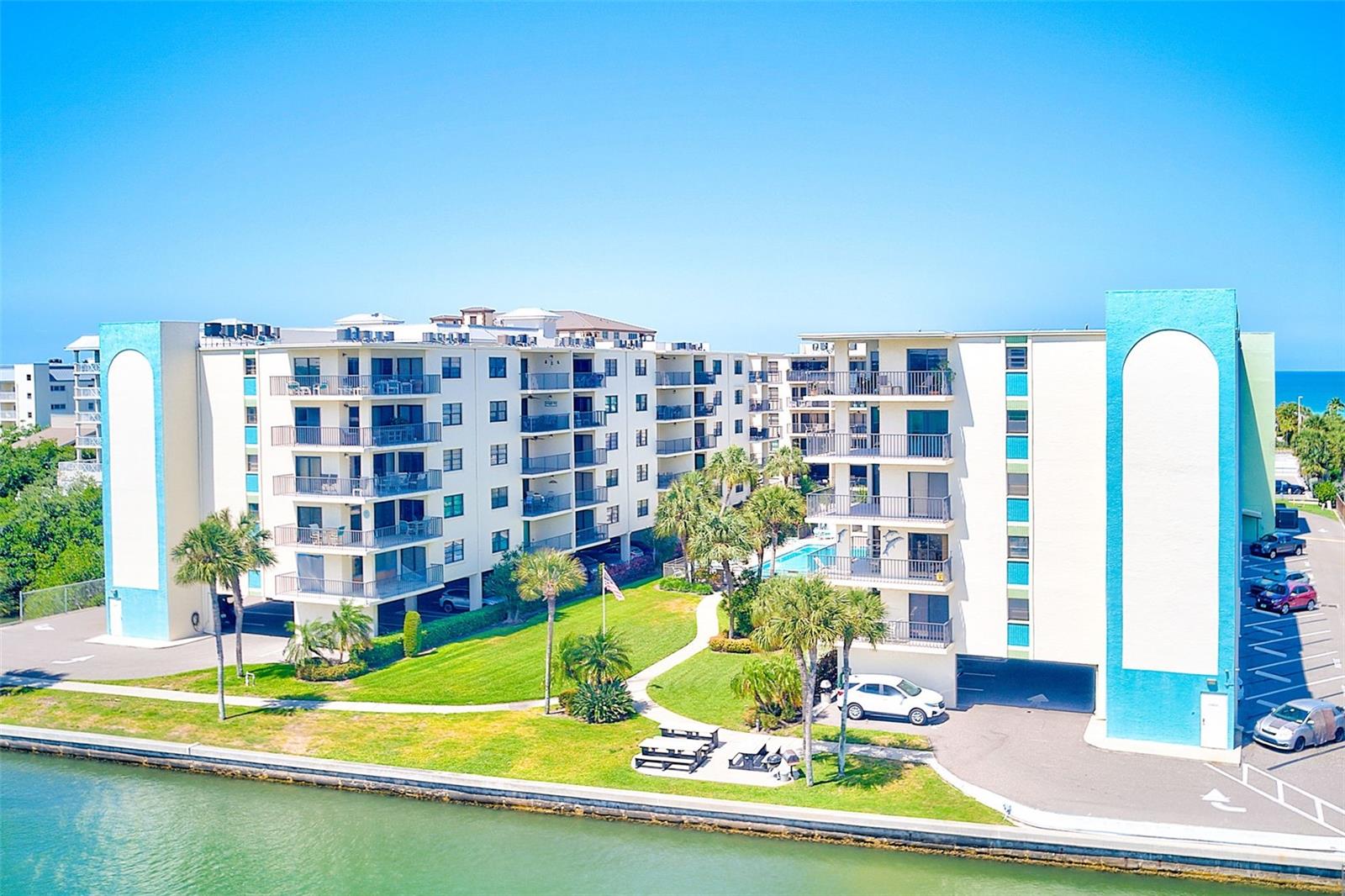 Florida Sunshine Living at its best. Amazing views. Corner condo, with a wraparound balcony fully facing the intercostal and across street from the beach with added privacy in every room. A unique opportunity to own this gem on the beach. Highly desirable location rarely goes for sale. Large, bright and super clean 2 bedrooms/ 2baths corner condo in Indian Shores. New AC ( June 2024), hot water heater (2023). Unbelievable water views as it has full water frontage on the inter-coastal waterways. Enjoy the water view from every window in the condo. Large and wide wrap around balcony with a south/east exposure and an unmatched breeze. Unobstructed views to the north and south with a county park to the north. Washer and dryer closet in the unit. Large kitchen with a window looking at the water. What is even more appealing about this unit, is that is has 2 assigned parking spots ( very rare on the beach). One spot is first one next to the elevator door under the building, and the other is facing the building close stairs. Plenty of guest parking as well. Golden Shores is a well managed and maintained Condo association. no upcoming assessments, reserves fully funded, milestone structural inspection was done. Located in the Narrows area of the barrier island, it is right across street from Indian Shores Beach. Each unit has a storage closet on the 4th floor. Building is secure with an intercom and secure entrances. The large Pool and the courtyard are very well designed, landscaped and maintained. Plenty of first come, first use boat slips. Live the Beach dream life. Enjoy the sunshine, walks or relaxing on the beach, short walk to great restaurants, Indian shores farmers market. Watch the boat parades from the comfort of your balcony. Enjoy morning coffee on the balcony with amazing views and plenty of wildlife. Watch the dolphins play, Pelicans, and manatees frolic in the water. This unit has been the maintained and loved as the primary residence for over 30 years. The lucky buyer with enjoy as a full time beach home, a vacation oasis or an investment rental with 1 month minimum, very popular with our snow birds. Perfect opportunity to own a piece of paradise.