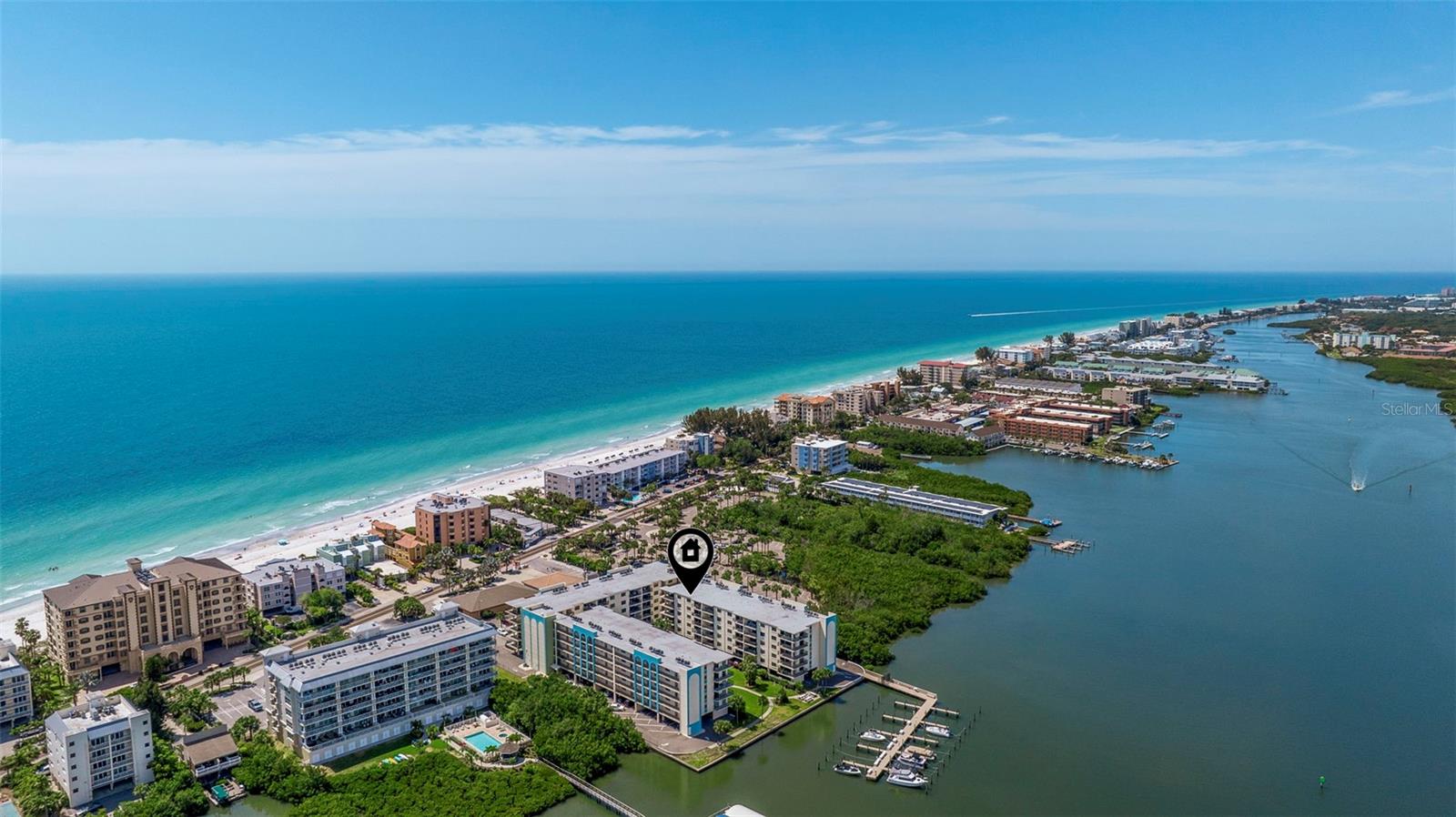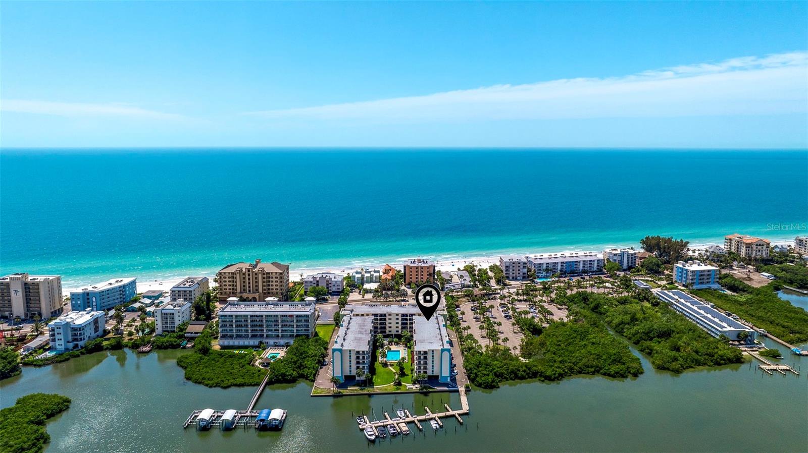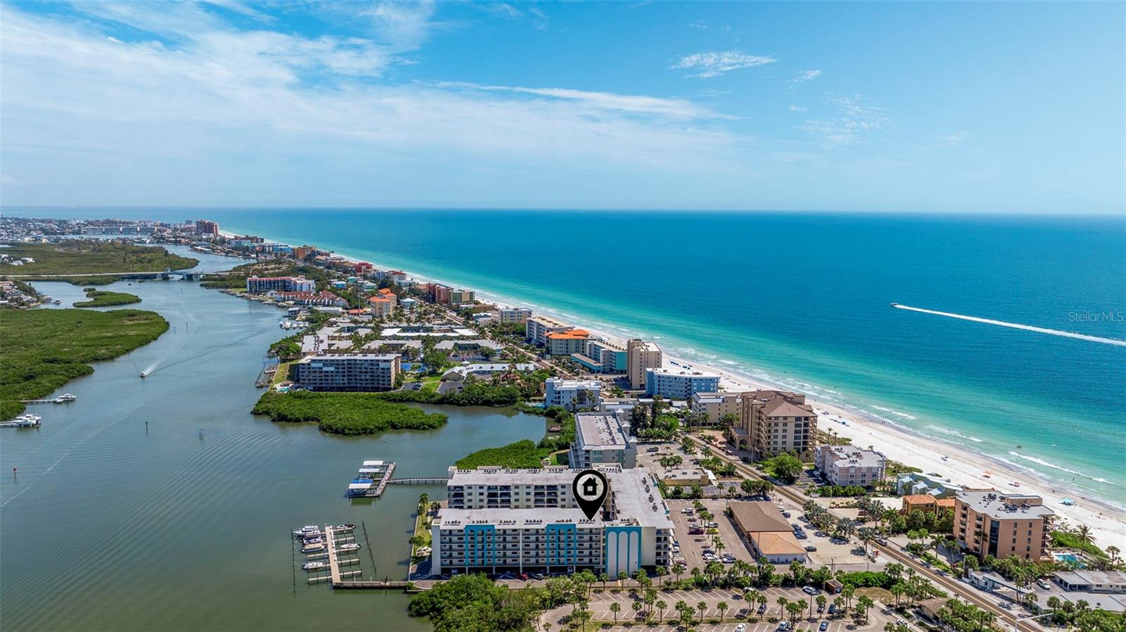 Welcome to this stunning, immaculate, MOVE-IN READY WATERFRONT oasis in Indian Shores! This amazing FURNISHED end unit with oversized balcony offers a harmonious blend of mid-century modern design and feng shui-inspired decor that creates a serene and inviting living space. The spacious interior is tastefully adorned with stylish decor and thoughtful design elements, creating a soothing ambiance. Not to mention the bonus of...furniture is included if you would like! Enjoy views of the water from the comfort of your own home, and embrace the calming atmosphere that pervades this unique space. Situated perfectly to enjoy the best of both worlds, this unit provides direct access to the beautiful beach on one side and the peaceful intracoastal waterway on the other. Whether you prefer sunbathing on the sandy shores or exploring the tranquil waters by boat, your dream coastal lifestyle awaits. Golden Shores, the community in which this unit is nestled, is a unique find with a FULLY FUNDED reserve and ON-SITE property management which offers a peace of mind for any potential owner. The community also boasts 20 renovated boat slips with composite decking. These slips are available on a first-come, first-served basis with no time limits and must be registered with the dockmaster for assignment. Best of all, the use of the slips are included in the HOA Fee as they are the property of the HOA! You'll find a large pool for relaxation and recreation, as well as covered, assigned parking for your convenience. Whether you're looking for a personal retreat or an investment opportunity, this unit has a 1-month minimum rental period, providing flexibility and potential for rental income. Don't miss your chance to own this extraordinary waterfront retreat in one of Indian Shores' most sought-after communities. Available for immediate showings.