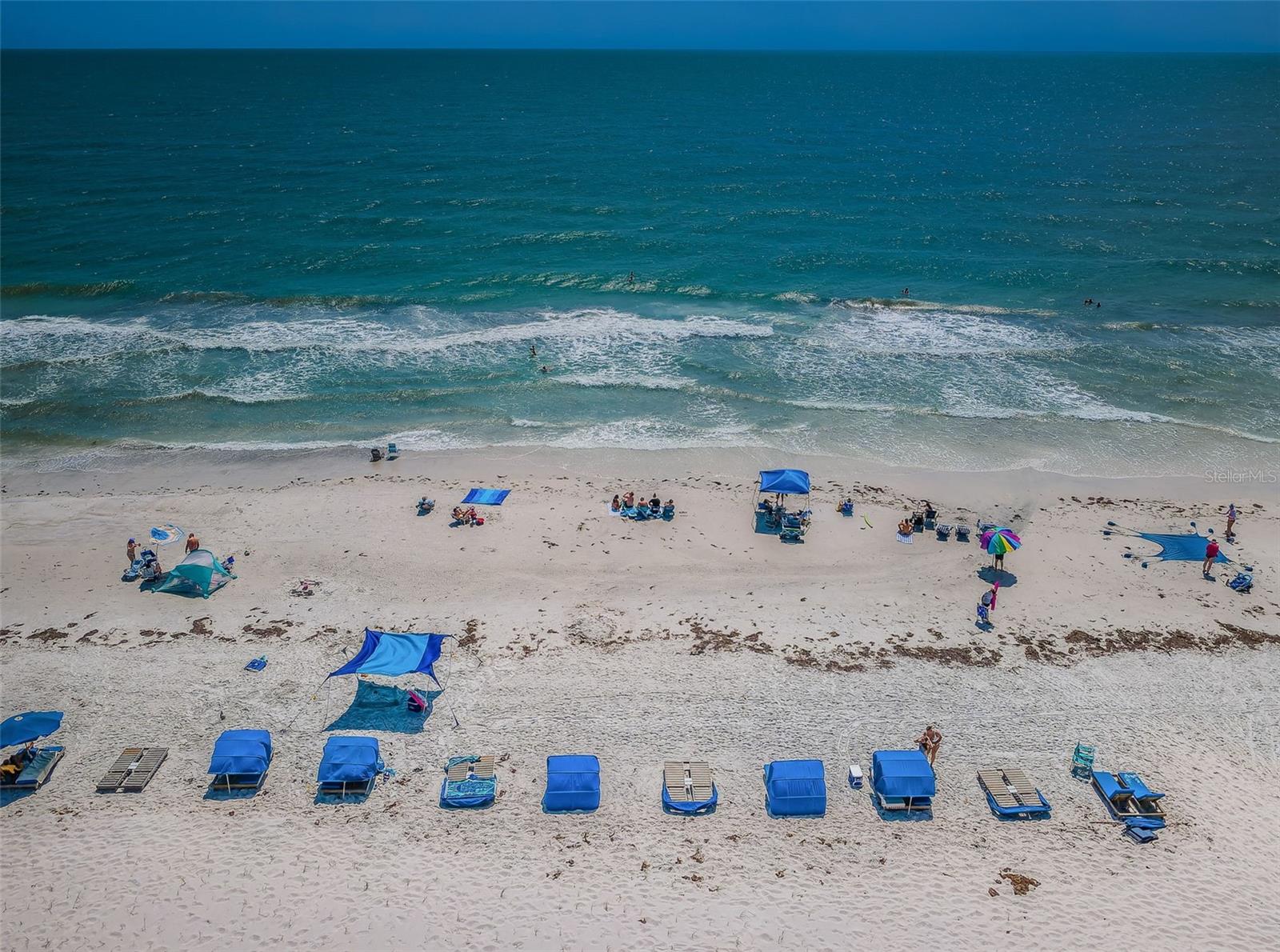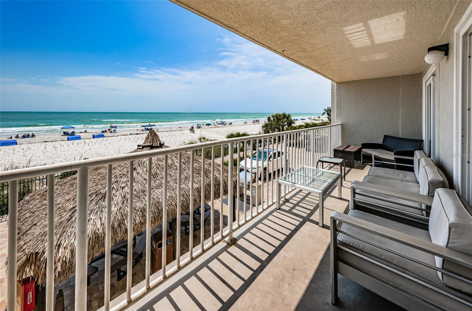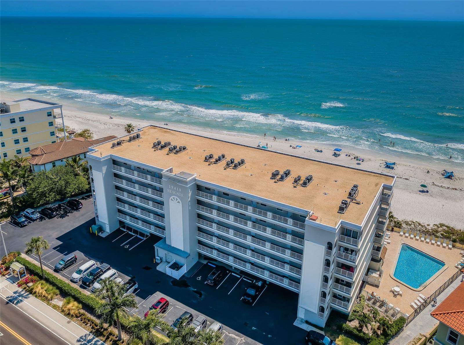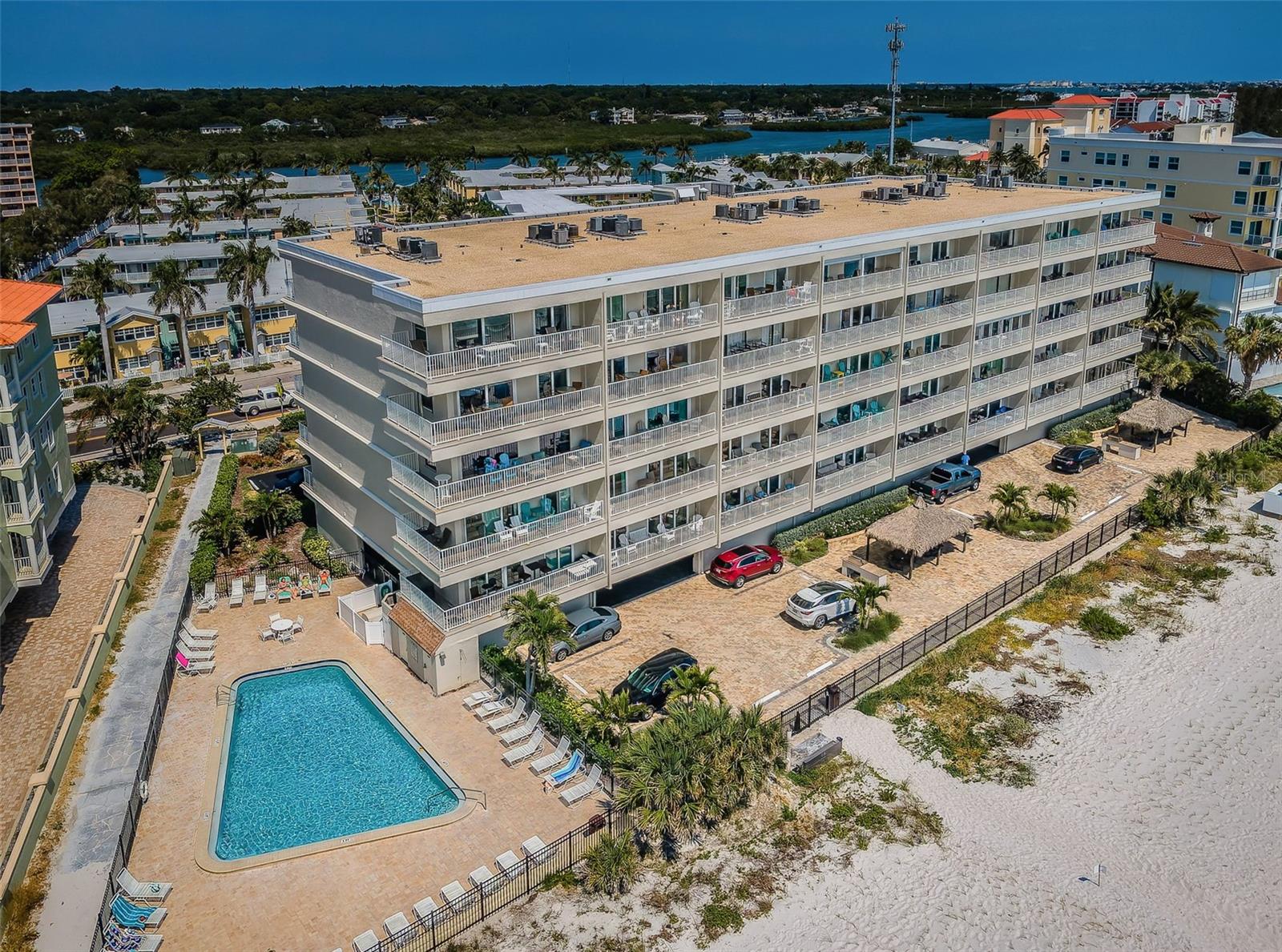 Condo has completed and passed Milestone Inspection. INCOME PRODUCING $140K+/yr DIRECT GULF FRONT BEACH CONDO. Welcome to your dream beach home in beautiful Indian Shores! As you step through the front door, you're immediately greeted by breathtaking, unobstructed views of the Gulf. This spacious 3-bed, 2-bath condo offers ample room for relaxation and entertaining. The primary bedroom features a king bed, large walk-thru closet perfect for beach toys and storage, and an ensuite bathroom with double vanity and glass-enclosed walk-in shower. 2nd bedroom has two queen beds and access to the guest bath which features a double vanity and a tub/shower combo. Guest bath also has hallway entry access. 3rd bedroom offers a queen bed and the living room has additional sleeping space with a pull-out couch, making it easy to accommodate guests. Updated kitchen boasts newer stainless steel Samsung appliances and dry bar with additional cabinets and wine fridge, perfect for preparing meals and hosting gatherings. In-unit laundry room is equipped with a washer and dryer for your convenience. Impact hurricane rated sliding doors lead to an expansive balcony, providing plenty of seating for morning coffee or evening cocktails while enjoying direct Gulf and sunset views. The condo is tastefully furnished and turn-key, ready for you to move in. Its coastal vibe is enhanced by the neutral tile flooring that flows seamlessly throughout the home. One of the standout features of this condo is its incredible rental potential. With a 3-night minimum rental policy and proven ability to gross over $140K+ annually as vacation rentals, this property is an ideal investment opportunity. Assumable rentals after closing make it even more attractive for savvy investors looking to maximize their returns. Additional features include two assigned parking spaces (one covered), a community pool, community grills, and tiki huts with seating, offering endless opportunities for outdoor enjoyment. With a separate owner's closet for your personal belongings, you can seamlessly switch between personal use and vacation rental. Experience the best of beachfront living in this stunning condo - own a piece of paradise and generate substantial rental income!