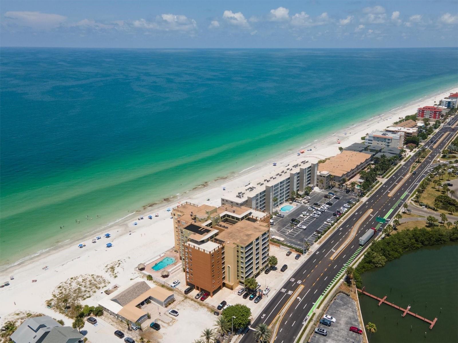 The sea is calling and this beach condo is the answer! Affordable condo located in the Holiday Villas III building, directly on the sand of Indian Shores. It’s easy to relax by the heated pool, swim in the Gulf of Mexico or play beach volleyball just steps out your door. Plus, across the street is the Intracoastal and the community’s day use boat slips and fishing pier. The beach lifestyle can be yours full time since owners can live here without usage restrictions. This is a great vacation rental condo with a low 7 day minimum rental period. The condo is coming furnished, so it’s ready for your next staycation or vacation rental guest. It has a proven rental history over the past 9 years the sellers have owned it. There is an onsite rental office, assigned parking, elevator and laundry facility on every floor. This true 1 bedroom/1 bath condo features a full kitchen, private bathroom in the bedroom and several updates. Updates include: new Windows 2020, remodeled Shower 2018, Hot water tank 2016, air conditioner 2017. All ages welcome and owners are allowed to have one small pet. Indian Shores is a great central beach location. Located on Gulf Blvd, so it's an easy commute to Clearwater Beach, Sand Key Park, Indian Rocks Beach, John’s Pass, Madeira Beach, Treasure Island and Redington Beach. These areas are filled with fine dining, fun beach eats, shopping, bike rentals, boat tours, fishing and marinas.