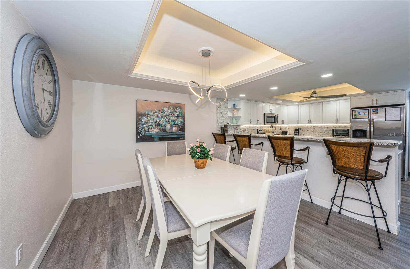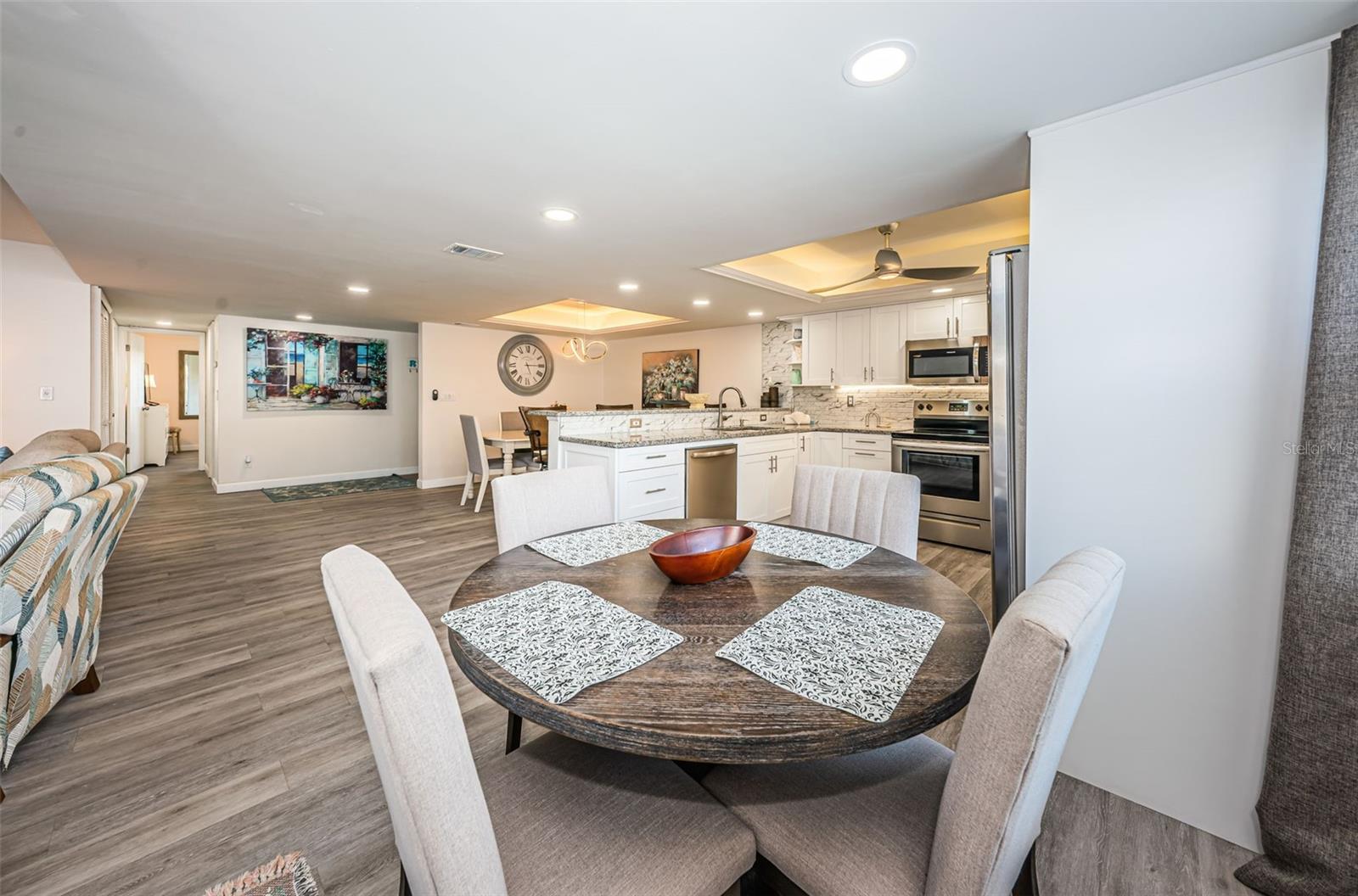 SECOND HOME PLUS INCOME MAKING. MILESTONE INSPECTION DONE. NO CURRENT SPECIAL ASSESSMENTS. Beautifully Updated Condo in Sea Club, Indian Shores Discover your dream coastal retreat in the highly sought-after Sea Club community, located along the pristine Intracoastal Waterway and just steps from the sugar sand beaches of Indian Shores. This beautifully updated condo features 2 bedrooms and 2 bathrooms, offering the perfect blend of modern comfort and coastal charm. PLEASE CALL OR TEXT REALTOR FOR APPOINTMENT. Interior Features: Immerse yourself in the serene ambiance created by contemporary coastal colors throughout the unit. The modern chandeliers adorn dining, and living rooms, adding a touch of sophistication and elegance. Enjoy the durability and style of waterproof laminated wood floors, perfect for beachside living. Community Amenities: Relax and unwind in the heated pool, perfect for a refreshing dip any time of the year. Take advantage of the dock for boating enthusiasts, offering easy access to the Intracoastal Waterway. Host a barbecue with friends and family at the community BBQ grills and picnic area. Keep your car in pristine condition at the convenient car wash station. Enjoy the dedicated dog walk area, ideal for pet owners. Rental Opportunity: With a flexible 7-day rental period, this condo offers excellent income potential, making it a smart investment. Neighborhood: Sea Club is a well-managed, self-governed community with a proactive association, ensuring a seamless living experience. Welcome home to your slice of paradise in Sea Club, Indian Shores, where everyday living feels like a vacation!