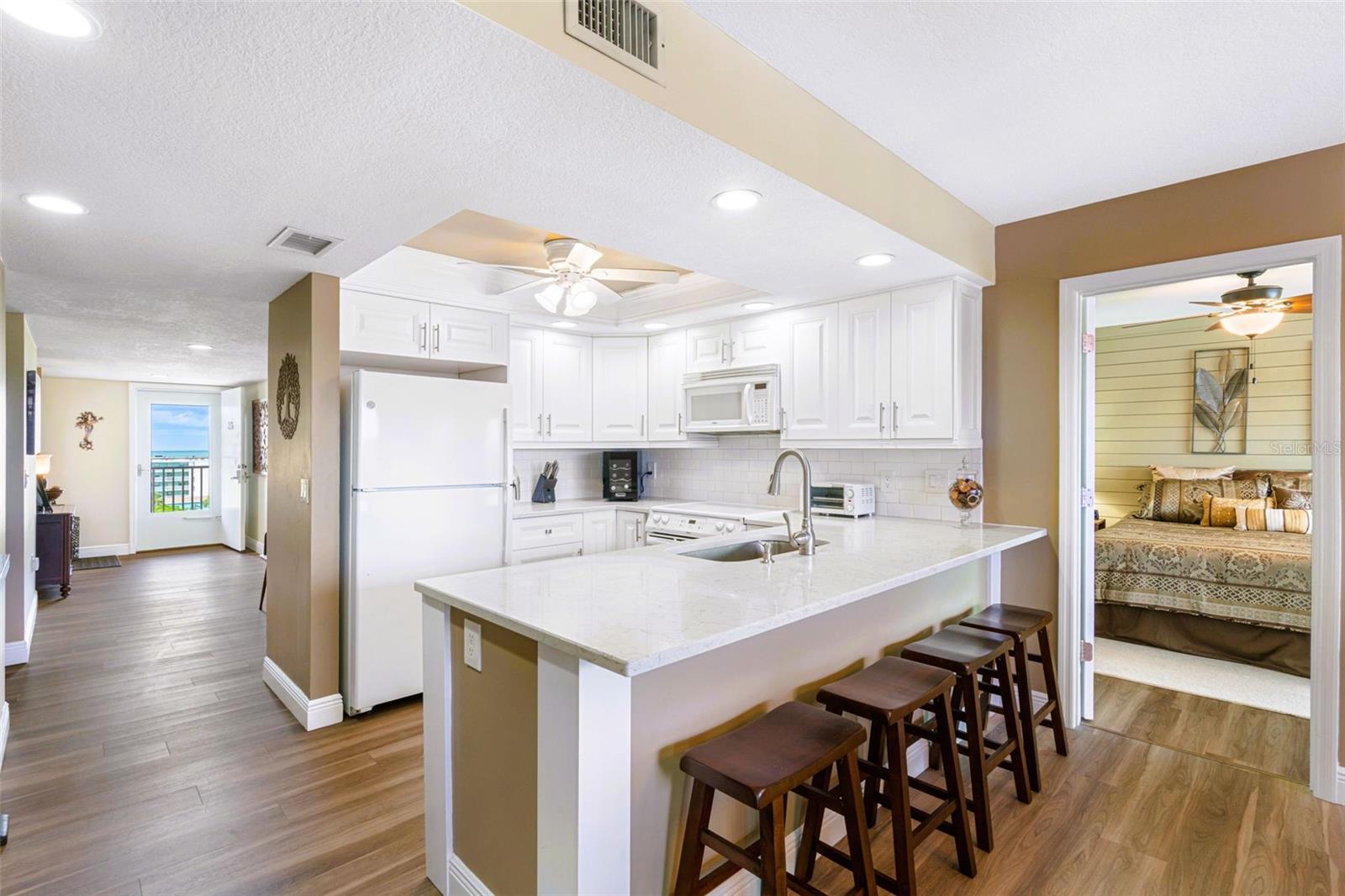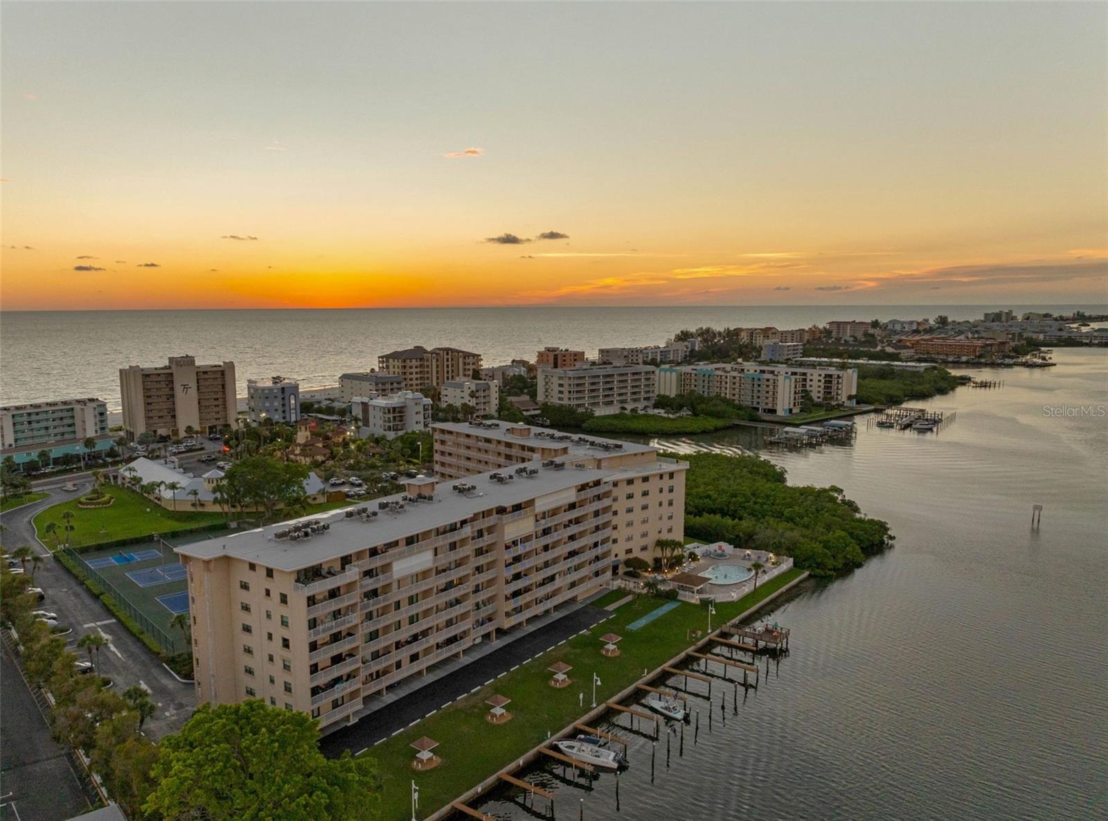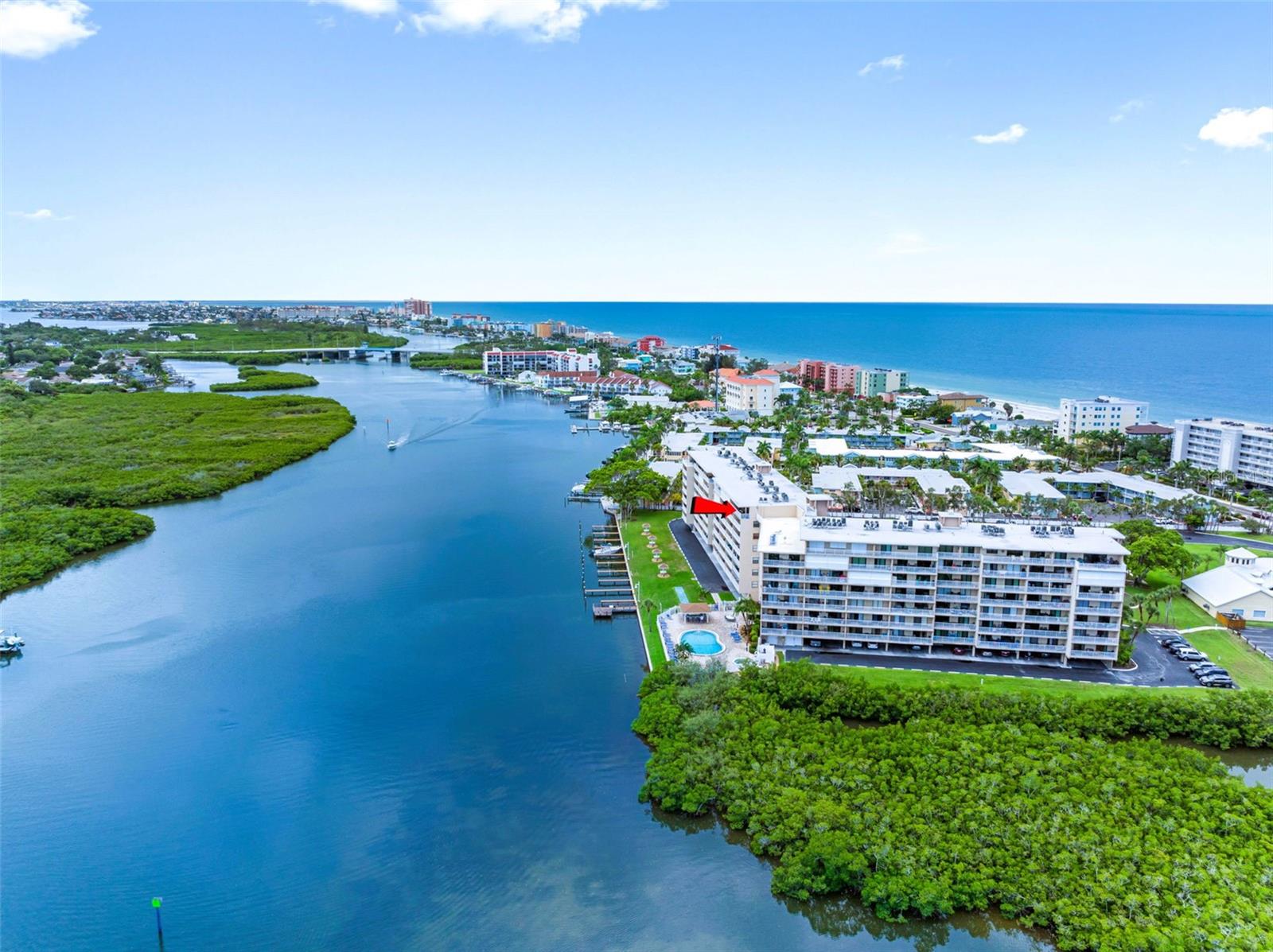 Experience luxury living in this beautifully renovated penthouse at Bay Shores Yacht & Tennis Club with breathtaking intracoastal and Gulf of Mexico views, showcasing spectacular sunrises and sunsets. The open layout, spanning just under 1,600 square feet, seamlessly connects the kitchen, dining, and living rooms ideal for easy maintenance and entertainment. High-end upgrades complement the well-conceived floor plan and tasteful neutral décor, enhancing the unit's elegance and appeal. The primary suite offers a retreat with a wooden accent wall, balcony access, and a custom walk-in closet. A modern barn door separates the renovated laundry room from the en-suite, which features a sleek remodeled bath. Two additional bedrooms provide Gulf of Mexico views and share a fully updated bath, ensuring privacy and comfort for all. Hurricane-impact sliding glass doors lead to a spacious and inviting Travertine-tiled balcony, perfect for morning coffee, entertaining guests, or late-night conversations. Recent renovations (2020-2021) include a new water heater, A/C, front door with a combination lock, hurricane-rated impact glass doors and windows, new kitchen cabinets with quartz countertops, and updated flooring, paint, baths, and balcony. Resort-like amenities include reserved under-building and ample visitor parking, a waterfront newly remodeled heated pool and spa, gas grill area, newly redone lighted tennis and pickleball courts, shuffleboard, 20 boat slips, fishing dock, saunas, fitness center, and so much more. Located in the heart of Indian Shores, this impressive penthouse is just across from one of the country's most beautiful beaches, within walking distance of charming shops, restaurants, mini-golf, and a seabird sanctuary. This fully furnished penthouse offers great income potential from weekly, monthly, or yearly rentals. Enjoy laid-back coastal charm living at its finest in one of Florida’s most vibrant beachfront communities!