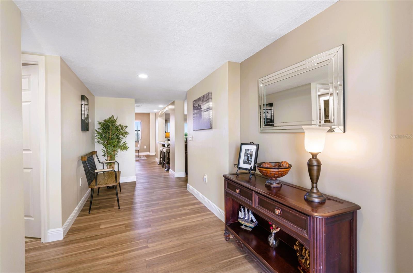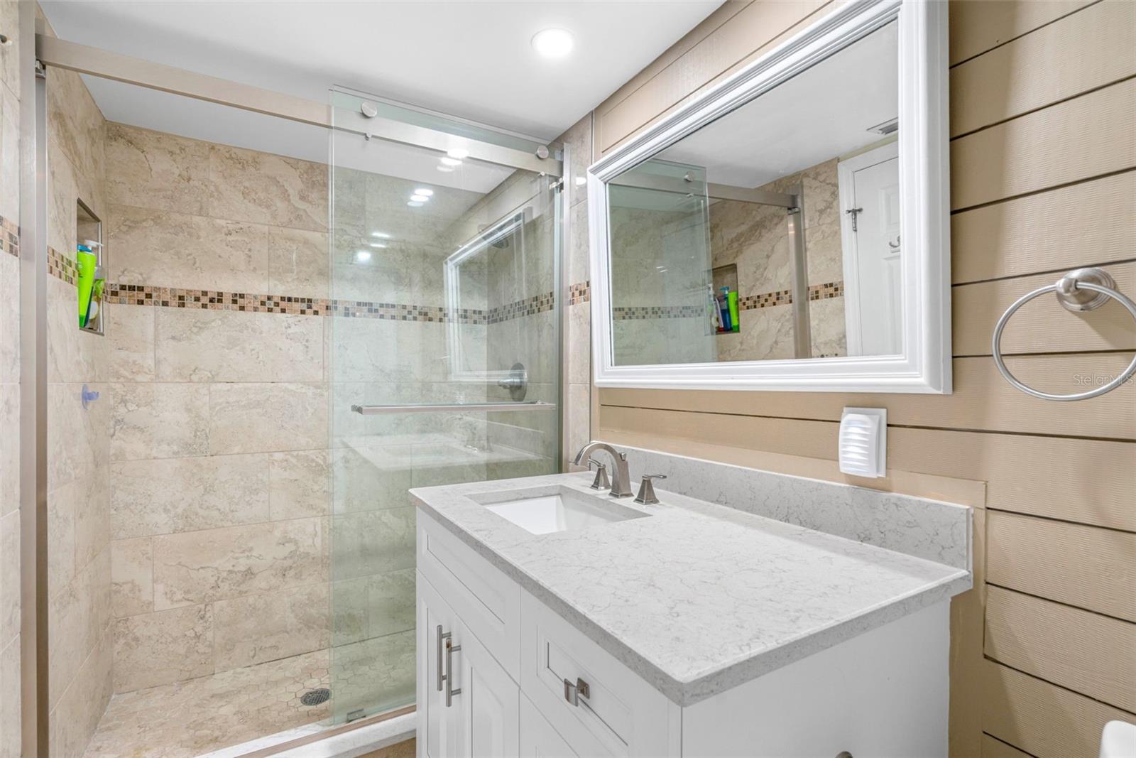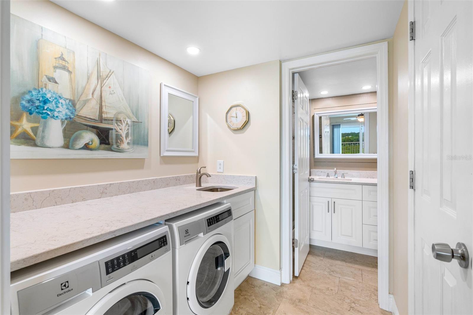 Experience luxury living in this beautifully renovated penthouse at Bay Shores Yacht & Tennis Club with breathtaking intracoastal and Gulf of Mexico views, showcasing spectacular sunrises and sunsets. The open layout, spanning just under 1,600 square feet, seamlessly connects the kitchen, dining, and living rooms ideal for easy maintenance and entertainment. High-end upgrades complement the well-conceived floor plan and tasteful neutral décor, enhancing the unit's elegance and appeal. The primary suite offers a retreat with a wooden accent wall, balcony access, and a custom walk-in closet. A modern barn door separates the renovated laundry room from the en-suite, which features a sleek remodeled bath. Two additional bedrooms provide Gulf of Mexico views and share a fully updated bath, ensuring privacy and comfort for all. Hurricane-impact sliding glass doors lead to a spacious and inviting Travertine-tiled balcony, perfect for morning coffee, entertaining guests, or late-night conversations. Recent renovations (2020-2021) include a new water heater, A/C, front door with a combination lock, hurricane-rated impact glass doors and windows, new kitchen cabinets with quartz countertops, and updated flooring, paint, baths, and balcony. Resort-like amenities include reserved under-building and ample visitor parking, a waterfront newly remodeled heated pool and spa, gas grill area, newly redone lighted tennis and pickleball courts, shuffleboard, 20 boat slips, fishing dock, saunas, fitness center, and so much more. Located in the heart of Indian Shores, this impressive penthouse is just across from one of the country's most beautiful beaches, within walking distance of charming shops, restaurants, mini-golf, and a seabird sanctuary. This fully furnished penthouse offers great income potential from weekly, monthly, or yearly rentals. Enjoy laid-back coastal charm living at its finest in one of Florida’s most vibrant beachfront communities!
