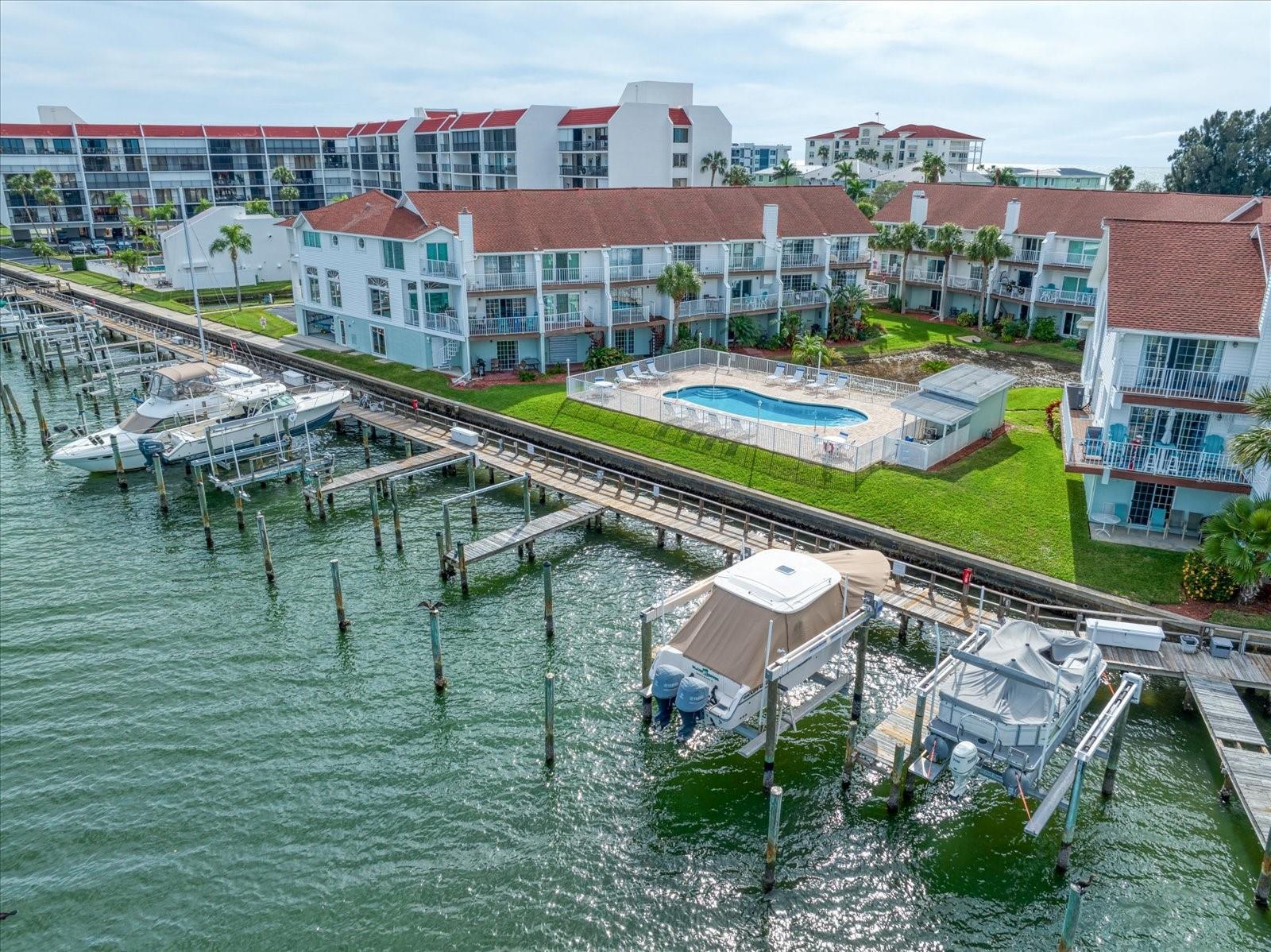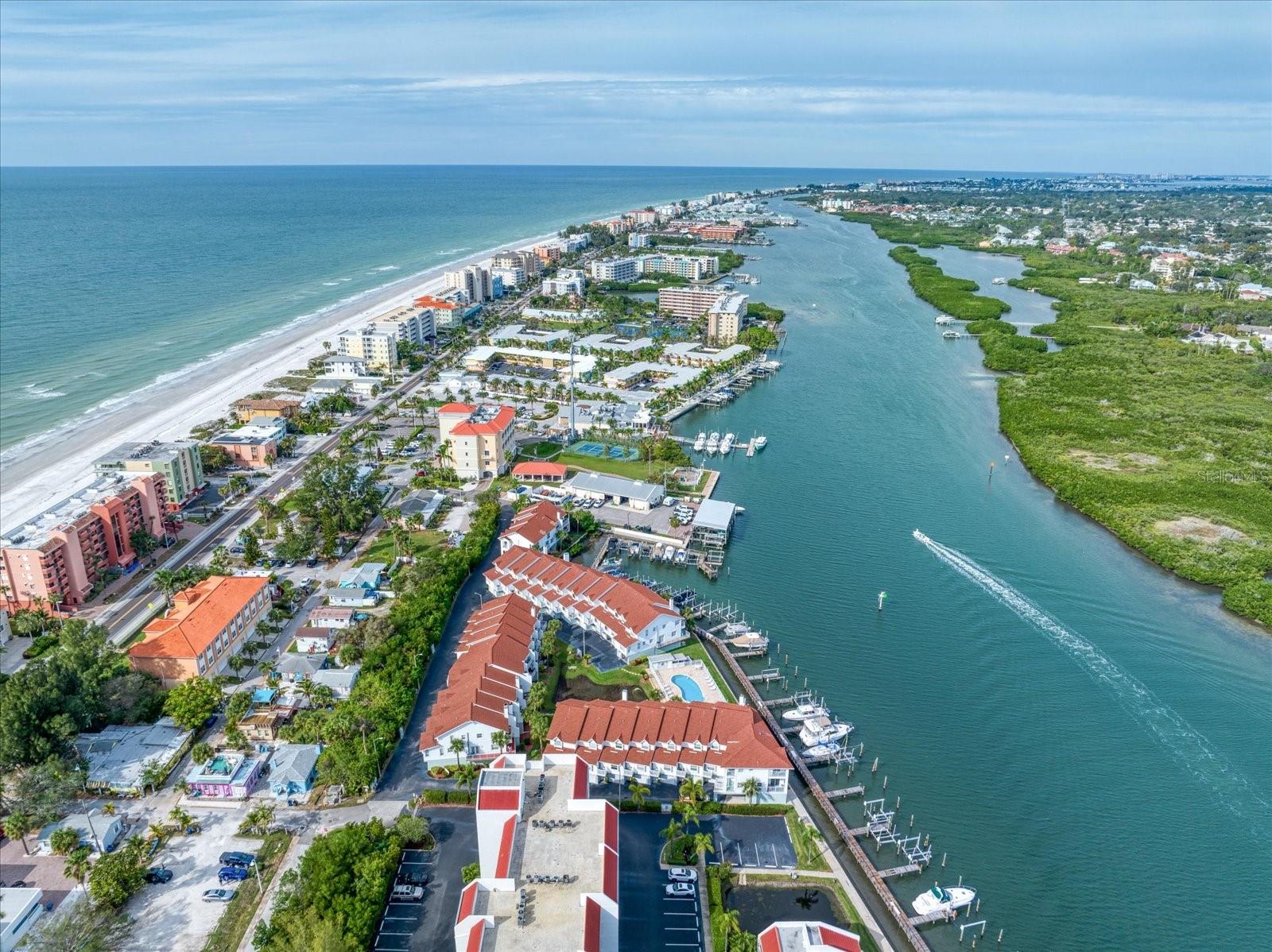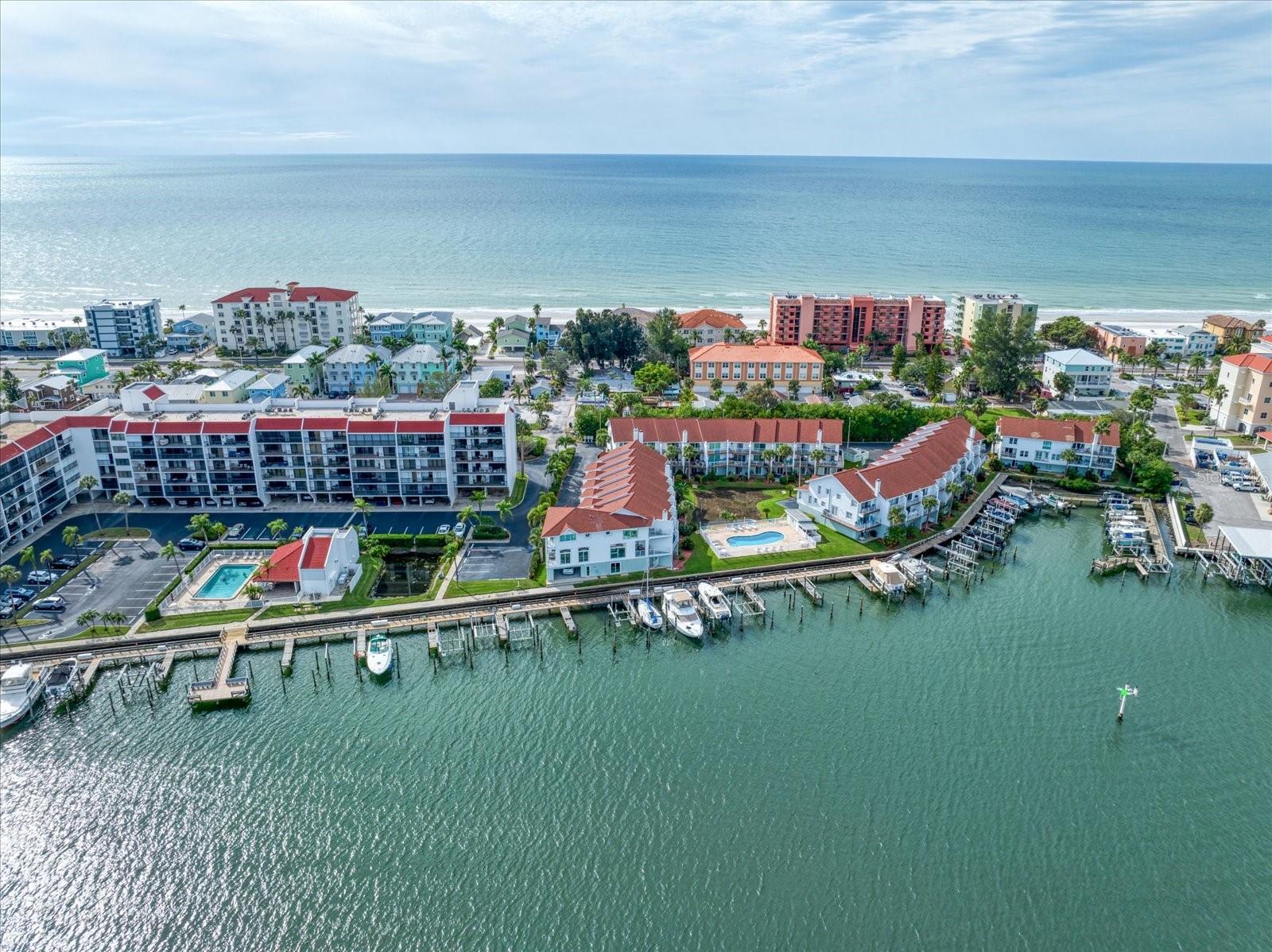 Experience the ultimate Florida lifestyle in this stunning waterfront townhome located just blocks from the pristine Indian Shores Beach. Fully furnished and tastefully appointed, this home offers effortless coastal living. Enjoy breathtaking water views from private decks off both the living room and primary bedrooms, or take advantage of your own boat dock, right on the intracoastal waterway. With spacious living areas, modern amenities and a prime location near local shops and restaurants, this townhome is a rare gem. An oversized tandem garage holds two cars, with extra room for workshop, paddleboards or storage. Low monthly maintenance fees, and a pool situated on the waterfront add to the carefree lifestyle. Easy access to St Pete, Clearwater Beach and Tampa.