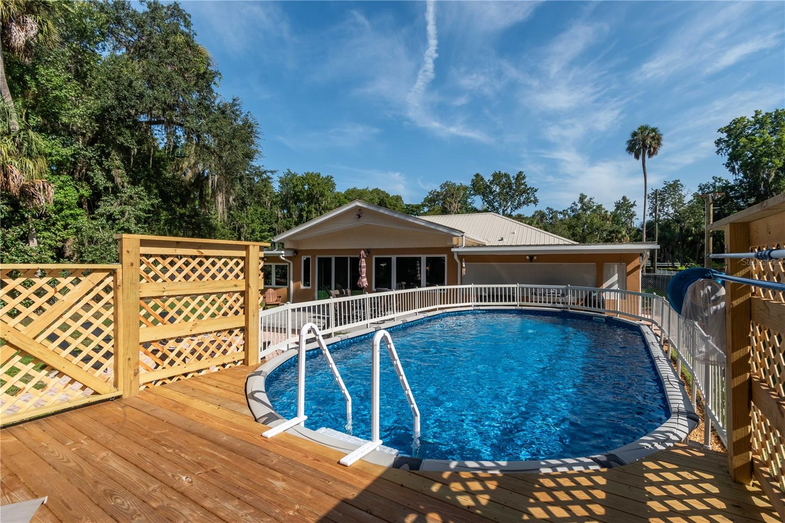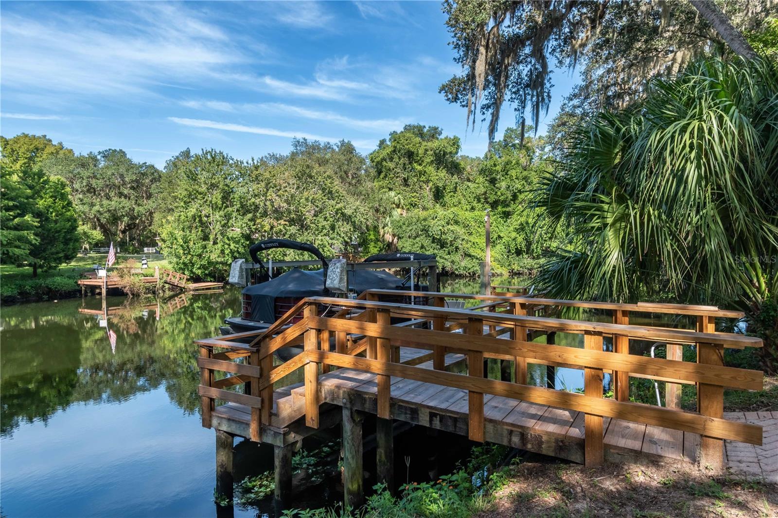 HUGE PRICE REDUCTION - SELLER MOTIVATED! This home has NEVER FLOODED! This custom - built quality home is located on the clear waters of the Withlacoochee River, offering direct access to the Gulf of America. It is a picturesque 3-bedroom, 2-bathroom home and sits on approximately one acre of high and dry land, providing a serene riverfront retreat. This home has an elevation that has prevented any flood waters from any hurricane or storm. While other homes in this waterfront subdivision may have had some water intrusion, this home has not. A flood disclosure and pictures are available. Key Features: Waterfront Living: Enjoy the crystal-clear, spring-fed Withlacoochee River from your large walk-around dock, complete with a 10,000-pound boat lift, water, and electricity. Outdoor Entertainment: Relax and entertain on the expansive pavered patio, boasting a firepit area, above-ground pool, and screened enclosure room. Elegant Living Spaces: The formal dining room features a double-sided fireplace, shared with the cozy living room. The spacious family room overlooks the backyard, providing a seamless flow to outdoor entertaining. Private Master Suite: The master bedroom includes an ensuite bathroom and a flexible space for a workout area, nursery, or office. Versatile Layout: The split-bedroom floor plan ensures privacy, with two additional bedrooms sharing a bathroom. Ample Storage & Parking: The property features a 2-car attached garage, a large metal carport for your boat, RV, and toys, and two metal sheds for fishing gear and yard equipment. Dog-Friendly Yard: The expansive yard is nearly fully fenced, with a dedicated dog run to keep your pets happy and safe. This riverside paradise is a rare find for nature lovers and boating enthusiasts alike. Don’t miss the opportunity to own this slice of waterfront heaven – the owner is relocating, so schedule your private tour today!