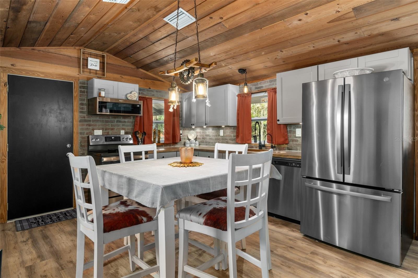 One or more photo(s) has been virtually staged. Experience the ultimate blend of tranquility and adventure at this unique oasis! Located on the serene Tenmile Creek with direct Gulf access, enjoy a 5-minute boat ride to Cow Creek, which leads to the breathtaking Waccasassa Bay. This property spans three parcels totaling 0.74 acres, providing ample space for your outdoor lifestyle. This LUXURIOUS "hunting & fishing camp" boasts multiple outbuildings, offering versatility for storage/workshops or various outdoor pursuits... fish, hunt, swim, ride the trails on your ATV/UTV's the adventures are non-stop! Recent upgrades (2022/2023) include a NEW metal roof, HVAC system, well pump/tank+ well house enclosure, LVP flooring thru-out & dual pane windows. The practical features continue with a boat dock+ fishing shed for the fishing enthusiasts! Like to boat/kayak, push off at "launch" at dock. Step inside to discover a blend of modern comforts & stylish finishes. The Main House is 4 bedrooms/2 bathrooms with great room, eat-in-kitchen with wood burning stove. The kitchen features new cabinets, butcher block counters, stainless steel appliances including an air fryer oven! The old "laundry" shed has been converted into a special Master ensuite, 460 SF with a laundry hook-up, complemented by a mini-split for personalized climate control. Technological enhancements abound, with two hundred amp service, reverse osmosis at the kitchen/ice maker, a water softener & updated lighting thru-out. Outdoor living is elevated with a new deck connecting to the Master ensuite, providing a perfect spot to enjoy the scenic views & observe Mother Nature. Additional features include remodeled bathrooms, solid wood doors, new paint inside & out and a second carport for added convenience. The property comes with a transferable termite protection for peace of mind. This waterfront gem not only offers a home but a lifestyle. Immerse yourself in the beauty of Gulf access living combined with modern conveniences. Your retreat awaits, offering a perfect blend of tranquility & adventure.