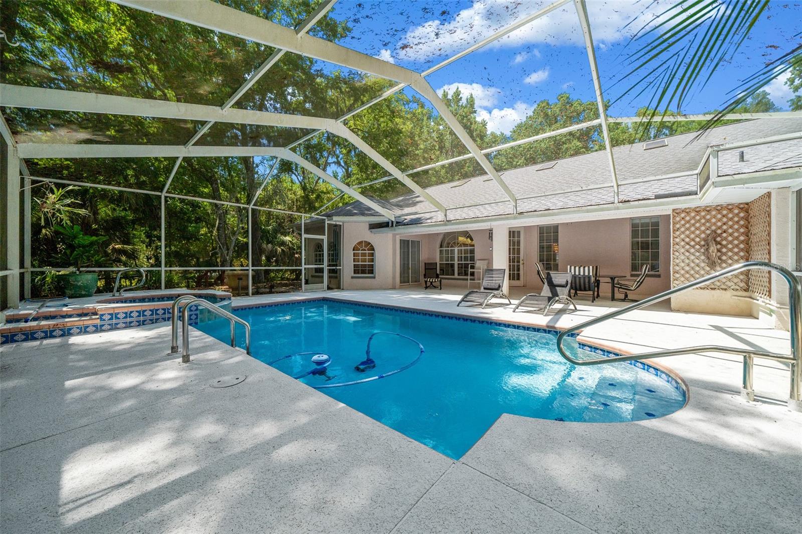 Welcome to riverside serenity that has NEVER flooded!! Nestled along the picturesque banks of the Withlacoochee River, this impeccably maintained 3-bedroom, 3-bathroom pool home offers a lifestyle of true Nature Coast tranquility. Inside you will discover a spacious interior flooded with natural light and ample living space for the whole family. The popular split style floor plan offers a master bedroom with ensuite bathroom on one side of the home, one large guest bedroom with ensuite bathroom on the opposite side of the home along with the third bedroom near the office/den space and third full bathroom! Outside, your own paradise awaits. Step onto the expansive patio area to soak in the Florida sunshine or take a refreshing dip in the enclosed sparkling pool. Easily able to reconstruct a summer kitchen to add to your entertainment space. With a full acre to yourself, there's plenty of space for outdoor activities. But the true highlight of this property is its waterfront location. Being located right on the Withlacoochee River easily gives you access to the Gulf of Mexico. Your days can be spent fishing off the floating dock, kayaking along the tranquil waters, or simply taking in the all natural views. Don't miss your chance to experience riverfront living at its best. Schedule your showing today and make this extraordinary property your new home sweet home!