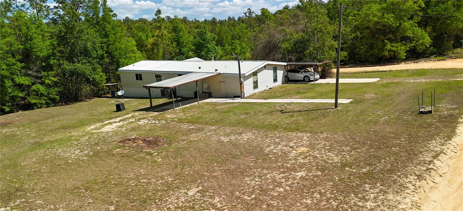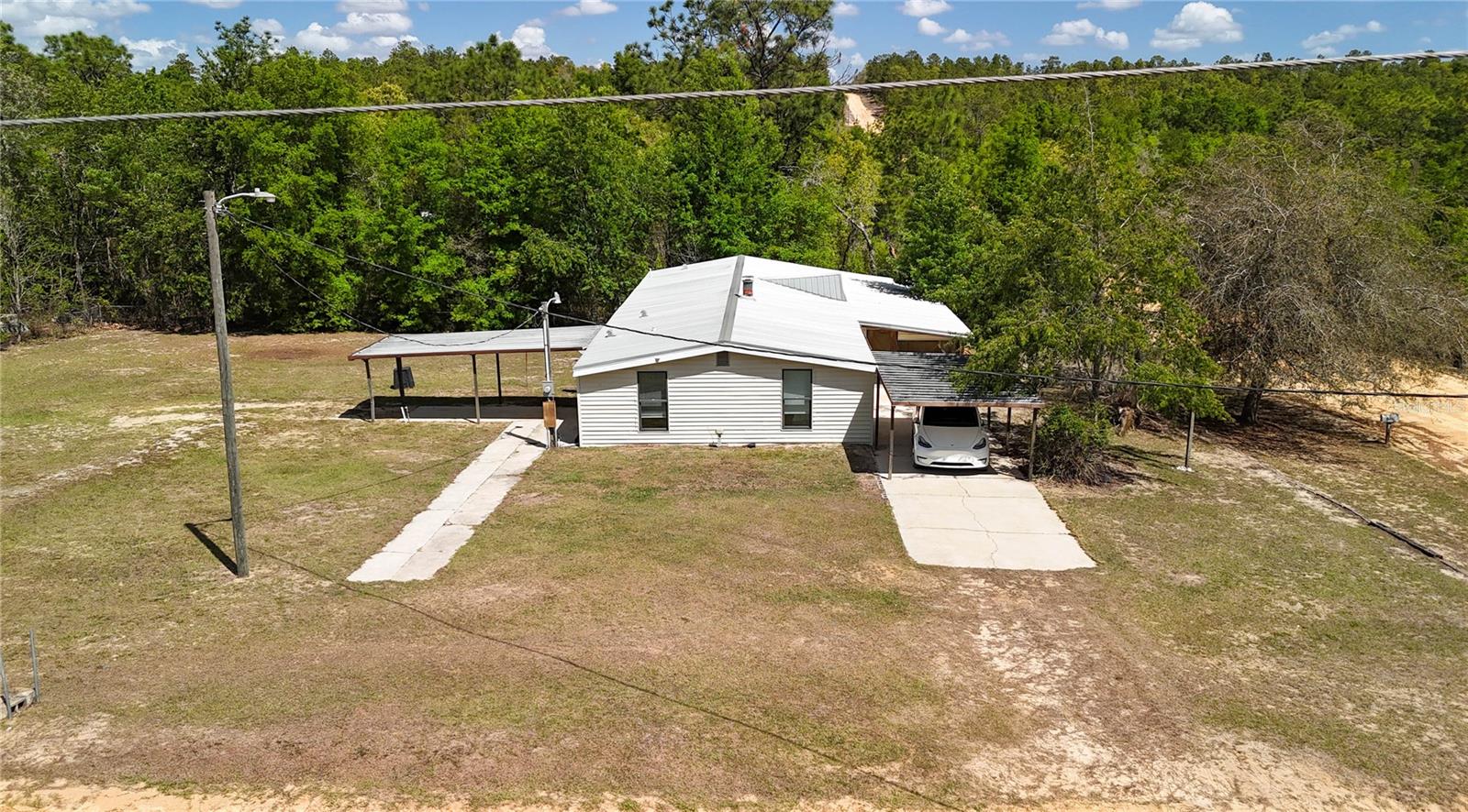 Enjoy country living in scenic Interlachen, fully remodeled 4 bedroom 2 bath home; split plan offers generous primary suite complete with bathroom and space for office, sitting room, nursery, etc.; open concept living room with fireplace connects to dining area and expansive kitchen with large island, indoor laundy area, spacious enclosed covered porch and 2 carports; Many undates including 2019 Metal roof, 2022 Water heater, new energy efficient LED lights; Large .42 acre lot ready for convenient peaceful living, investment, or recreation—this is your opportunity to own a slice of Florida. On school bus route, Per Putnam County: road is scheduled to be paved under Putnam County’s dirt to pavement initiative (see attachment)