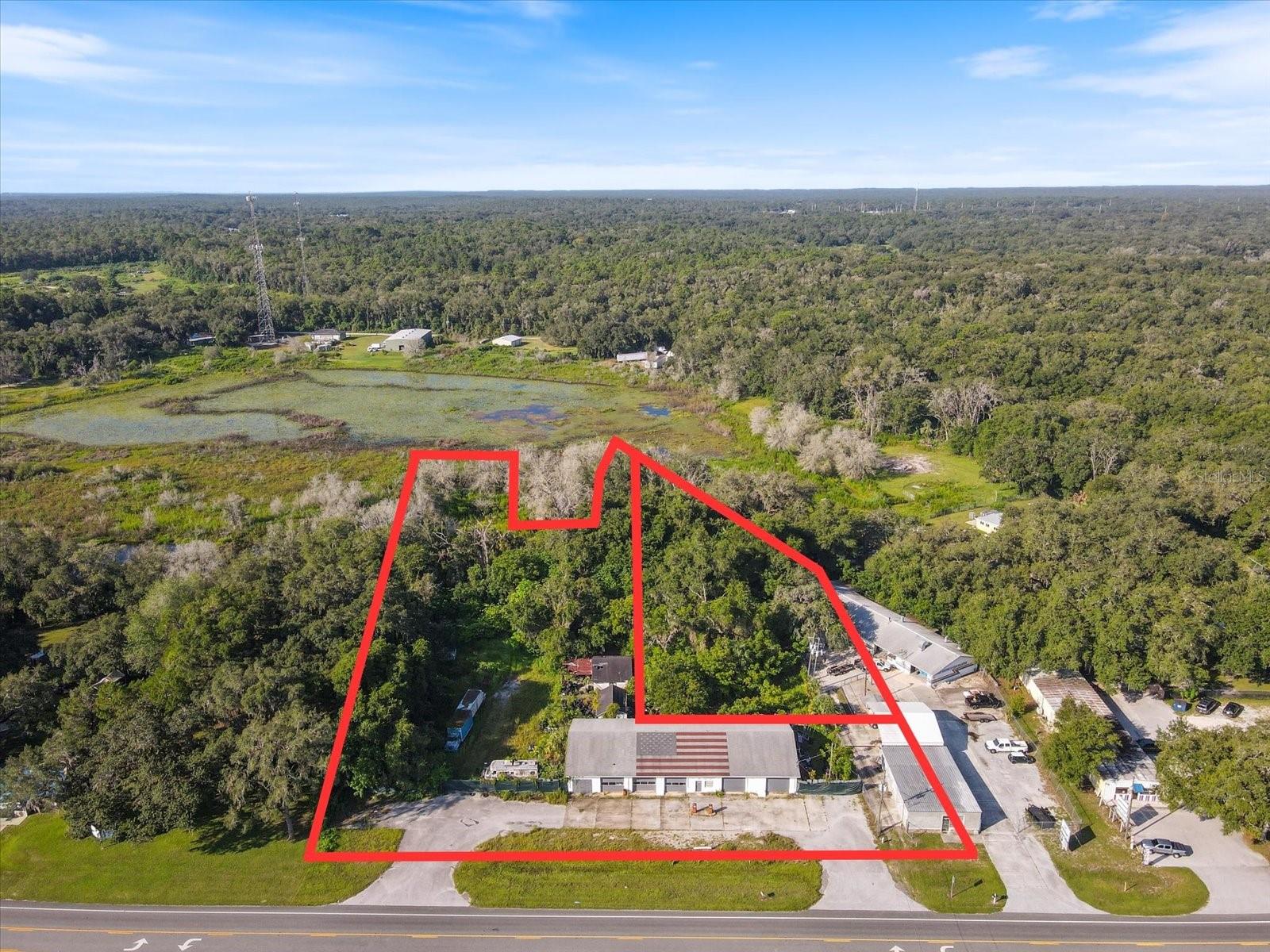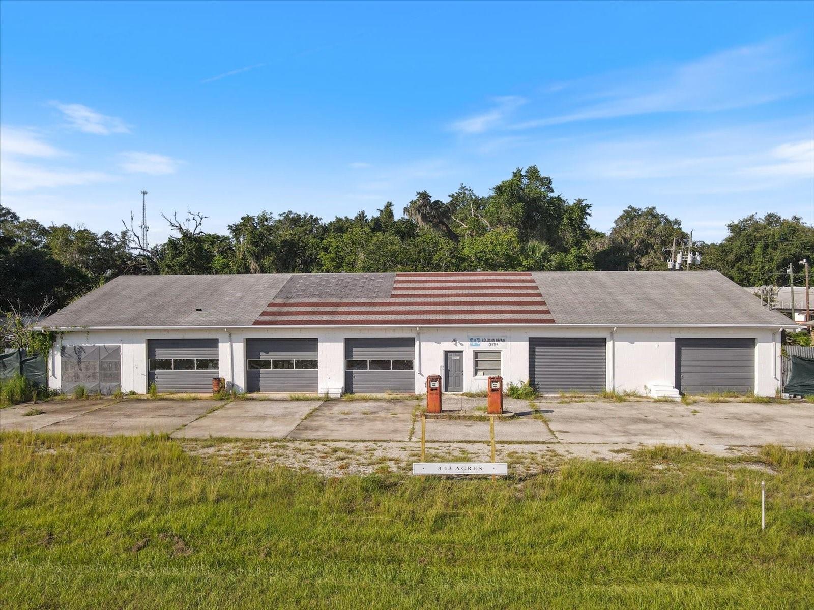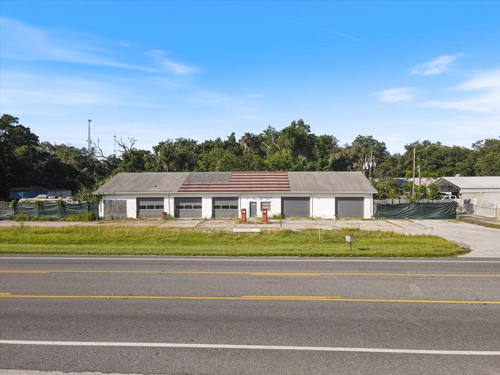 over 3 Acres of waterfront commercial property on a road with an annual average daily traffic of 14,100 (AADT) this over 5.500 sq foot building with 5 bay doors and an office space could be your shop, gas station, warehouse or any future development that would benefit from high traffic and the accessibility of a lake and comply with zoning requirements. Please confirm all zoning and usage with the county.