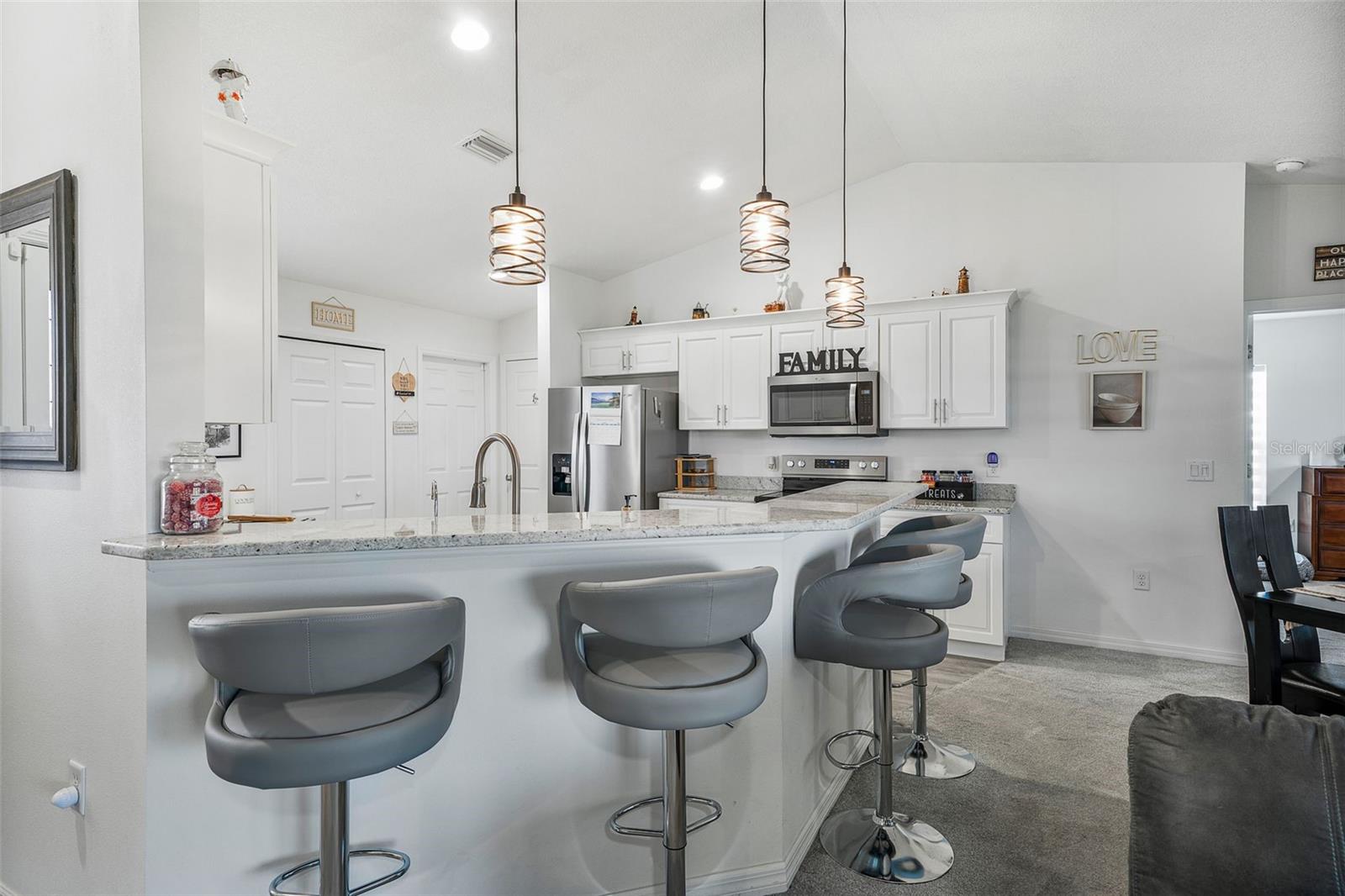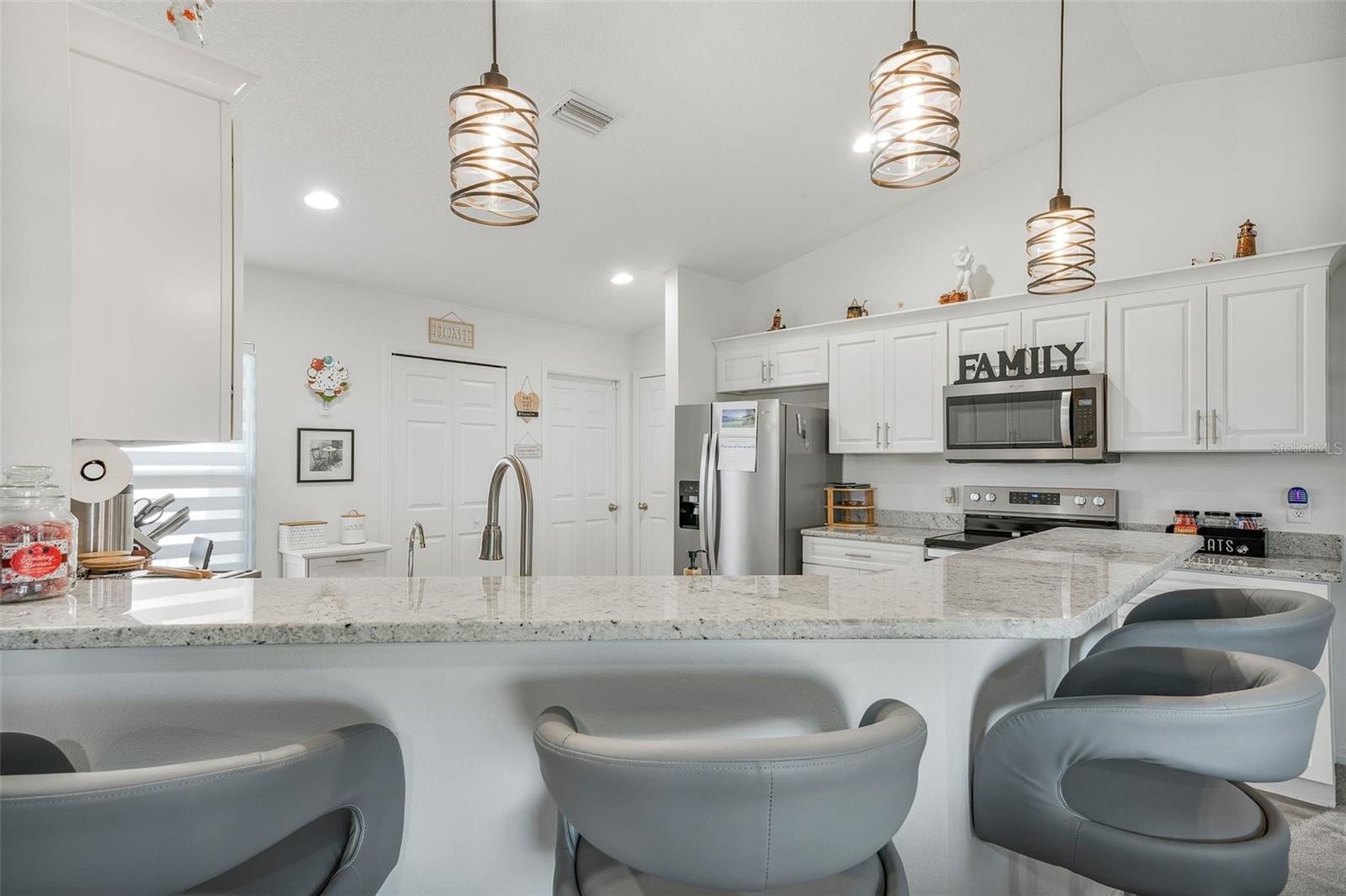 Located on a serene, unpaved street, this nearly-new home is in a high and dry area, offering a perfect balance of modern elegance and peaceful country charm. Set on a spacious one-third acre with no HOA or deed restrictions, this property provides ample room to park an RV or boat and endless opportunities to create your ideal outdoor retreat, whether it's a pool, a garden, or an outdoor living area. Inside, you'll be welcomed by a bright and airy open floor plan, featuring tray ceilings, and abundant natural light. The design flows effortlessly between the living, dining, and kitchen areas, making it ideal for everyday living and entertaining. The kitchen is a standout, equipped with 36" wood cabinets, granite countertops, a large stainless steel sink, and a breakfast bar. Modern stainless steel appliances—including an electric range with a built-in air fryer oven, microwave, dishwasher and refrigerator—combine style and functionality, while a spacious pantry adds convenience. The primary suite offers a private retreat with its expansive walk-in closet and ensuite bathroom. Additionally, three other bedrooms provide flexibility for family, guests, or home office needs. Upgrades include a Kohler 14kW whole-house generator for uninterrupted power, an Aquasure whole-house water filtration system, an electric fireplace, ceiling fans in the primary bedroom, two guest bedrooms, and two in the large covered, screened-in lanai, plus gutters around the entire home and an irrigation system. Located just 3 miles from shopping such as Walmart and Lowe’s, 3.8 miles from HCA Florida Citrus Hospital, and 3.5 miles from charming downtown Inverness. Crystal River and the Gulf Coast are only 30 minutes away, with easy access to hiking and biking trails nearby. Tampa and Orlando are each about an hour and 20 minutes away, making this home ideal for both full-time living or as a short-term or long-term rental opportunity.
