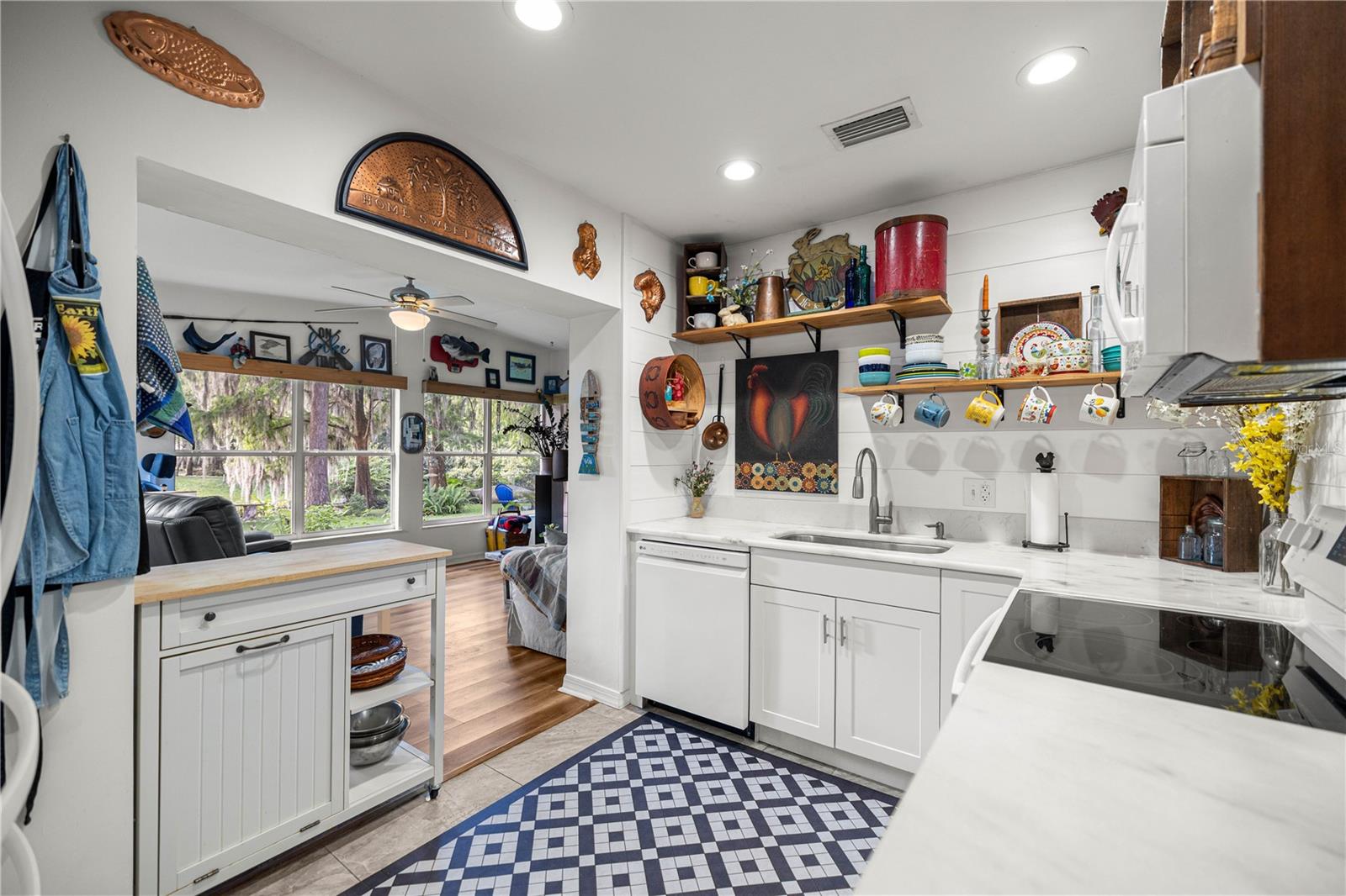 One of the best Waterfront Locations is where you will find this treasure situated on a deep and wide canal with quick access to the Open Lakes. Newer Roof, AC, Appliances, Kitchen, Bathroom, Flooring and Paint leave little for you to do. Just move in and start enjoying Life. The lush landscaping and style of this home have been done with loads of attention to details, including your own Herb Garden. The bright and cheerful Family room has amazing views of the waterfront. If Fishing is your passion this is the spot. A new deck and Boat lift are waiting for you. The Boathouse even has a live well for your bait. A 10 x 24 Screen porch is ready for cooking outside, or come into the Bright and Beautiful Kitchen with newer appliances including a stove that features an air fryer. A ampel spaced dining room fits a full size table. Oversized Laundry room provides extra storage. Two Bedrooms and a modern Bathroom complete the package.