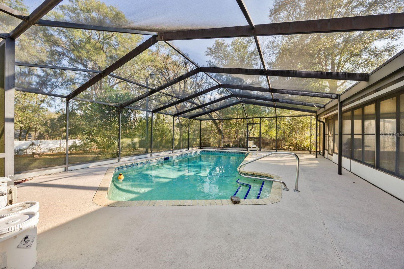 Take a look at this very well-maintained home in Inverness…1982 block home… 1,917 sqft… 1.15 acre… Screened inground pool. Inside you will find: Split floor plan. 3 bedrooms. 2 baths. Eat-in kitchen/ family room combo with a wood burning fireplace. Formal living room with a bay window/ dining room area. Garage- screen/ two car/ laundry area/ storage room. Master bedroom has a vanity area/ walk-in closet and a bay window. Multipurpose room that could be used for a pantry, mudroom or storage. Hot water heater is approximately three years old. Outside you will find: Solar panels (owned). Roof (2021). Screened inground pool. Enclosed back porch. Fenced in backyard with storage shed. Water source is a well. Sewer is on septic tank.