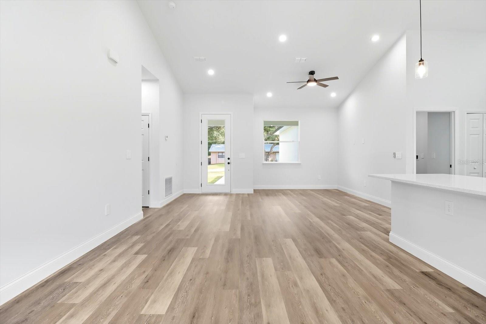 Home sweet Home! Discover the perfect blend of style and comfort in this newly constructed 2025, move-in-ready home featuring 3 spacious bedrooms and 2 elegant bathrooms. Designed with modern living in mind, the open-concept layout showcases high ceilings, bright lighting, and durable vinyl plank flooring throughout. The gorgeous kitchen is a showstopper, complete with quartz countertops, a large center island, subway tile backsplash, wood cabinetry, stainless steel appliances, and a generous walk-in pantry. The owner's suite offers a peaceful retreat with private access to the covered lanai, dual quartz vanities, a sleek ceramic tile shower, and a roomy walk-in closet. French doors open to a spacious backyard oasis with a covered lanai and outdoor sink—ideal for entertaining or relaxing in the Florida sunshine. Additional highlights include an interior laundry room and a 2-car garage for added convenience. Located just minutes from downtown Inverness, you'll enjoy easy access to charming shops, local eateries, and cultural attractions like the historic Valerie Theatre and Liberty Park. Outdoor enthusiasts will love the nearby Tsala Apopka Chain of Lakes for boating and fishing, while golfers can take advantage of several nearby courses. With quick access to major roadways, day trips to Crystal River, Ocala, and The Villages are a breeze. This is your chance to own a stylish new home in one of Florida’s most inviting communities.