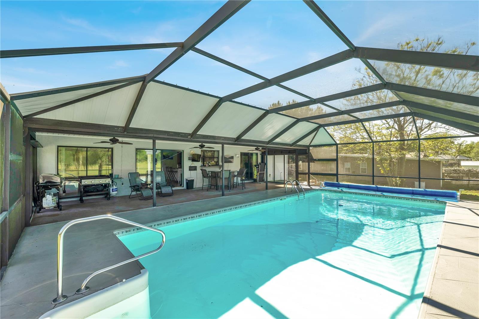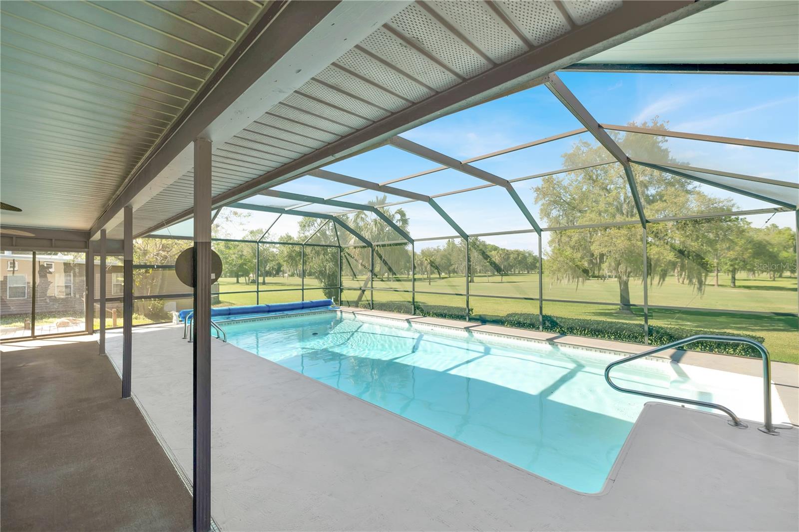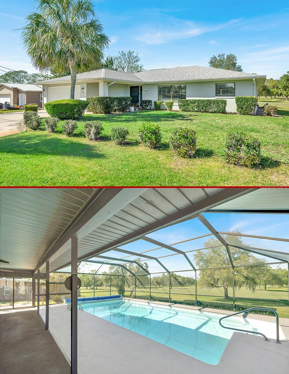 Welcome to your dream oasis! This magnificent 3-bedroom, 2-bathroom "POOL HOME" boasts a breathtaking, endless view of the lush greenery of the golf course and majestic trees. Step into a spacious open floor plan flooded with natural light, creating an inviting and airy atmosphere perfect for both relaxation and entertaining. The spacious kitchen showcases sleek granite countertops elegantly complemented by pristine white cabinets. Whether you're entertaining guests or enjoying a quiet meal with family, the kitchen's seamless integration with the living and dining areas ensures that every moment is infused with warmth and connectivity. The heart of this home is the large pool, a focal point for outdoor enjoyment, featuring a complete enclosure for added privacy and comfort. Additionally, the property is equipped with a well for irrigation purposes, ensuring your landscaping stays vibrant and beautiful year-round. Don't miss the chance to call this stunning retreat yours! ROOF 2019, HVAC 2022!!!