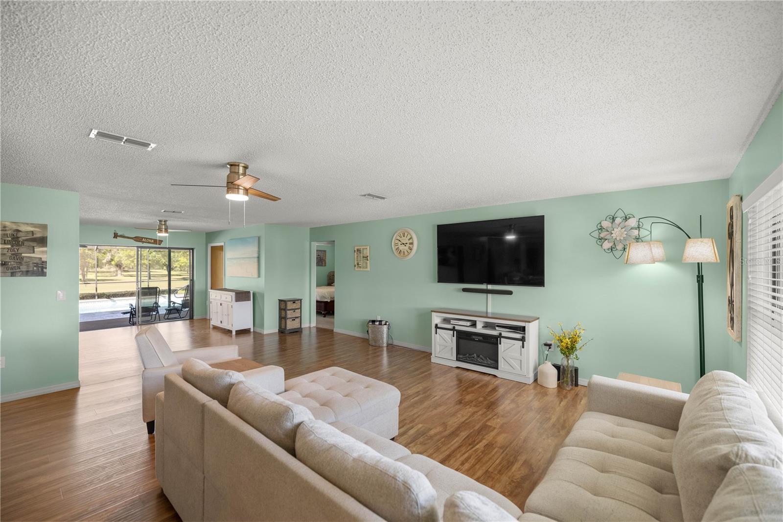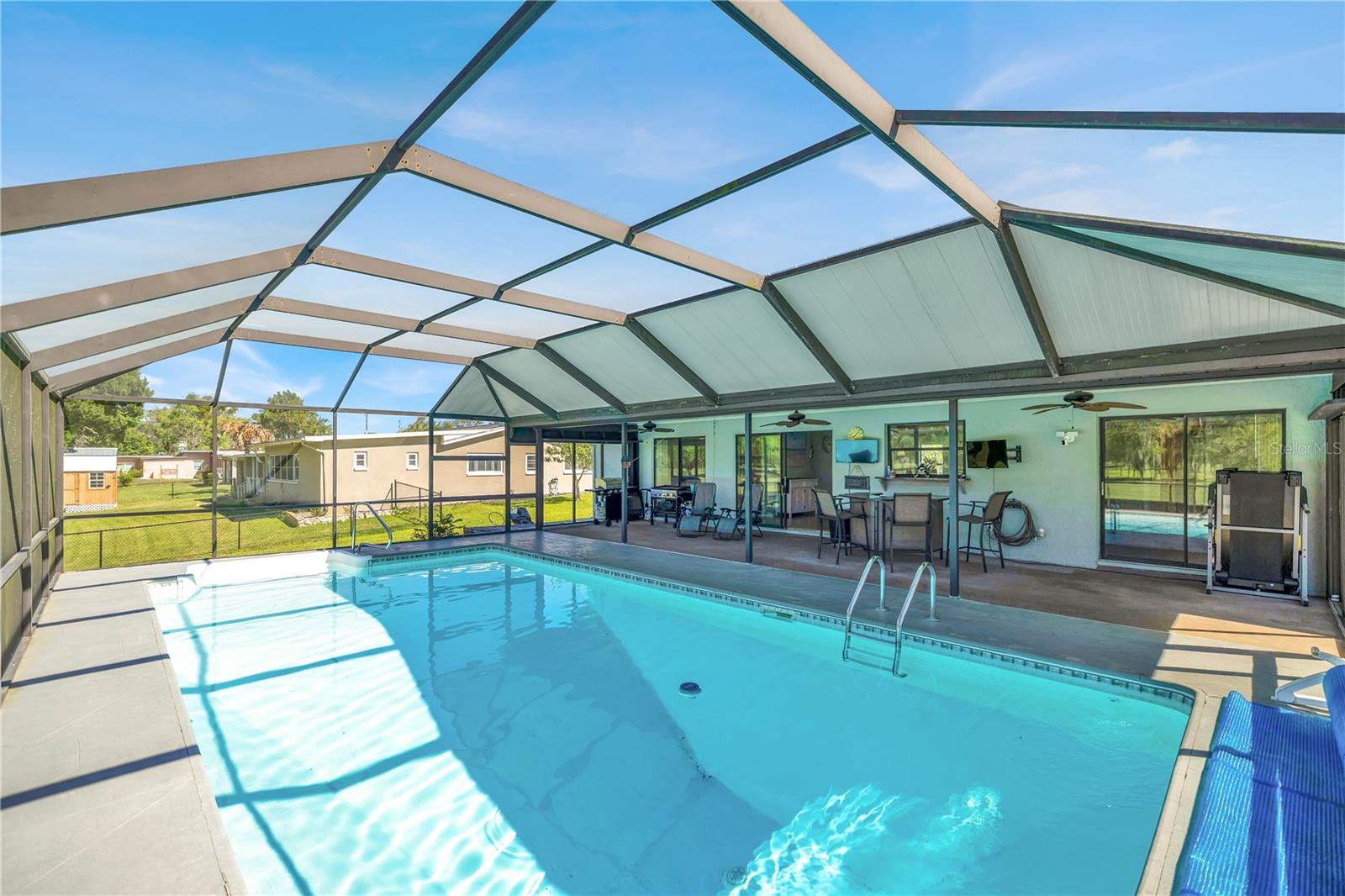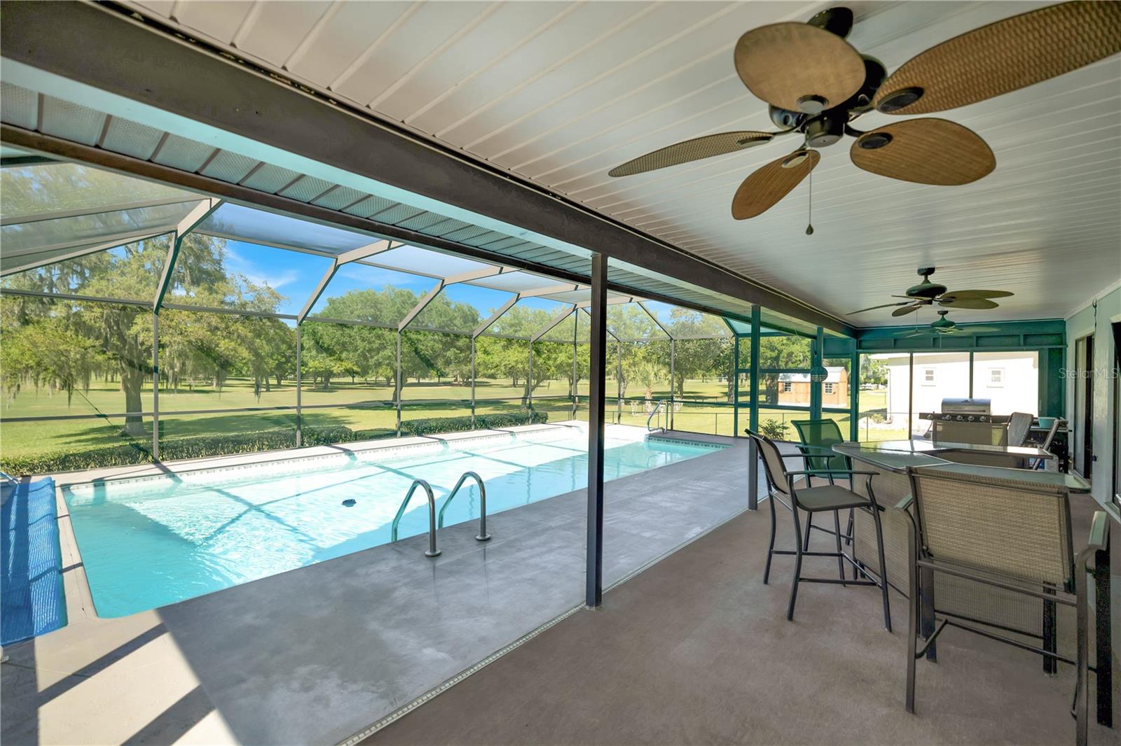 Welcome to your dream oasis! This magnificent 3-bedroom, 2-bathroom "POOL HOME" boasts a breathtaking, endless view of the lush greenery of the golf course and majestic trees. Step into a spacious open floor plan flooded with natural light, creating an inviting and airy atmosphere perfect for both relaxation and entertaining. The spacious kitchen showcases sleek granite countertops elegantly complemented by pristine white cabinets. Whether you're entertaining guests or enjoying a quiet meal with family, the kitchen's seamless integration with the living and dining areas ensures that every moment is infused with warmth and connectivity. The heart of this home is the large pool, a focal point for outdoor enjoyment, featuring a complete enclosure for added privacy and comfort. Additionally, the property is equipped with a well for irrigation purposes, ensuring your landscaping stays vibrant and beautiful year-round. Don't miss the chance to call this stunning retreat yours! ROOF 2019, HVAC 2022!!!