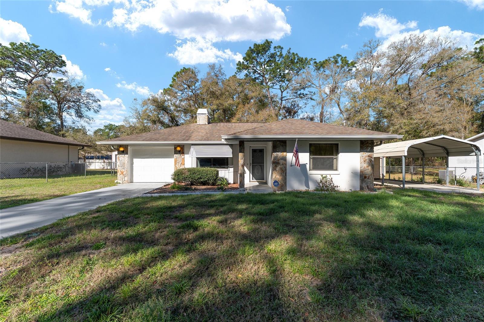 Back on market due to buyer financing falling through. Brand new drain field installed along with other major repairs completed. In the adorable city of Inverness, this adorable two-bedroom, two-bath home will not last long. The home boasts a large living area with high ceilings and a wood-burning fireplace at its focal point. The screened-in back porch is a nice way to enjoy the Florida weather. The fenced-in yard has a shed that conveys. The home has a one-car garage and a carport for added parking. This home is ready for new owners to make it their oasis. This home has no STR restrictions.