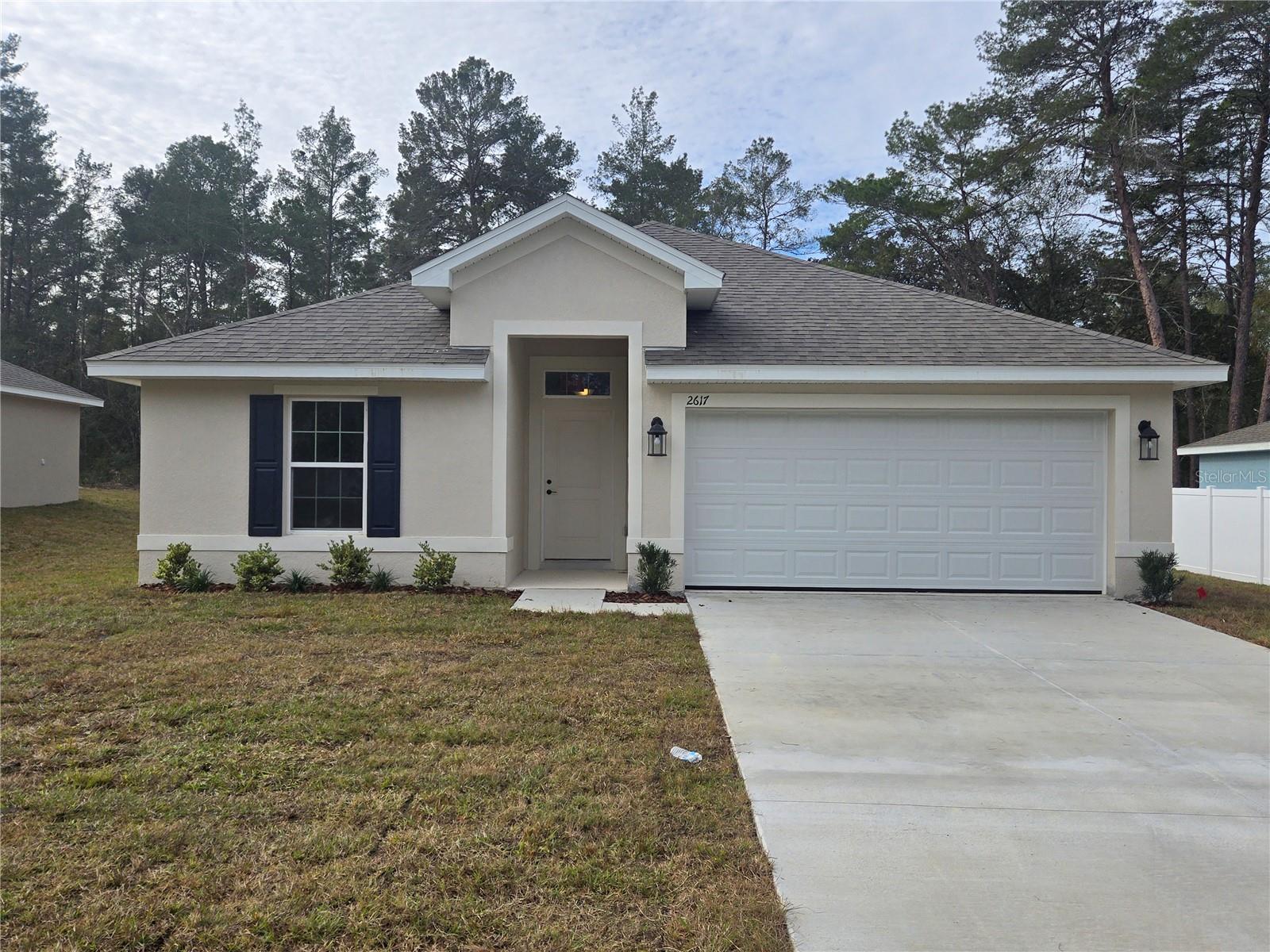 Welcome to your dream home! This beautiful 1512 sq ft residence features 3 spacious bedrooms and 2 luxurious baths. The modern kitchen comes with a complete stainless steel appliance package, stunning granite countertops, and elegant tile flooring throughout the home, with cozy carpet in the bedrooms. The main bedroom boasts a large walk-in closet, a relaxing garden tub, and a separate tiled shower with a light. Enjoy cooking and entertaining in the kitchen with its island and separate dining area, which flows seamlessly into the great room. The convenience of an in-home laundry room adds to the comfort of this home. Step outside to your private lanai and enjoy the serene wooded backyard. Located in the charming community of Inverness, this home offers both tranquility and modern living.