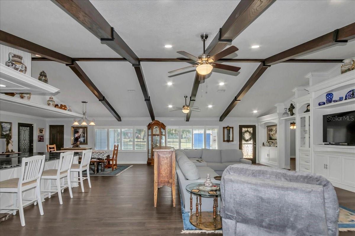 Completely Updated Saltwater Pool Home on the Tsala Apopka Chain of Lakes!!! Welcome to your dream retreat—an exquisitely updated saltwater pool home nestled on just under an acre of fully fenced, gated property along the stunning Tsala Apopka chain of lakes. Property boasts 3 bedrooms, 3 bathrooms and over 2700 square feet of living space. This beautiful home blends modern upgrades with timeless charm, offering both privacy and waterfront living at its finest. Step inside to an inviting open floor plan featuring luxury vinyl plank flooring throughout, warm wood-beamed ceilings and a cozy fireplace that sets the perfect tone for relaxed Florida living. Abundant windows with plantation shutters fill the home with natural light and frame tranquil views of the surrounding landscape. The chef’s kitchen is truly the heart of the home—showcasing solid wood cabinetry, granite countertops, double built-in ovens, a farmhouse-style sink, along with a center island with cooktop and pot filler. Whether you’re entertaining or preparing everyday meals, this kitchen is designed to impress. The spacious primary suite offers a peaceful escape with its en-suite bathroom, walk-in closet, and a custom built-in dresser with TV space for added convenience and style. A split bedroom layout provides two generously sized guest rooms—ideal for visitors, family or a home office setup. The sun room and extra dining area overlook the sparkling saltwater pool and have incredible lake views, creating seamless indoor–outdoor living and perfect flow for gatherings. Outdoors, enjoy the Florida lifestyle with plenty of room to roam, play or relax. This acre property is adorned with two orange trees, a lemon tree, a banana tree, two fig trees, a peach tree and an Argentina grape tree! With nearly an acre of land, a secure gated entry, and access to the iconic Tsala Apopka lakes, this home delivers a rare combination of comfort, luxury and adventure! Property is less than 5 minutes from historic downtown Inverness Liberty Park, nature trails, farmer's markets, restaurants, medical offices and MORE!