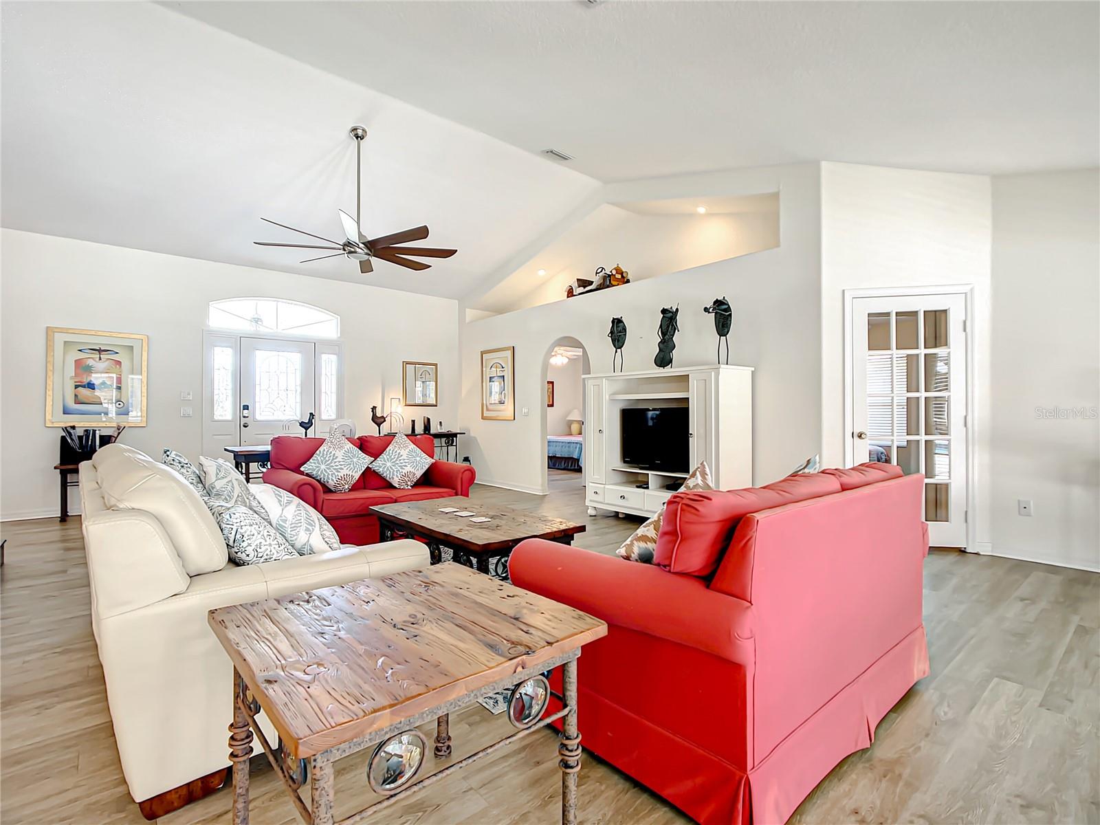 UPDATE BRAND NEW ROOF Enjoy the tranquility of this beautiful pool home on 0.36 acres, perfectly situated in Lakeside. This inviting home offers 2004 square feet of comfortable living space, with 3 spacious bedrooms, 2 elegant bathrooms and a semi-open floor plan with high ceilings. The living room flows seamlessly into the formal dining room, ideal for dining or transforming into a cozy study. The highlight of this home is the expansive pool area, with a large, sparkling pool that promises endless hours of relaxation and fun. The pool deck, complete with waterfall and palm trees, offers ample space for sunbathing, al fresco dining or hosting gatherings. The generous size of the deck ensures that you can comfortably entertain your guests and fully enjoy the outdoor Florida lifestyle. The kitchen with updated appliances has a breakfast nook where you can start your day with a serene view. Step through the French doors and immerse yourself in pure Florida living. Situated just minutes from a chain of lakes and scenic bike paths, this peaceful community offers the perfect retreat while still being close to the amenities of town. Don’t miss the opportunity to own this beautiful home and enjoy the best that Florida have.