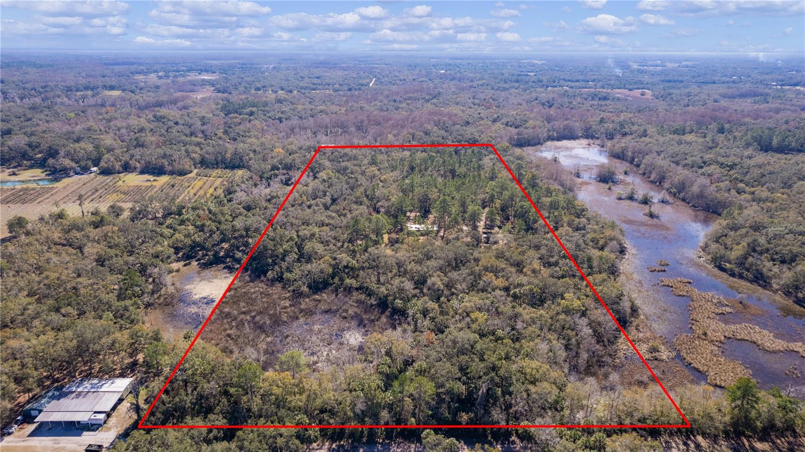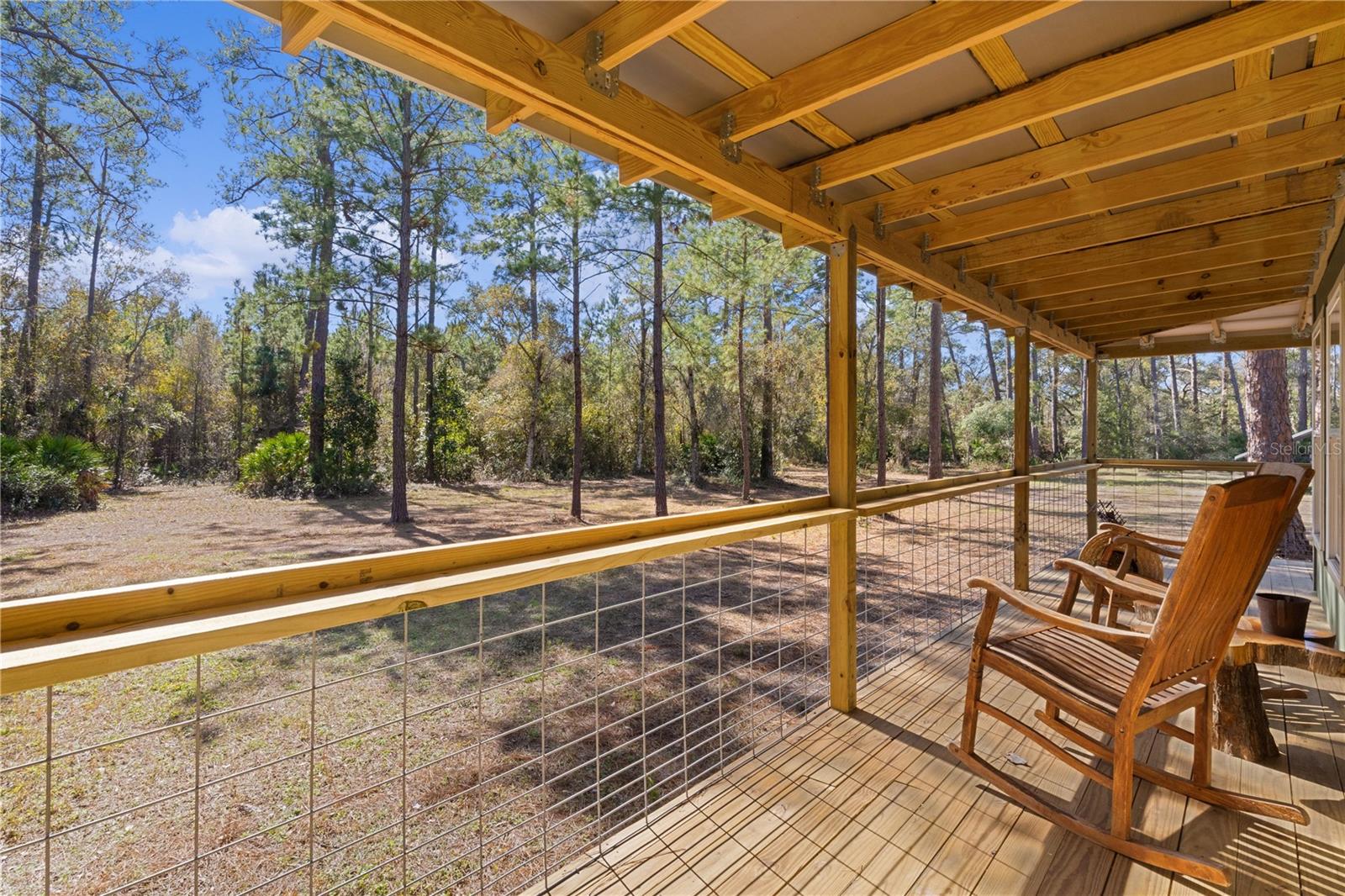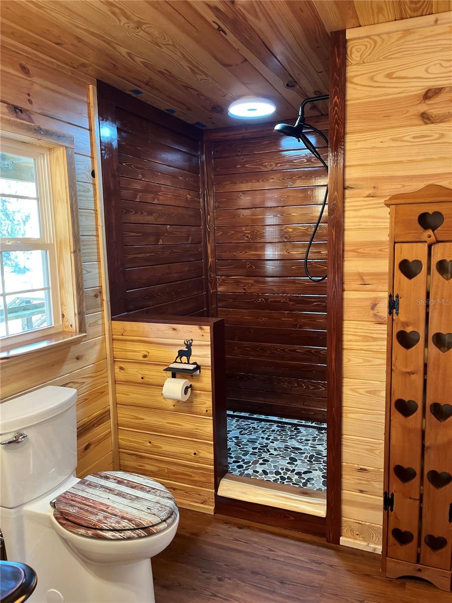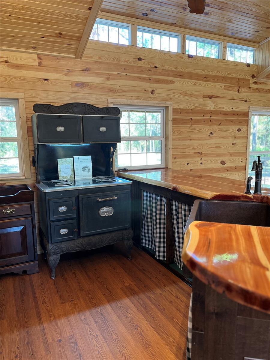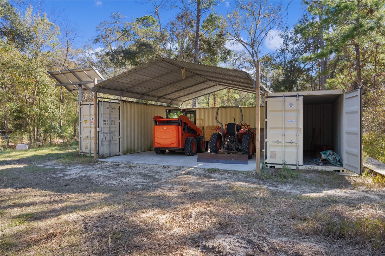 **Significant price reduction on this hidden gem! Below appraised value!!** A small cottage on 18.8 acres surrounded by all natural, native growth, right in the heart of Florida yet a quick easy drive to major roadways, the Florida Turnpike, interstate, and, 30 minutes to the Gulf. This cabin was custom designed by the owners and assembled onsite. So charming and inviting on the outside but wait til you see the inside! All custom, everything in it from the heart pine walls and ceiling, to the 1960's Sears Electric stove that works like a charm, to the aqua refrigerator, to the breakfast bar counter with the raw edge, to the copper sink, but wait til you see the bathroom! All the details. The bedroom is full of windows for letting in all the outside light, day or night and has a walk-in closet. It's like sleeping in a tree house. Custom lighting throughout and stylized ceiling fans just keep adding to the setting. There is a small pantry for additional storage. Barn style sliding doors open to the walk-in closet and bath. Outside there is a walk-around porch, with railing and wire underneath to keep the littles and pets safe. You can sit on the porch in the morning and have your coffee to watch the sunrise and move to the other to watch the sunset. Then, there's more. There is an additional shed with a loft that stores part of the solar equipment but can be used for small storage or bunkhouse. As shown in the photos, this property is solar powered. Fully functional. There is a breaker box that also has the set-up to convert to generator power or if the owner chooses to run electric in, can convert to electric just with the flip of the handle. There are on demand hot water heaters. A short distance away from the cabin, there are three covered storage containers for equipment or materials, or toys, on a 20x25 concrete pad. The solar powered well is also there. This property is unique, for sure, waiting for the family looking for a week-end camp, or for the off the grid preppers, Airbnb, the list is long. Full of wildlife, wildflowers, and Mother Nature. Accessed by a winding drive thru the native woods, you would never know it's there. This property did not flood during the hurricane. It is well worth the look! Equal Opportunity Housing.
