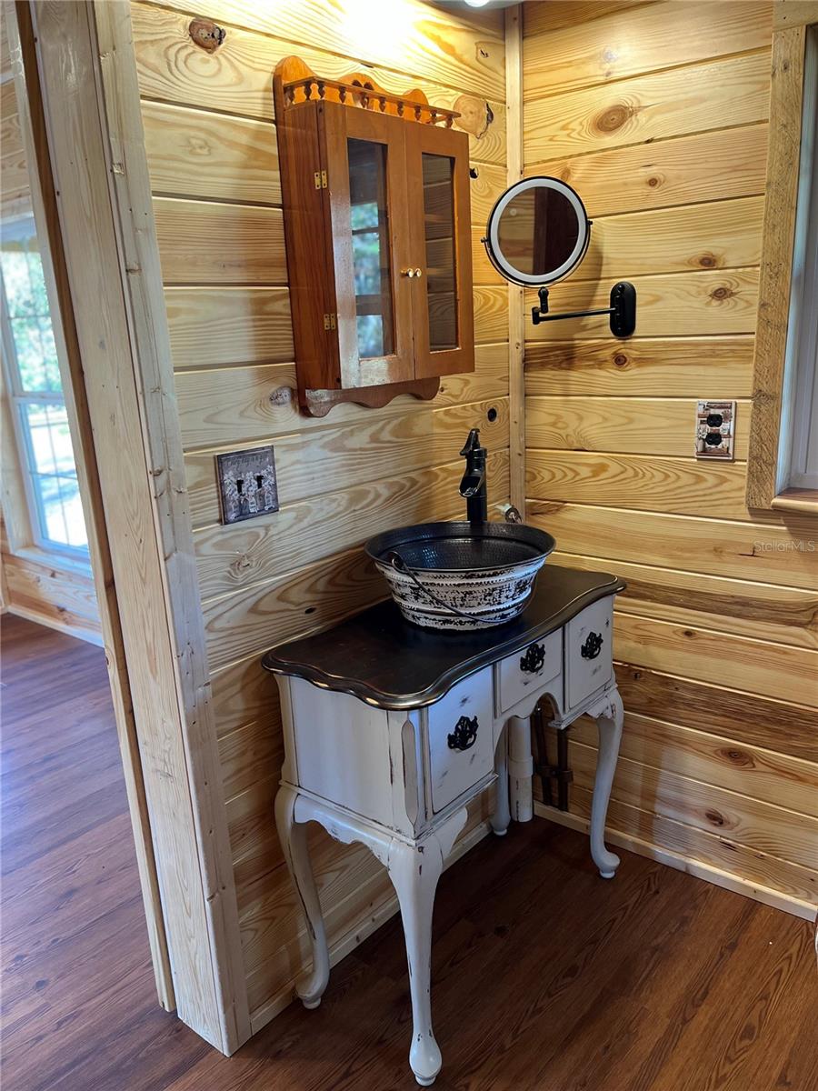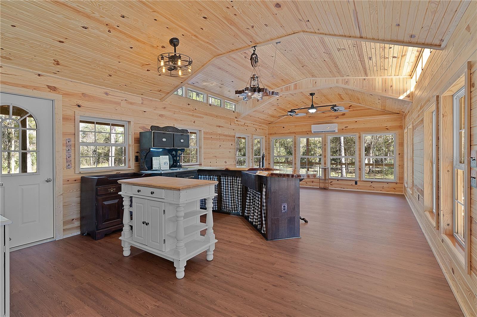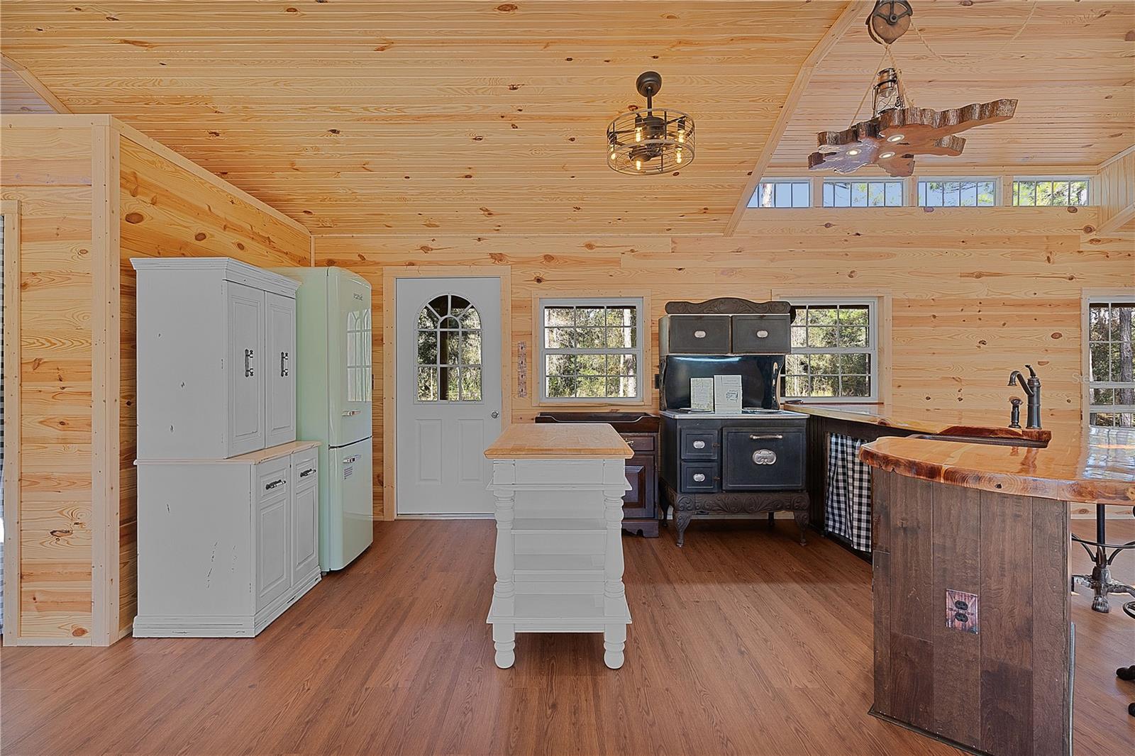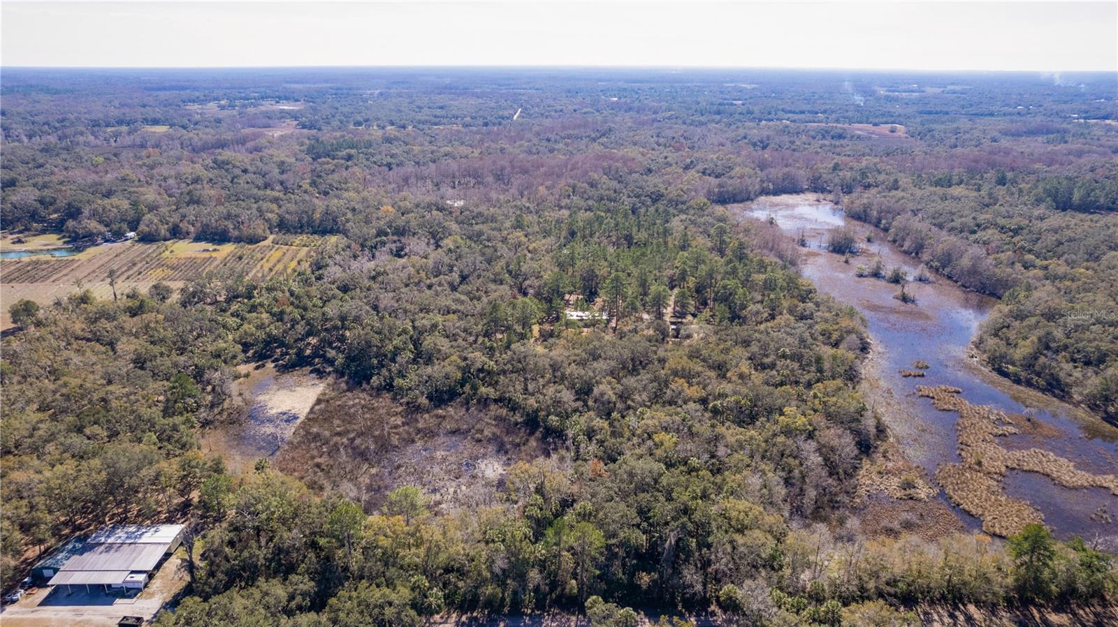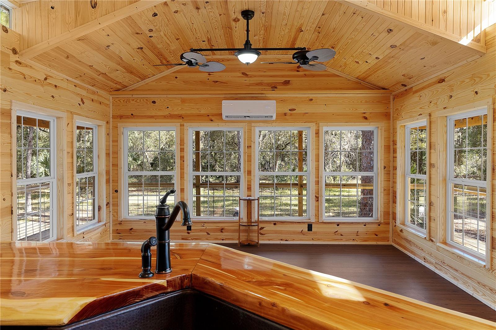 **Significant price reduction on this hidden gem! Below appraised value!!** A small cottage on 18.8 acres surrounded by all natural, native growth, right in the heart of Florida yet a quick easy drive to major roadways, the Florida Turnpike, interstate, and, 30 minutes to the Gulf. This cabin was custom designed by the owners and assembled onsite. So charming and inviting on the outside but wait til you see the inside! All custom, everything in it from the heart pine walls and ceiling, to the 1960's Sears Electric stove that works like a charm, to the aqua refrigerator, to the breakfast bar counter with the raw edge, to the copper sink, but wait til you see the bathroom! All the details. The bedroom is full of windows for letting in all the outside light, day or night and has a walk-in closet. It's like sleeping in a tree house. Custom lighting throughout and stylized ceiling fans just keep adding to the setting. There is a small pantry for additional storage. Barn style sliding doors open to the walk-in closet and bath. Outside there is a walk-around porch, with railing and wire underneath to keep the littles and pets safe. You can sit on the porch in the morning and have your coffee to watch the sunrise and move to the other to watch the sunset. Then, there's more. There is an additional shed with a loft that stores part of the solar equipment but can be used for small storage or bunkhouse. As shown in the photos, this property is solar powered. Fully functional. There is a breaker box that also has the set-up to convert to generator power or if the owner chooses to run electric in, can convert to electric just with the flip of the handle. There are on demand hot water heaters. A short distance away from the cabin, there are three covered storage containers for equipment or materials, or toys, on a 20x25 concrete pad. The solar powered well is also there. This property is unique, for sure, waiting for the family looking for a week-end camp, or for the off the grid preppers, Airbnb, the list is long. Full of wildlife, wildflowers, and Mother Nature. Accessed by a winding drive thru the native woods, you would never know it's there. This property did not flood during the hurricane. It is well worth the look! Equal Opportunity Housing.