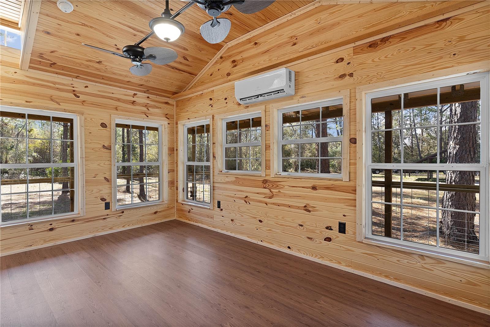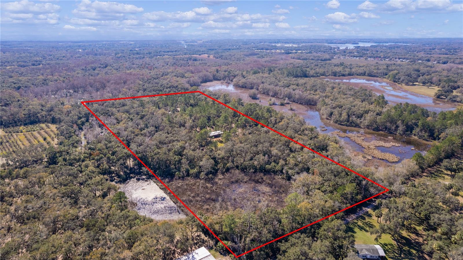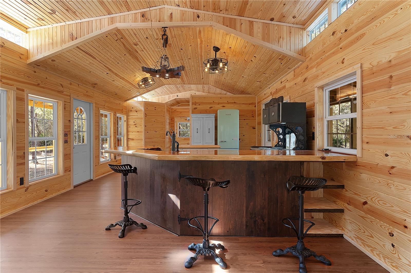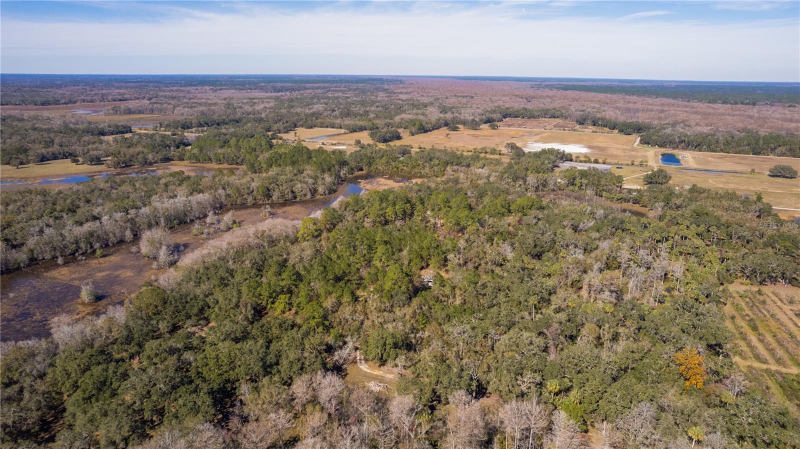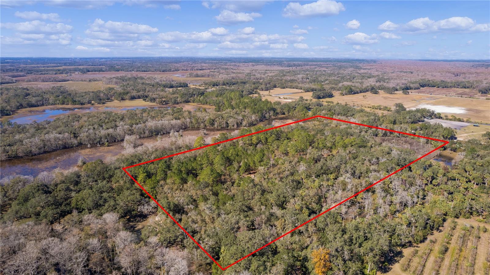 **Significant price reduction on this hidden gem! Below appraised value!!** A small cottage on 18.8 acres surrounded by all natural, native growth, right in the heart of Florida yet a quick easy drive to major roadways, the Florida Turnpike, interstate, and, 30 minutes to the Gulf. This cabin was custom designed by the owners and assembled onsite. So charming and inviting on the outside but wait til you see the inside! All custom, everything in it from the heart pine walls and ceiling, to the 1960's Sears Electric stove that works like a charm, to the aqua refrigerator, to the breakfast bar counter with the raw edge, to the copper sink, but wait til you see the bathroom! All the details. The bedroom is full of windows for letting in all the outside light, day or night and has a walk-in closet. It's like sleeping in a tree house. Custom lighting throughout and stylized ceiling fans just keep adding to the setting. There is a small pantry for additional storage. Barn style sliding doors open to the walk-in closet and bath. Outside there is a walk-around porch, with railing and wire underneath to keep the littles and pets safe. You can sit on the porch in the morning and have your coffee to watch the sunrise and move to the other to watch the sunset. Then, there's more. There is an additional shed with a loft that stores part of the solar equipment but can be used for small storage or bunkhouse. As shown in the photos, this property is solar powered. Fully functional. There is a breaker box that also has the set-up to convert to generator power or if the owner chooses to run electric in, can convert to electric just with the flip of the handle. There are on demand hot water heaters. A short distance away from the cabin, there are three covered storage containers for equipment or materials, or toys, on a 20x25 concrete pad. The solar powered well is also there. This property is unique, for sure, waiting for the family looking for a week-end camp, or for the off the grid preppers, Airbnb, the list is long. Full of wildlife, wildflowers, and Mother Nature. Accessed by a winding drive thru the native woods, you would never know it's there. This property did not flood during the hurricane. It is well worth the look! Equal Opportunity Housing.