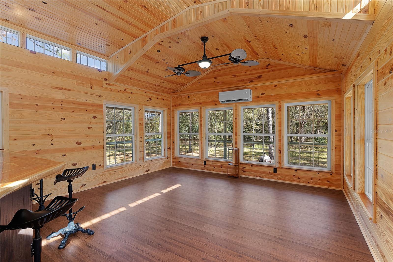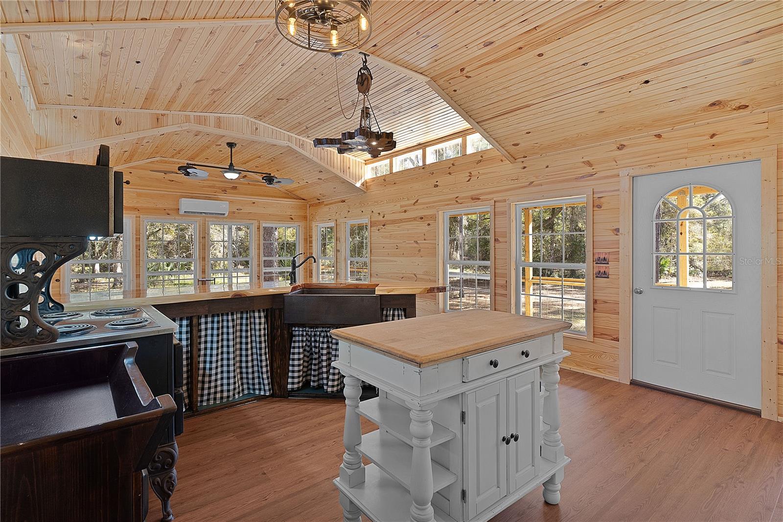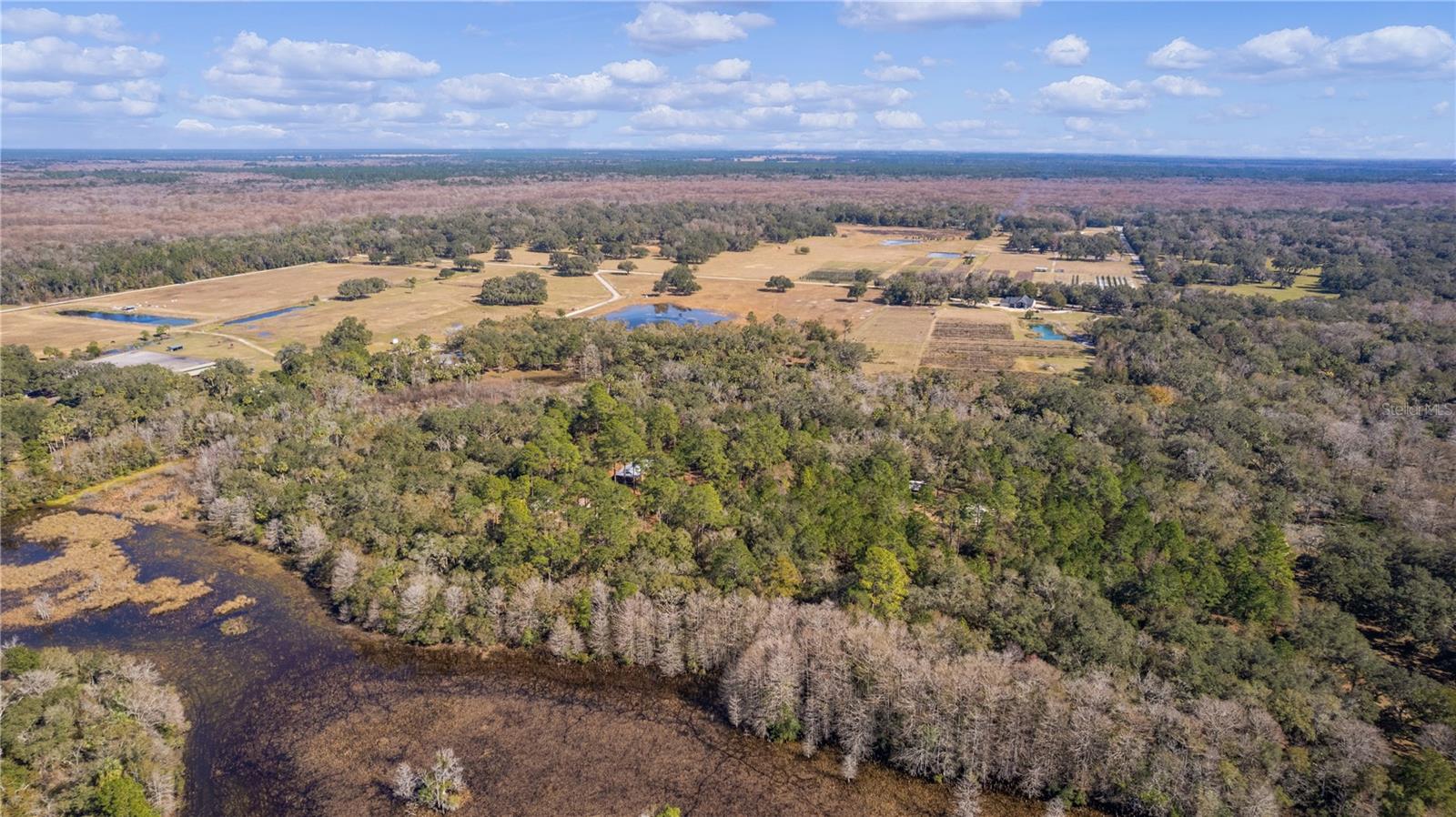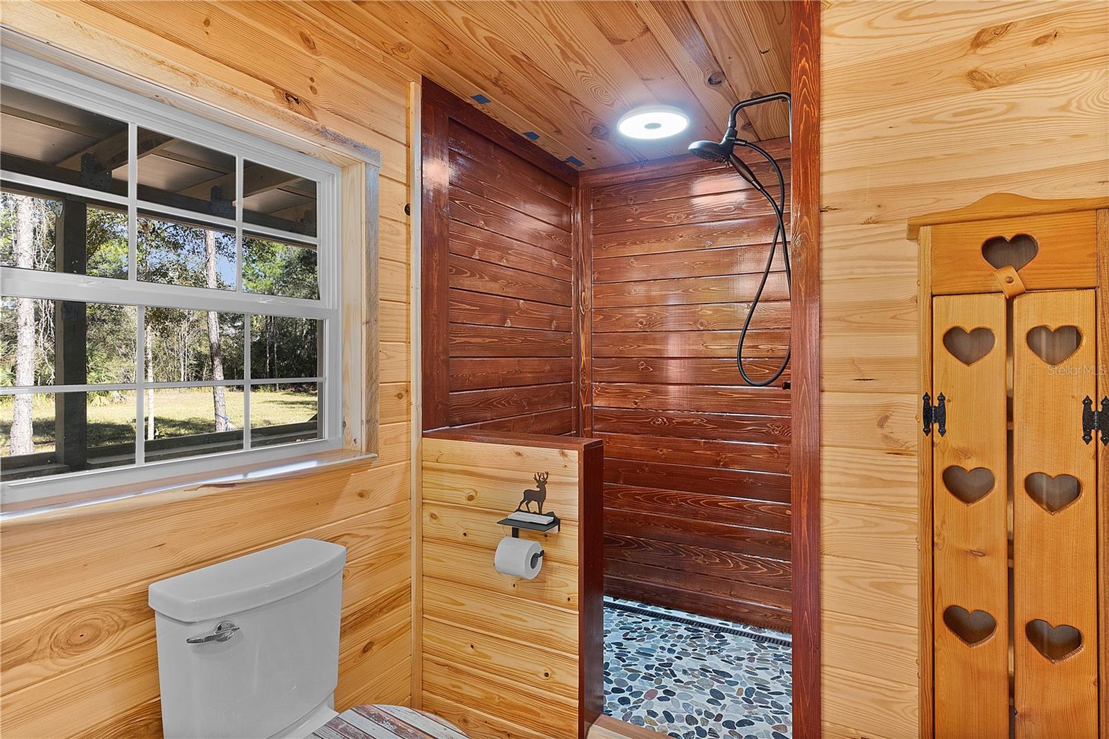 **Significant price reduction on this hidden gem! Below appraised value!!** A small cottage on 18.8 acres surrounded by all natural, native growth, right in the heart of Florida yet a quick easy drive to major roadways, the Florida Turnpike, interstate, and, 30 minutes to the Gulf. This cabin was custom designed by the owners and assembled onsite. So charming and inviting on the outside but wait til you see the inside! All custom, everything in it from the heart pine walls and ceiling, to the 1960's Sears Electric stove that works like a charm, to the aqua refrigerator, to the breakfast bar counter with the raw edge, to the copper sink, but wait til you see the bathroom! All the details. The bedroom is full of windows for letting in all the outside light, day or night and has a walk-in closet. It's like sleeping in a tree house. Custom lighting throughout and stylized ceiling fans just keep adding to the setting. There is a small pantry for additional storage. Barn style sliding doors open to the walk-in closet and bath. Outside there is a walk-around porch, with railing and wire underneath to keep the littles and pets safe. You can sit on the porch in the morning and have your coffee to watch the sunrise and move to the other to watch the sunset. Then, there's more. There is an additional shed with a loft that stores part of the solar equipment but can be used for small storage or bunkhouse. As shown in the photos, this property is solar powered. Fully functional. There is a breaker box that also has the set-up to convert to generator power or if the owner chooses to run electric in, can convert to electric just with the flip of the handle. There are on demand hot water heaters. A short distance away from the cabin, there are three covered storage containers for equipment or materials, or toys, on a 20x25 concrete pad. The solar powered well is also there. This property is unique, for sure, waiting for the family looking for a week-end camp, or for the off the grid preppers, Airbnb, the list is long. Full of wildlife, wildflowers, and Mother Nature. Accessed by a winding drive thru the native woods, you would never know it's there. This property did not flood during the hurricane. It is well worth the look! Equal Opportunity Housing.