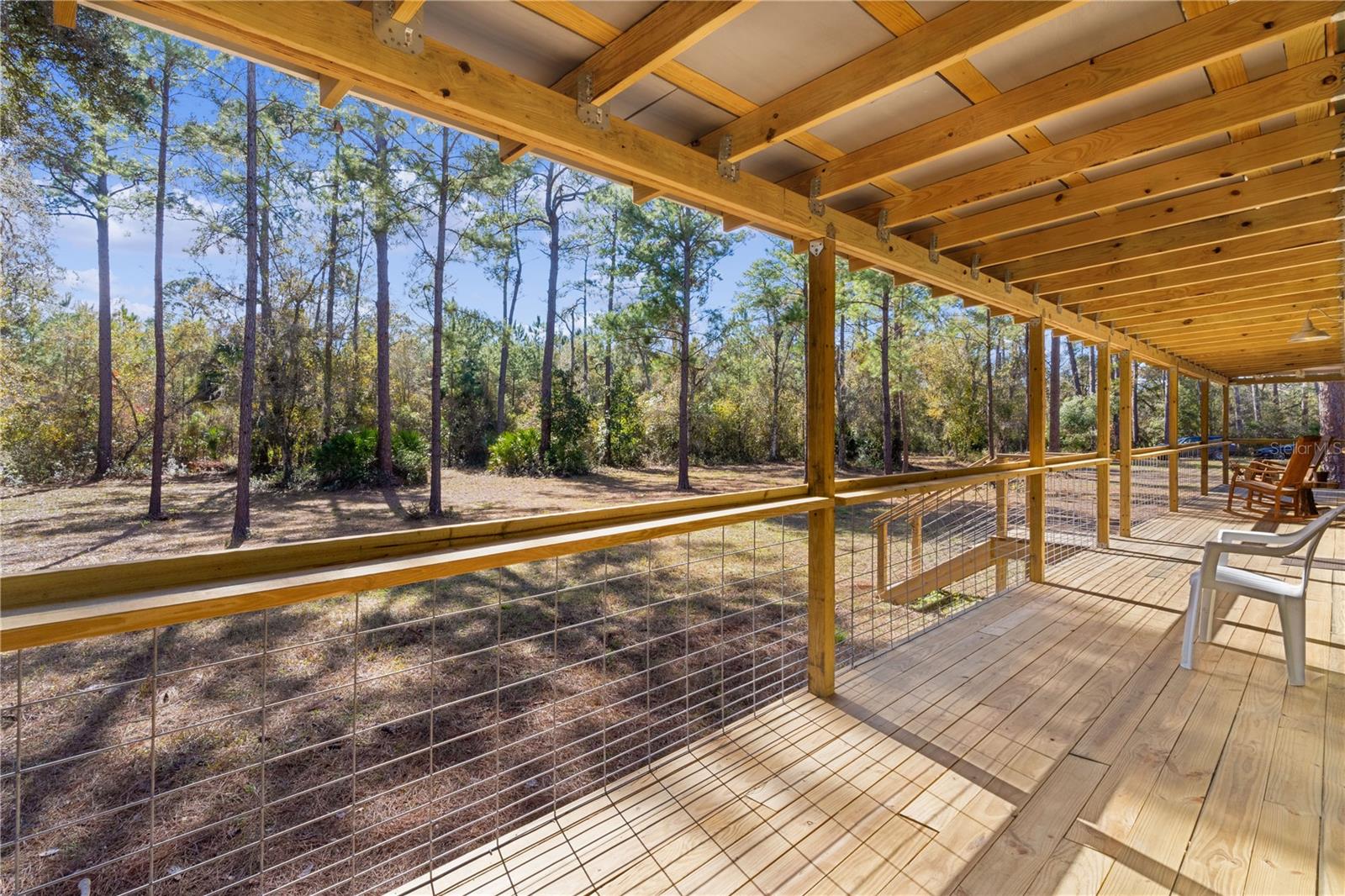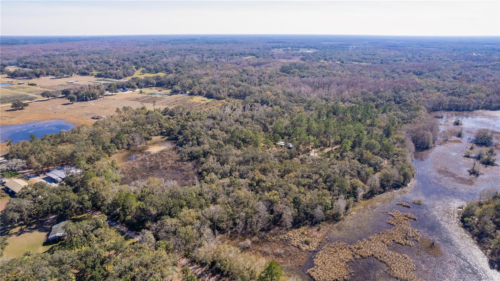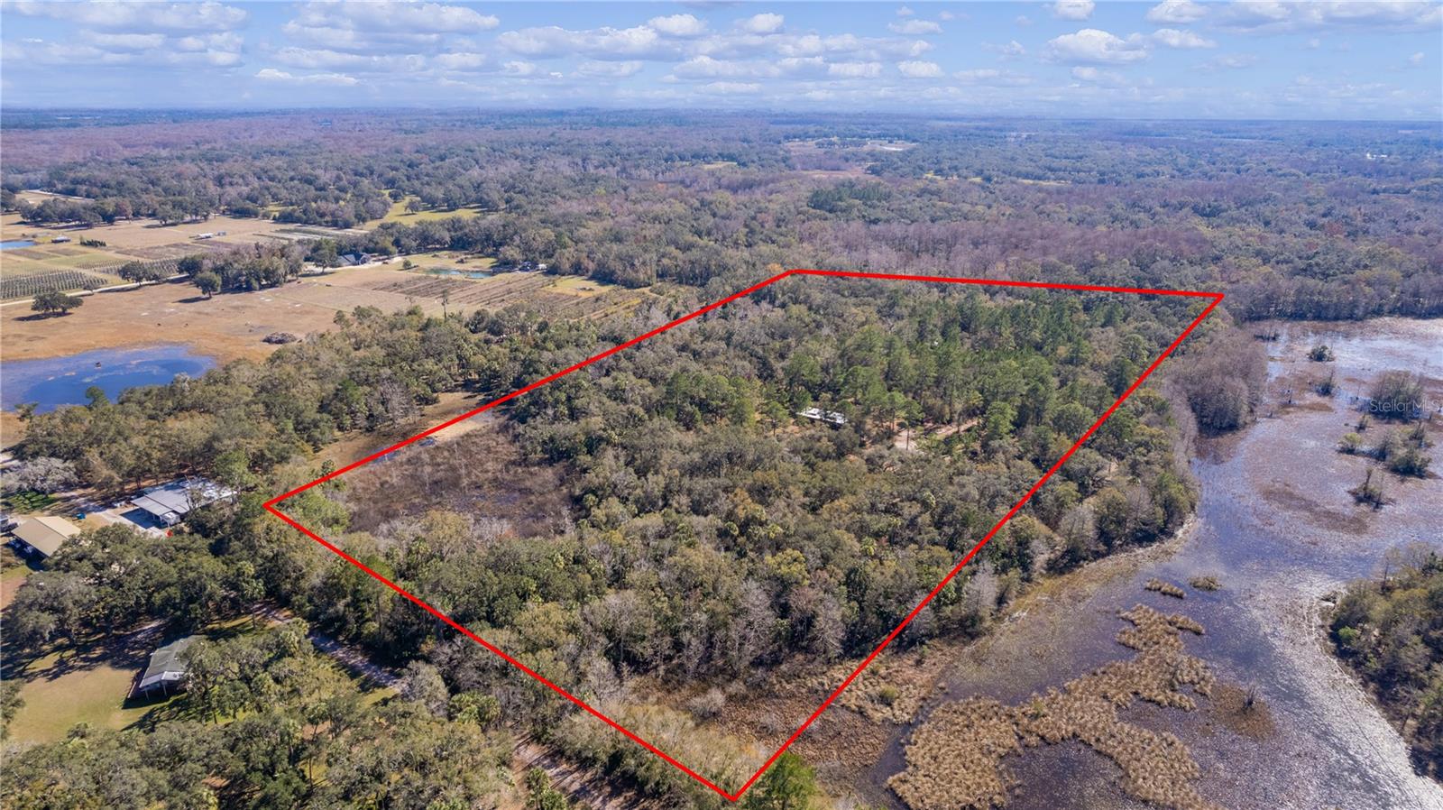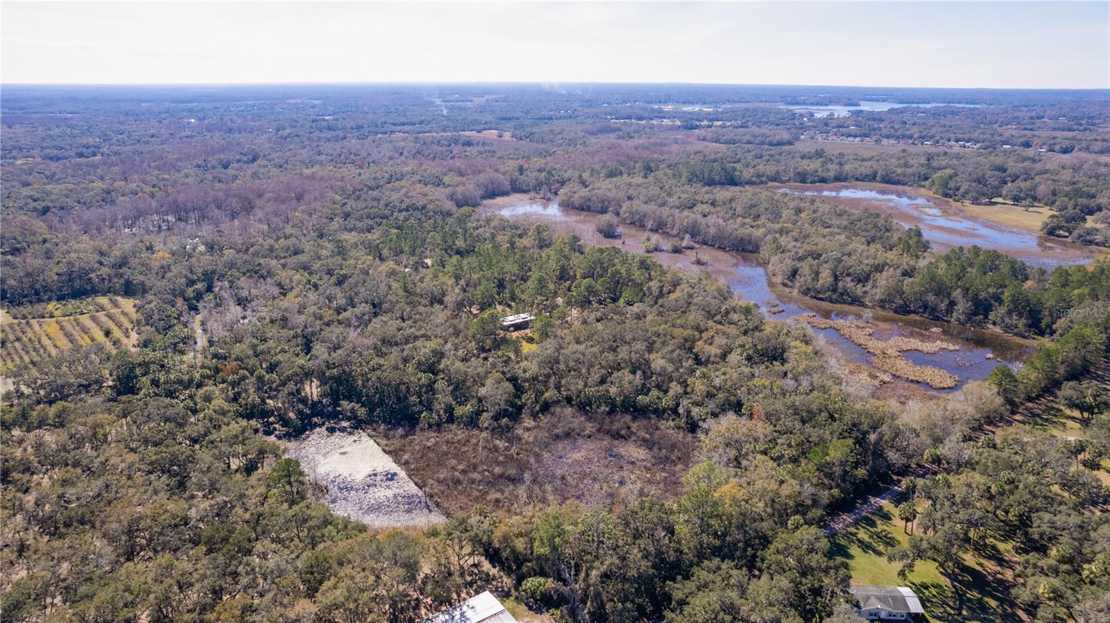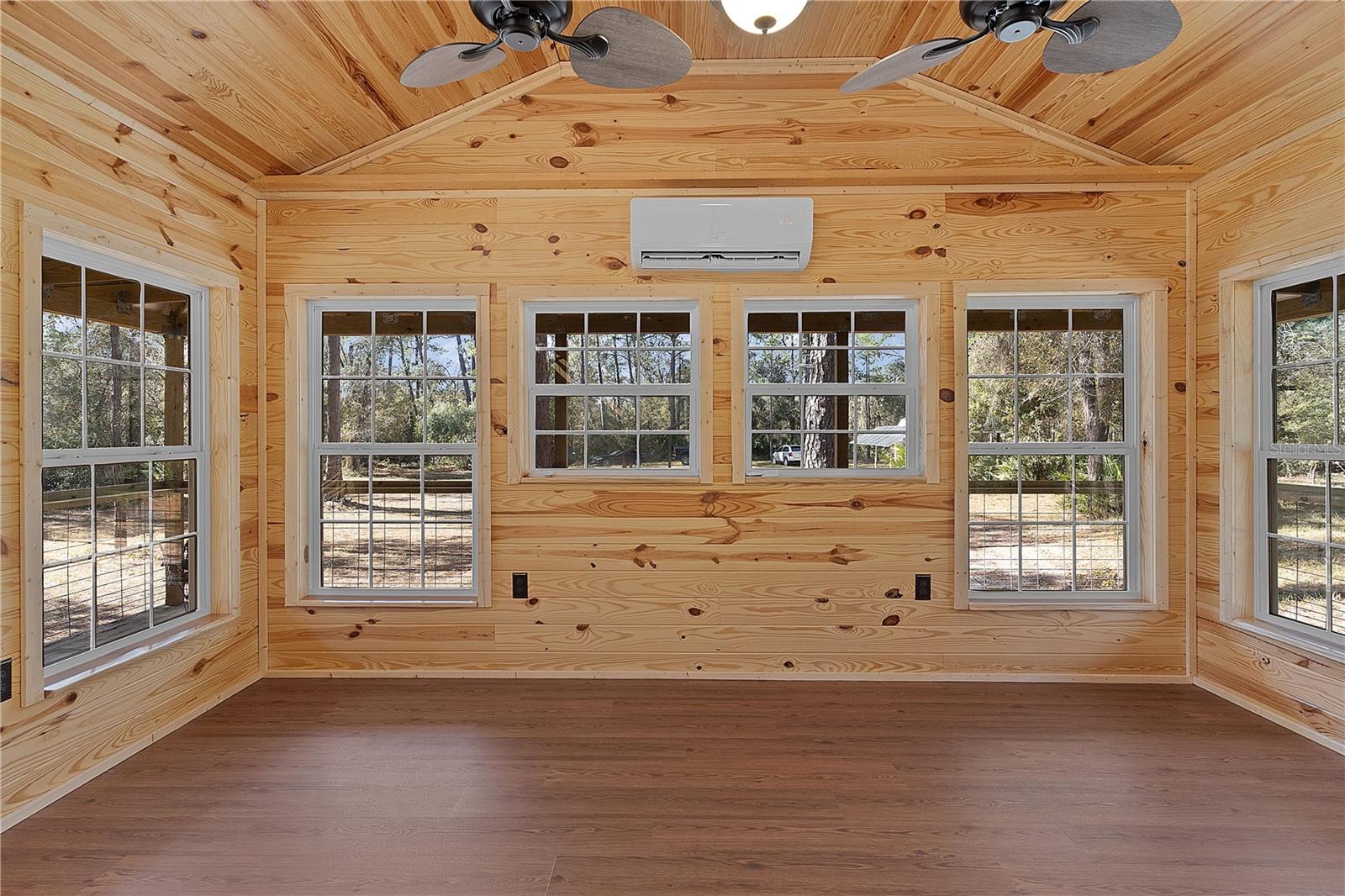 **Significant price reduction on this hidden gem! Below appraised value!!** A small cottage on 18.8 acres surrounded by all natural, native growth, right in the heart of Florida yet a quick easy drive to major roadways, the Florida Turnpike, interstate, and, 30 minutes to the Gulf. This cabin was custom designed by the owners and assembled onsite. So charming and inviting on the outside but wait til you see the inside! All custom, everything in it from the heart pine walls and ceiling, to the 1960's Sears Electric stove that works like a charm, to the aqua refrigerator, to the breakfast bar counter with the raw edge, to the copper sink, but wait til you see the bathroom! All the details. The bedroom is full of windows for letting in all the outside light, day or night and has a walk-in closet. It's like sleeping in a tree house. Custom lighting throughout and stylized ceiling fans just keep adding to the setting. There is a small pantry for additional storage. Barn style sliding doors open to the walk-in closet and bath. Outside there is a walk-around porch, with railing and wire underneath to keep the littles and pets safe. You can sit on the porch in the morning and have your coffee to watch the sunrise and move to the other to watch the sunset. Then, there's more. There is an additional shed with a loft that stores part of the solar equipment but can be used for small storage or bunkhouse. As shown in the photos, this property is solar powered. Fully functional. There is a breaker box that also has the set-up to convert to generator power or if the owner chooses to run electric in, can convert to electric just with the flip of the handle. There are on demand hot water heaters. A short distance away from the cabin, there are three covered storage containers for equipment or materials, or toys, on a 20x25 concrete pad. The solar powered well is also there. This property is unique, for sure, waiting for the family looking for a week-end camp, or for the off the grid preppers, Airbnb, the list is long. Full of wildlife, wildflowers, and Mother Nature. Accessed by a winding drive thru the native woods, you would never know it's there. This property did not flood during the hurricane. It is well worth the look! Equal Opportunity Housing.