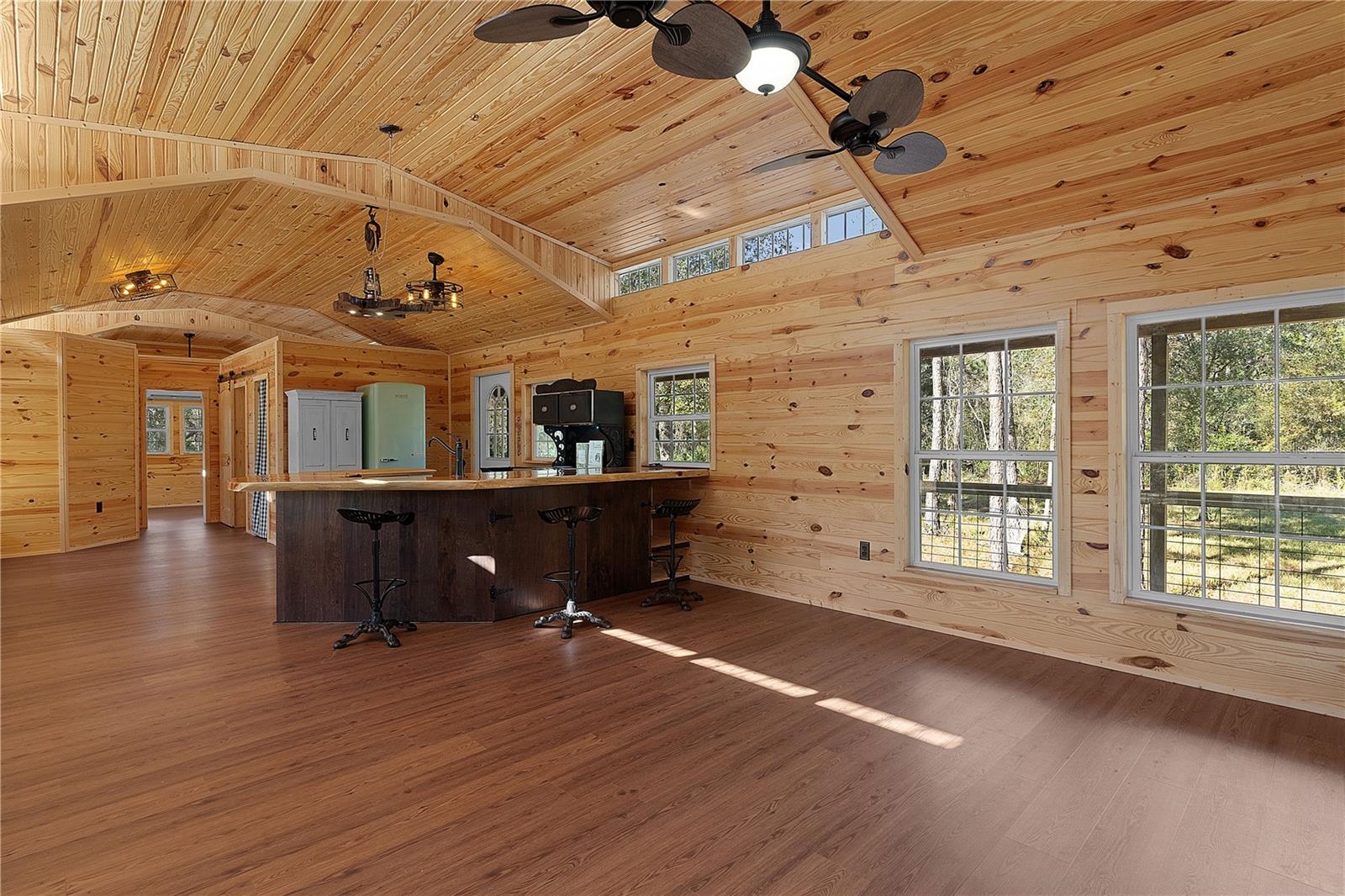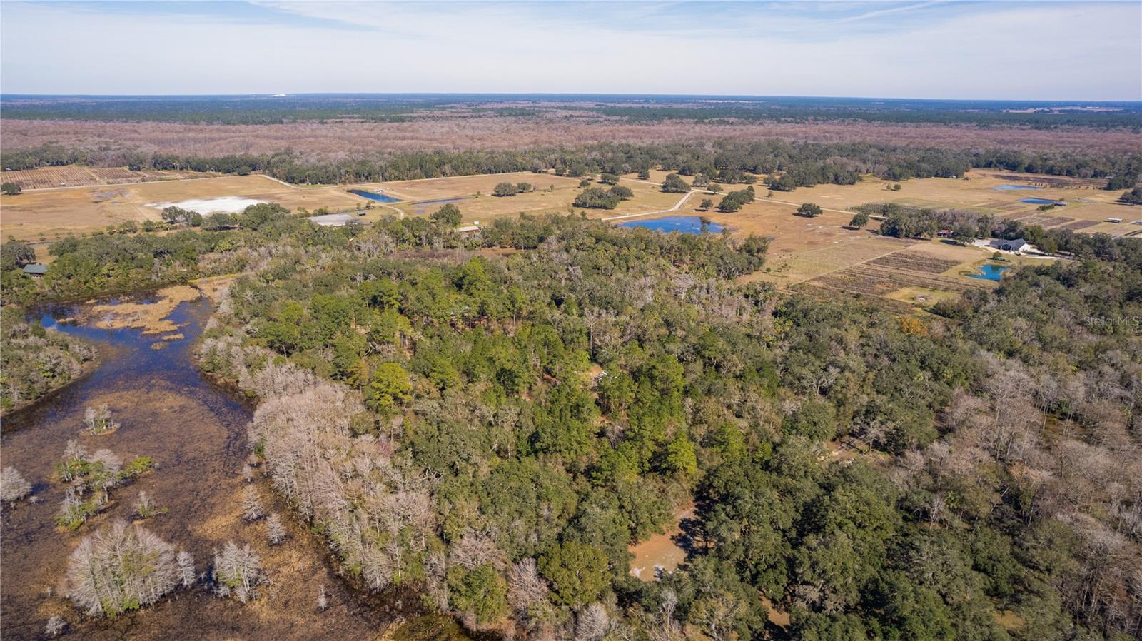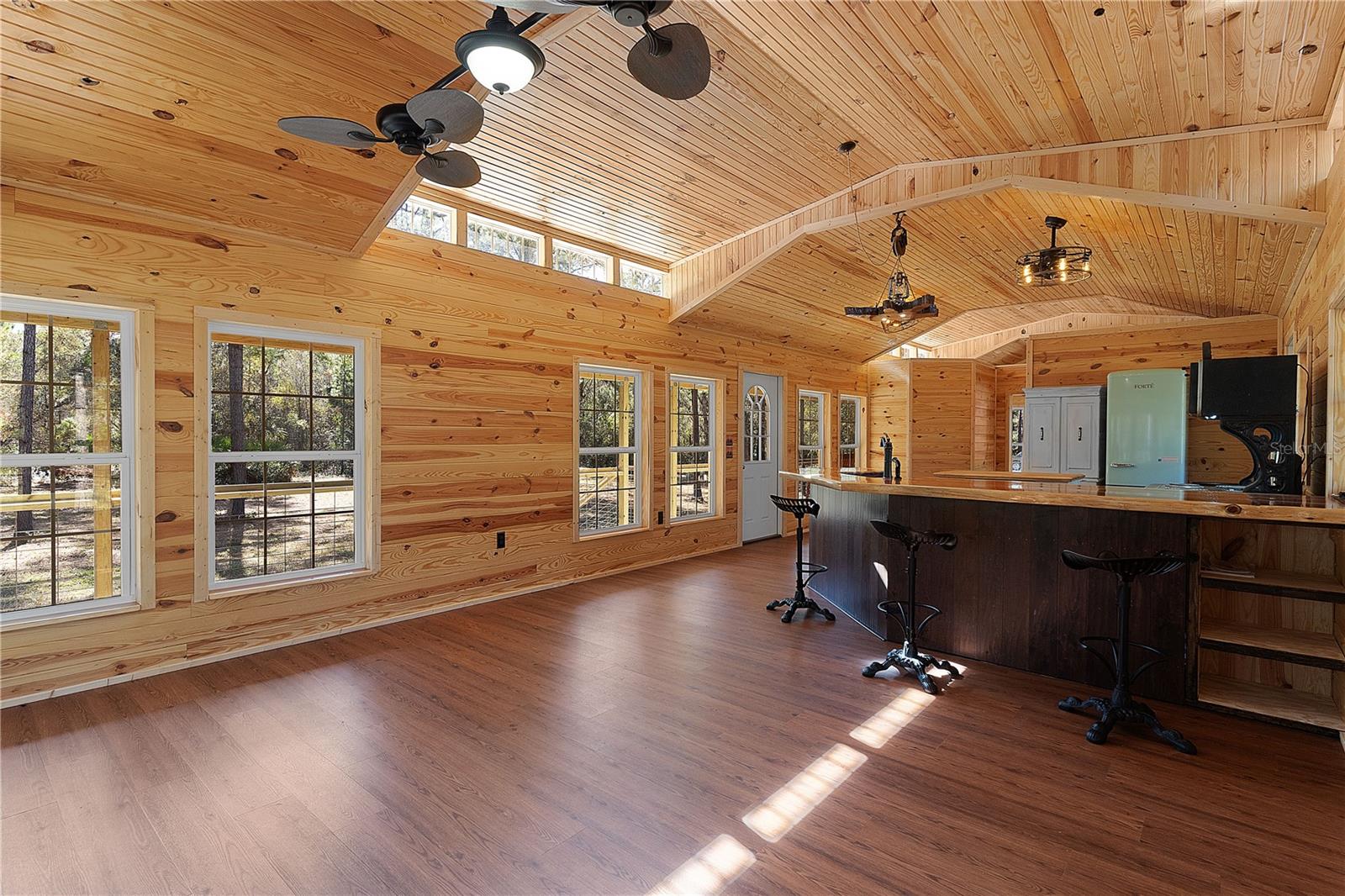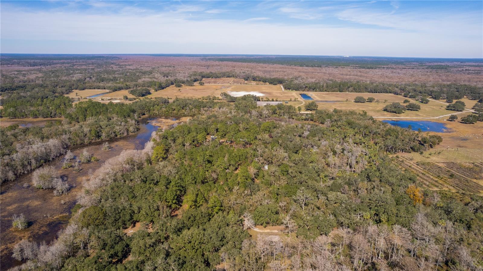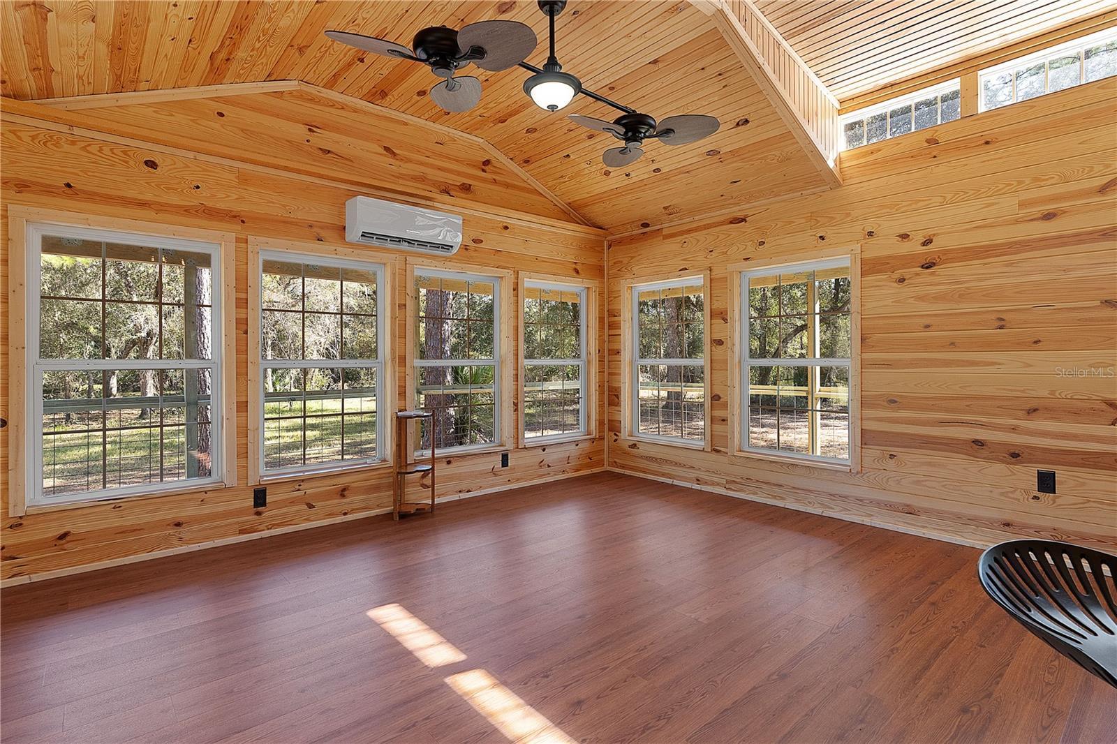 **Significant price reduction on this hidden gem! Below appraised value!!** A small cottage on 18.8 acres surrounded by all natural, native growth, right in the heart of Florida yet a quick easy drive to major roadways, the Florida Turnpike, interstate, and, 30 minutes to the Gulf. This cabin was custom designed by the owners and assembled onsite. So charming and inviting on the outside but wait til you see the inside! All custom, everything in it from the heart pine walls and ceiling, to the 1960's Sears Electric stove that works like a charm, to the aqua refrigerator, to the breakfast bar counter with the raw edge, to the copper sink, but wait til you see the bathroom! All the details. The bedroom is full of windows for letting in all the outside light, day or night and has a walk-in closet. It's like sleeping in a tree house. Custom lighting throughout and stylized ceiling fans just keep adding to the setting. There is a small pantry for additional storage. Barn style sliding doors open to the walk-in closet and bath. Outside there is a walk-around porch, with railing and wire underneath to keep the littles and pets safe. You can sit on the porch in the morning and have your coffee to watch the sunrise and move to the other to watch the sunset. Then, there's more. There is an additional shed with a loft that stores part of the solar equipment but can be used for small storage or bunkhouse. As shown in the photos, this property is solar powered. Fully functional. There is a breaker box that also has the set-up to convert to generator power or if the owner chooses to run electric in, can convert to electric just with the flip of the handle. There are on demand hot water heaters. A short distance away from the cabin, there are three covered storage containers for equipment or materials, or toys, on a 20x25 concrete pad. The solar powered well is also there. This property is unique, for sure, waiting for the family looking for a week-end camp, or for the off the grid preppers, Airbnb, the list is long. Full of wildlife, wildflowers, and Mother Nature. Accessed by a winding drive thru the native woods, you would never know it's there. This property did not flood during the hurricane. It is well worth the look! Equal Opportunity Housing.