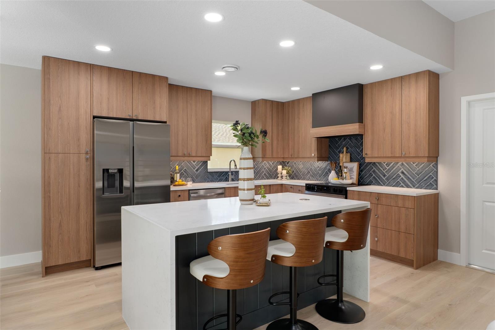 New construction with style, upgrades, and freedom—welcome to one of Inverness’s most unique opportunities at $303,000. Built by a woman-owned builder and loaded with thoughtful finishes, this move-in ready home stands out from the typical spec build with designer touches throughout and no deed restrictions, giving you room for your RV, boat, or storage building. Enjoy the added benefit of well and septic, helping keep monthly utility costs low, paired with solid construction for long-term peace of mind. Inside, the open-concept layout is bright and airy with vaulted ceilings, no carpet, and luxury vinyl plank flooring throughout. The showpiece kitchen features a quartz waterfall island, full tile backsplash with hidden outlets, sleek cabinetry, Frigidaire stainless appliances, upgraded vent hood, built-in microwave, under-cabinet lighting, and pop-up outlets for a clean modern look. The primary suite is a true retreat with tray ceilings and a spa-like bath offering dual sinks, heated lighted mirrors, and a step-free glide-in shower. You'll definitely enjoy the large walk in closet. Additional highlights include an interior laundry room, upgraded tile in both bathrooms, and covered rear lanai with very popular pocketing sliding doors. The back porch is ready to be screened in for your ideal outdoor living space. A 1-year builder warranty and quick close availability add even more appeal. Located near Inverness’s charming historic downtown, local shops, dining, parks, and beautiful lakes for boating and fishing, this home delivers modern design, smart efficiency, and the Florida lifestyle buyers are searching for.