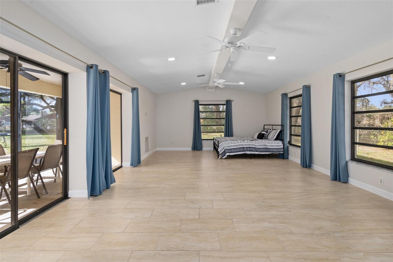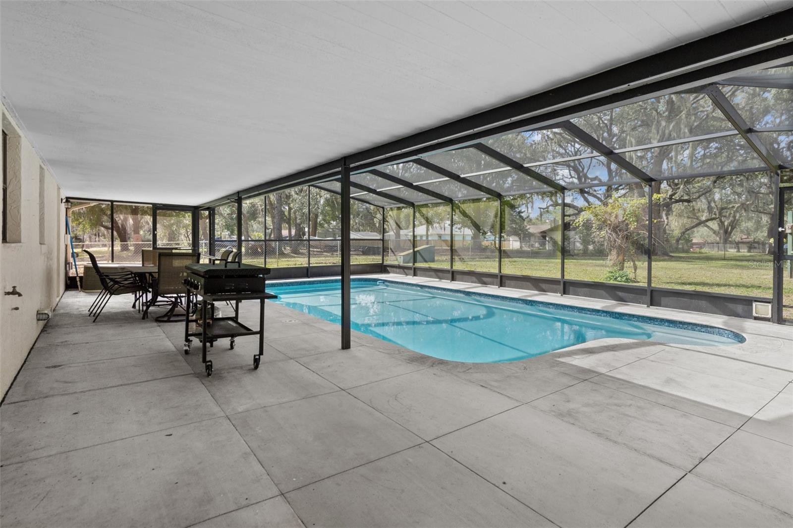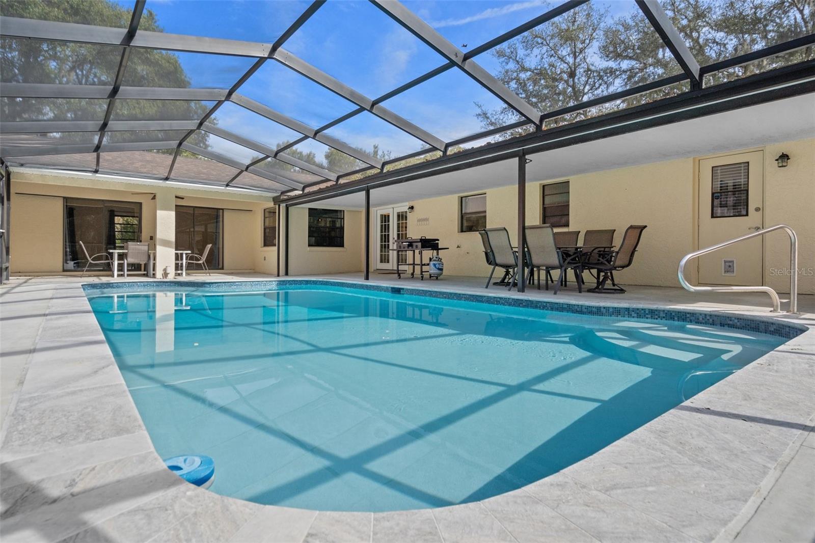 COMPLETELY UPDATED POOL HOME - WELL MAINTAINED- 3/2/2 - POSSIBLE IN-LAW SUITE OR 4TH BEDROOM. - NEW ROOF in 2023, The POOL was resurfaced in 2022 and is plumbed for SOLAR heating. The inside has been completely remodeled with beautiful, extra large plank tile throughout the entire home. FIREPLACE - OPEN FLOOR PLAN - NEW KITCHEN with ISLAND, GRANITE Countertops and New SS APPLIANCES - HUGE 20 X 27 FLEX SPACE WITH MANY OPTIONS including 4th bedroom or In-Law-SUITE. NO HOA - NO RESTRICTIONS - NO FLOOD ZONE - HUGE YARD (over 1/2 acre)- Plenty of parking for an RV, CAMPER, BOAT or other toys. This home is located in the Seven Lakes subdivision, on a cul-de-sac with UNDERGROUND UTILITIES and close to all the outdoor amenities imaginable such as several fun LAKES, PARKS, BIKE TRAILS and even a super short drive to Florida's beautiful BEACHES. This home has a COUNTRY FEEL including the CLEAN, FRESH AIR - It doesn't get any better than this. Make an appointment to see this terrific home, you won't be disappointed.