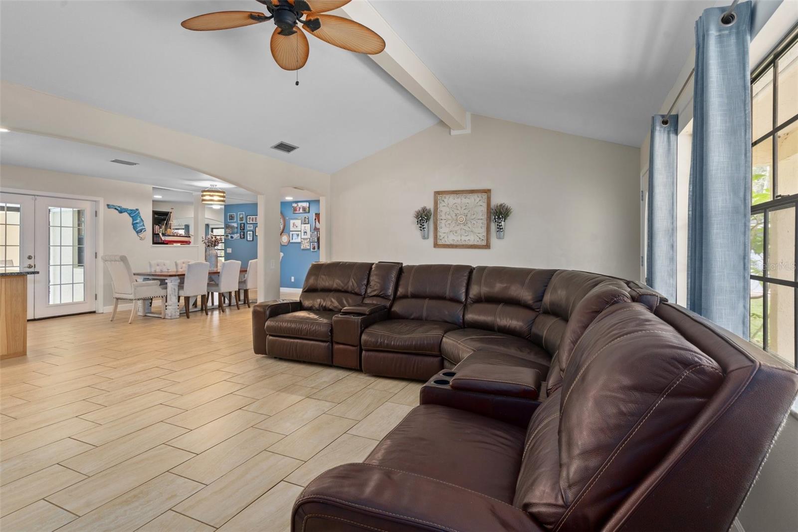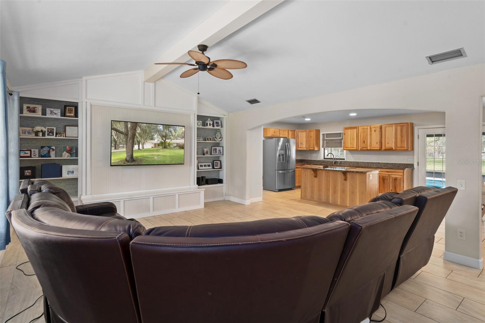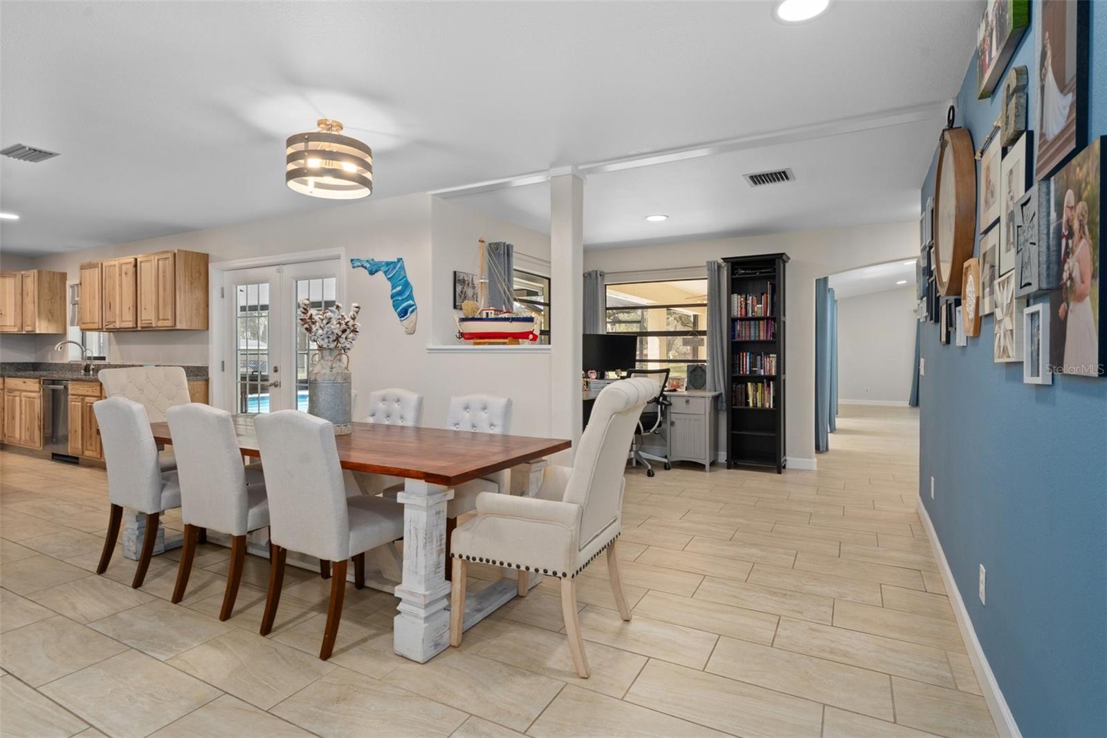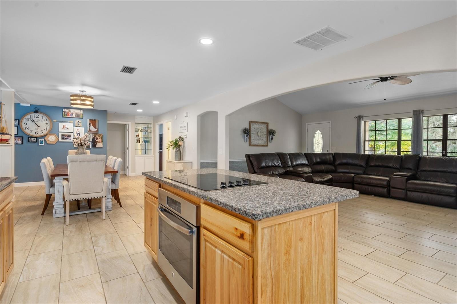 COMPLETELY UPDATED POOL HOME - WELL MAINTAINED- 3/2/2 - POSSIBLE IN-LAW SUITE OR 4TH BEDROOM. - NEW ROOF in 2023, The POOL was resurfaced in 2022 and is plumbed for SOLAR heating. The inside has been completely remodeled with beautiful, extra large plank tile throughout the entire home. FIREPLACE - OPEN FLOOR PLAN - NEW KITCHEN with ISLAND, GRANITE Countertops and New SS APPLIANCES - HUGE 20 X 27 FLEX SPACE WITH MANY OPTIONS including 4th bedroom or In-Law-SUITE. NO HOA - NO RESTRICTIONS - NO FLOOD ZONE - HUGE YARD (over 1/2 acre)- Plenty of parking for an RV, CAMPER, BOAT or other toys. This home is located in the Seven Lakes subdivision, on a cul-de-sac with UNDERGROUND UTILITIES and close to all the outdoor amenities imaginable such as several fun LAKES, PARKS, BIKE TRAILS and even a super short drive to Florida's beautiful BEACHES. This home has a COUNTRY FEEL including the CLEAN, FRESH AIR - It doesn't get any better than this. Make an appointment to see this terrific home, you won't be disappointed.