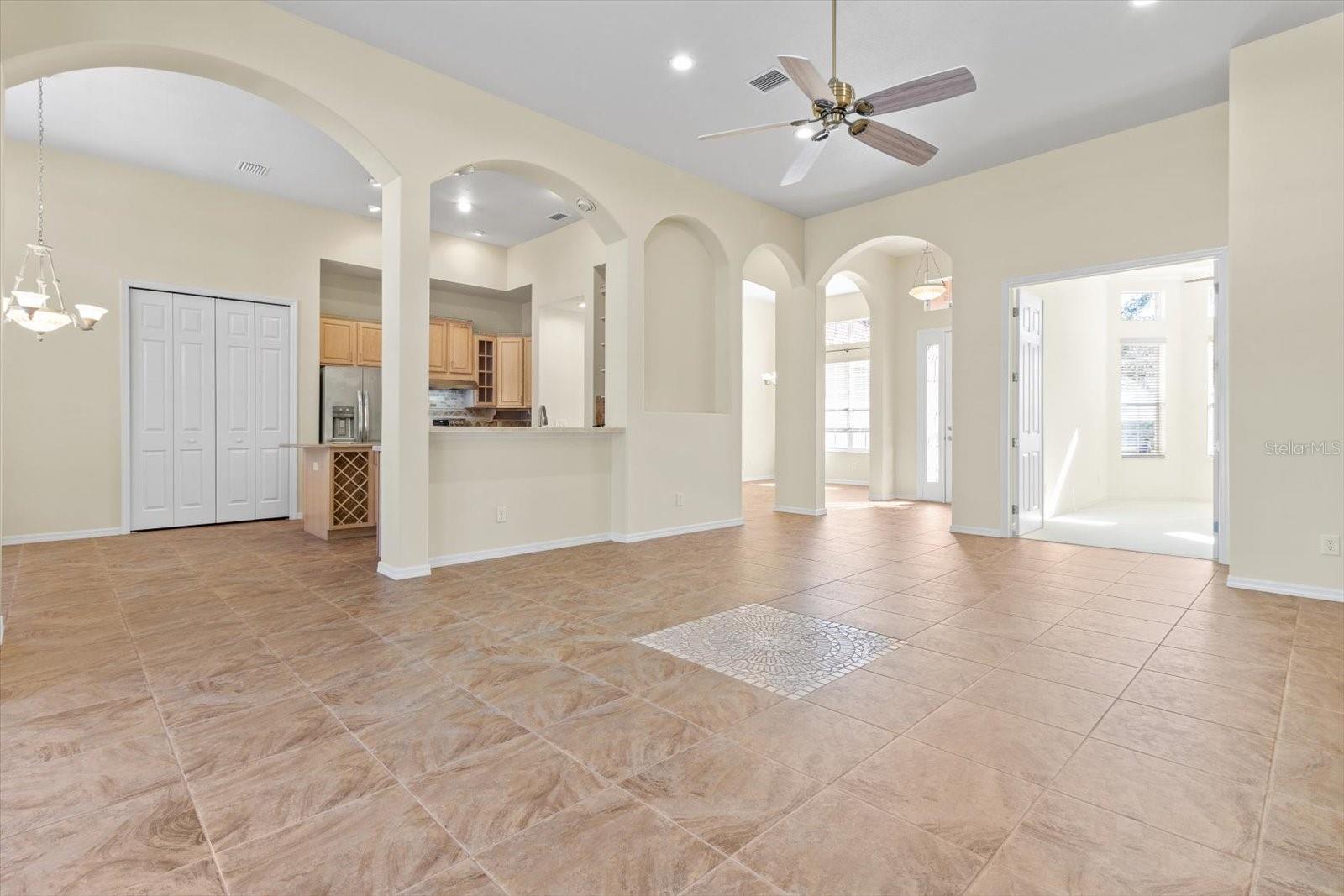 Step into luxury and elegance with this stunning home in the heart of serene Bellmont Hills. Be prepared to be enchanted by soaring 12-foot tall ceilings, 8-foot tall doors and an open-air ambiance that welcomes you the moment you walk through the door. Sunlight pours into every room, creating a warm and inviting atmosphere. The gourmet kitchen, thoughtfully designed around a grand island, seamlessly connects to the spacious great room, offering picturesque views of the pavered pool deck. This space is perfect for lively evenings entertaining friends or enjoying quiet weekends with family. Enjoy your favorite tunes by the pool, thanks to the Bluetooth speaker system that plays through patio ceiling speakers, or experience an immersive movie night surrounded by the ceiling speakers in both the den and the primary suite. The intelligent split floor plan ensures privacy for the primary suite, where you can relax in a luxurious garden tub or unwind in the gas-heated spa by the pool. Each bedroom features plush carpeting, adding a sense of comfort and tranquility to these private spaces. The sellers have spared no expense on custom upgrades and updates, including gas, electric, and water hookups for your future outdoor kitchen, new pool screening in 2024, an instant hot water heater in 2024, exterior paint in 2022, a cleaned and restored tile roof in 2022, re-sanded and sealed pool pavers in 2022, and sleek Frigidaire Gallery smudge-resistant stainless steel kitchen appliances installed in 2022. This meticulously maintained home combined with the countless amenities the Citrus Hills social membership has to offer makes this one a must see. Don't miss your chance to make it your own!
