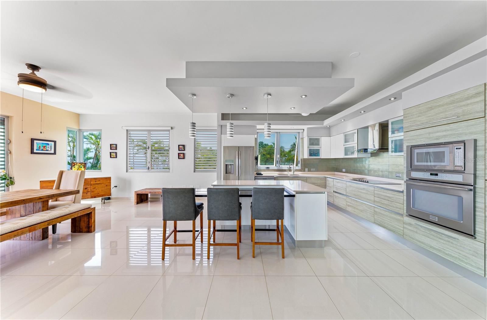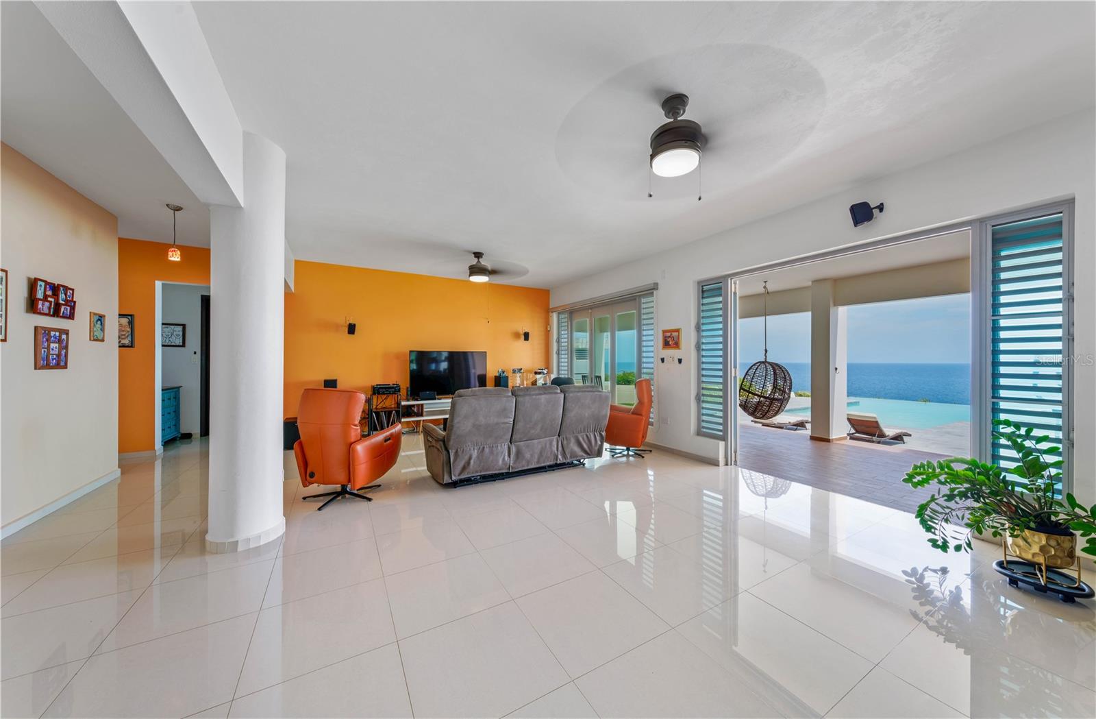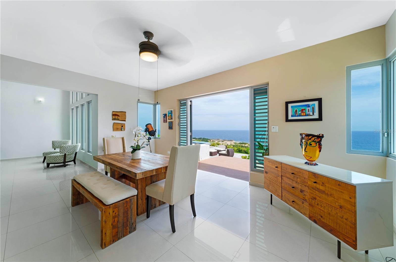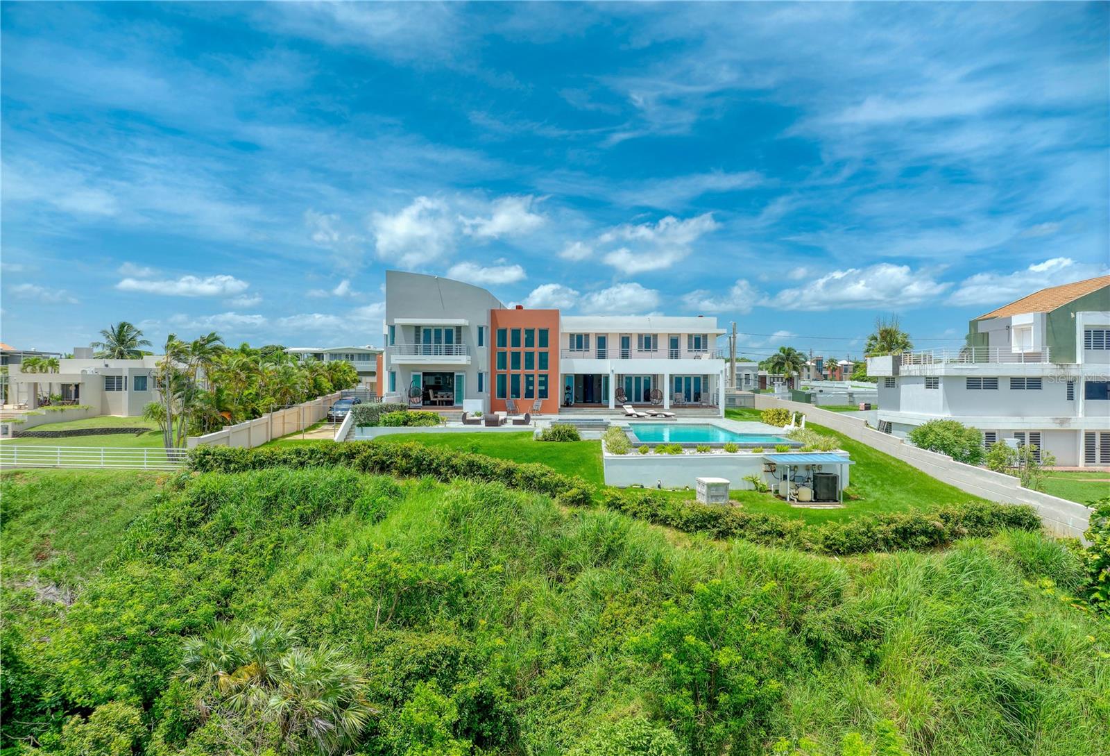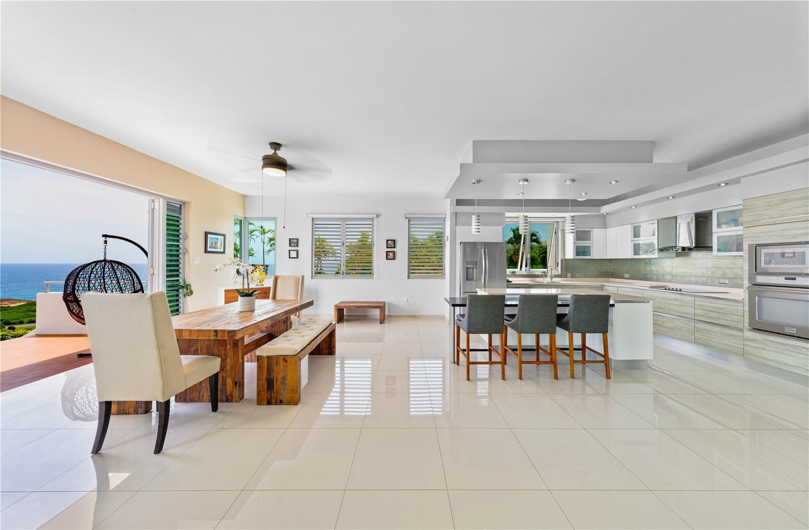 This oceanview gem offers a rare chance to own a cliff-front property in the highly sought-after area of Isabela, situated above the renowned Playa Middles, a favorite among surfers. Located within Estancias Del Mar, this residence boasts breathtaking water vistas that can be enjoyed from every vantage point, providing an unparalleled connection to the natural beauty of the Atlantic Ocean. Showcasing 4 bedrooms, including the spacious primary bedroom on the upper floor, this home affords approx. 5,022 interior square feet and 3,735 square feet of outdoor space. The ample first floor seamlessly integrates the kitchen, dining room, and living room, all featuring stunning seascape views that can be savored from the comfort of your own home. The open-concept layout creates an inviting atmosphere, perfect for entertaining and enjoying the coastal scenery, making it an ideal space for family gatherings and social events. The property features three full bathrooms and a powder room, full backup power generator, water cistern and a three-car garage/driveway that provides an additional 1,943 square feet. Stepping outside, the property is highlighted by a covered terrace that leads to a stunning infinity pool, creating a luxurious and serene oasis that serves as the perfect setting for alfresco dining, relaxation, and taking in the mesmerizing sunsets over the Atlantic. Located within 9 miles of Aguadilla International Airport, this prime location also offers proximity to Jobos Beach, just 4 miles away, providing endless opportunities for water sports and exploration. Whether you're looking to unwind on the beach, take a leisurely stroll along the shore, or enjoy the thrill of surfing, this property bestows the perfect blend of tranquility and adventure. Isabela is known for its stunning natural beauty and laid-back atmosphere. The coastal town offers a diverse array of attractions and activities that make it a popular destination for both locals and tourists. Isabela is renowned for its pristine beaches, Playa Jobos being one of the most famous, attracting surfers with its strong waves and visitors with its vibrant beach culture. Whether you’re looking to surf the waves, hike through the lush forest of Guajataca, explore historical sites, or simply relax on a beautiful beach, Isabela offers something for everyone. Experience luxury living in this exquisite oceanview property, where the beauty of the Atlantic Ocean meets unparalleled comfort and style. With its stunning views, spacious layout, and prime location, this property is the ultimate retreat for those seeking a serene and invigorating coastal lifestyle.