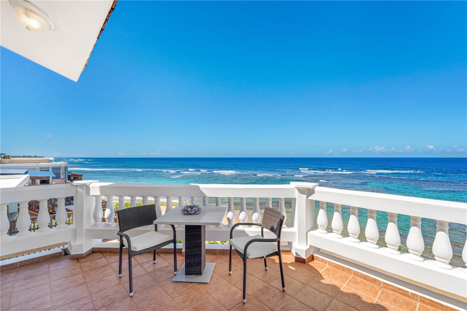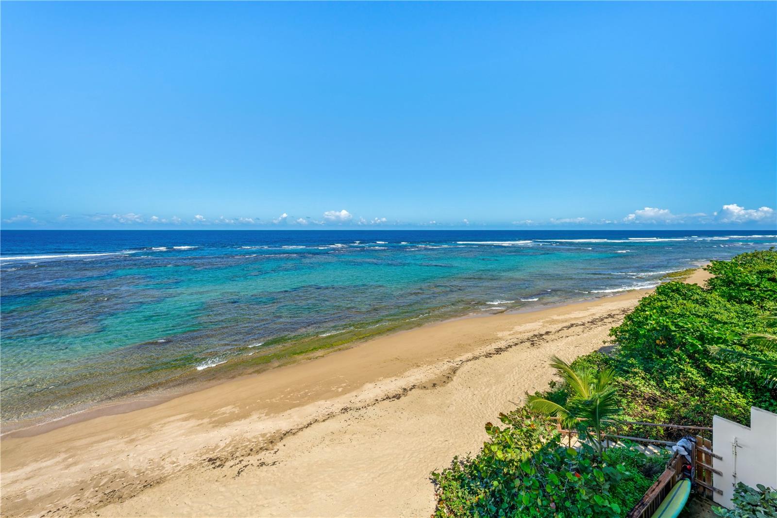 Set directly above the turquoise waters of Shacks Beach, this five-bedroom, three-and-a-half-bath residence embodies the essence of refined coastal living. Blending timeless Caribbean architecture with modern amenities, it offers sweeping ocean views and two expansive terraces that capture the rhythm of the waves. The main home features three bedrooms, two full bathrooms, and a powder room. The primary suite, located on the top floor, enjoys panoramic ocean vistas, a private balcony, a generous walk-in closet, and direct access to a beautifully appointed den lined with custom wood cabinetry with the sea as your backdrop. The main living floor offers two spacious guest bedrooms, a full bath, and a powder room. The open kitchen and great room flow naturally to the terraces, inviting indoor-outdoor living at its best. A private staircase leads directly down to the sand, creating an effortless connection to one of Puerto Rico’s most beautiful beaches. On the lower level, a fully independent guest apartment includes two comfortable bedrooms, a bathroom, a full kitchen, and living-dining area, ideal for visitors or private hosting. This level also houses the temperature-controlled wine cellar and access to the two-car garage. Sustainable living is seamlessly integrated with solar panels and Tesla Powerwall batteries, ensuring energy efficiency and peace of mind. Surrounded by lush tropical vegetation, the property maintains a serene sense of privacy and natural beauty that make Isabela’s coast so sought after. From sunrise coffee on the terrace to evenings framed by ocean breezes, this Shacks Beach residence captures the quiet luxury of life lived by the sea. Located along Puerto Rico’s northwest coast, Shacks Beach is known for its pristine reefs, golden sand, and year-round breezes. A haven for divers, kite-surfers, and beach lovers alike, the area retains a quiet exclusivity while being minutes from the restaurants, boutique hotels, and art-filled streets of Isabela and Aguadilla.