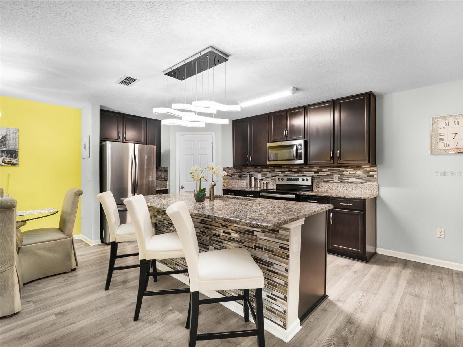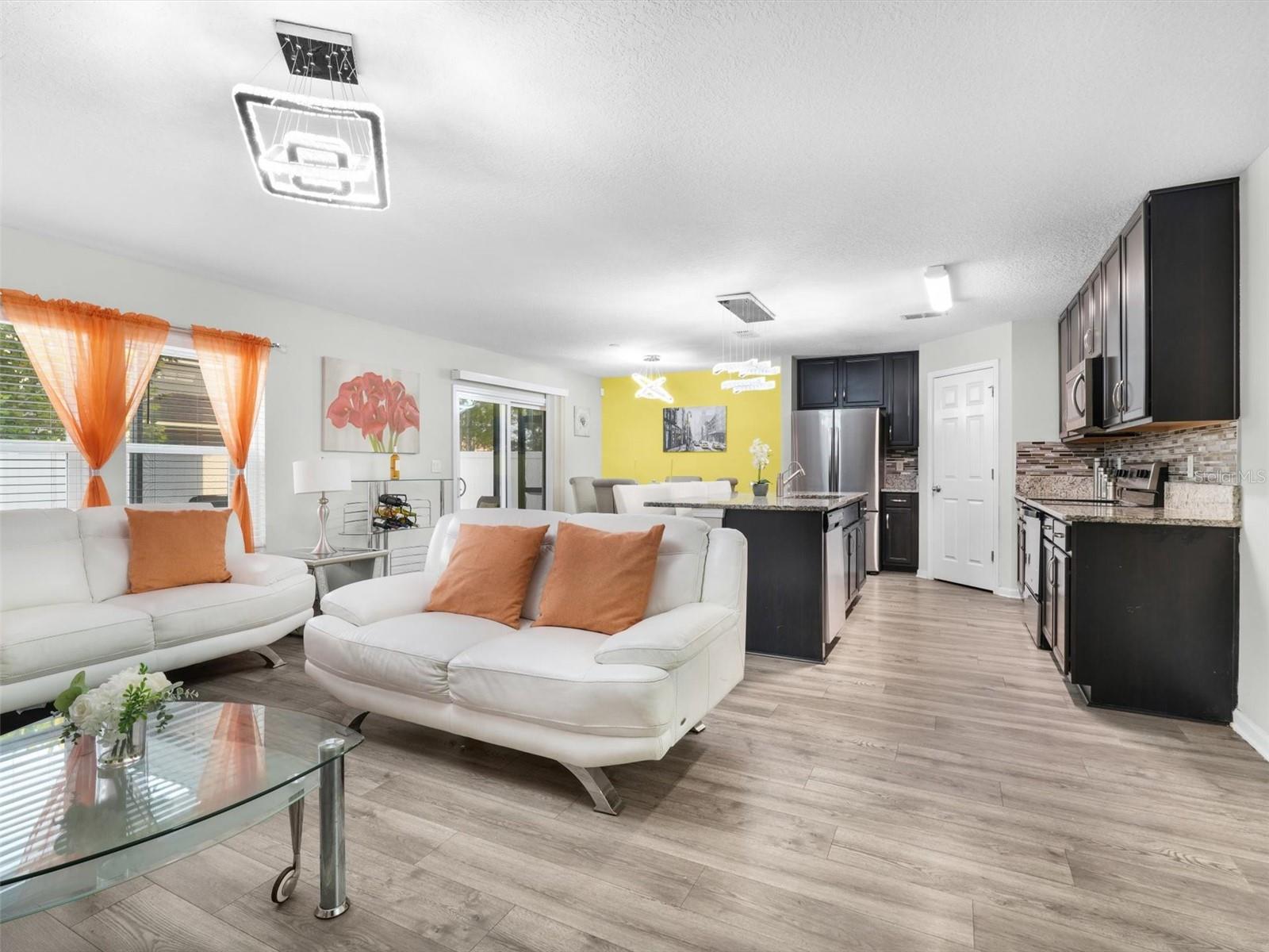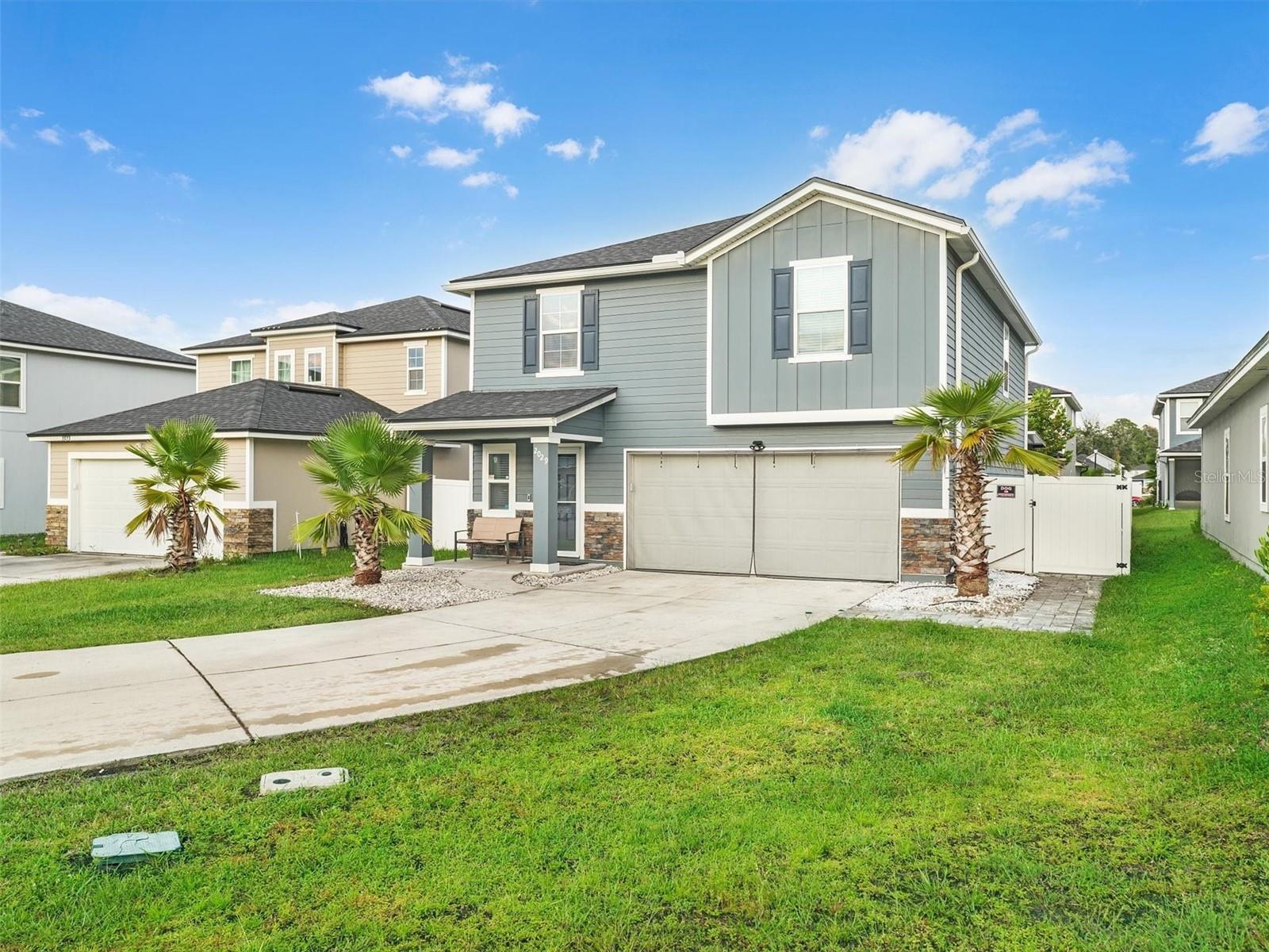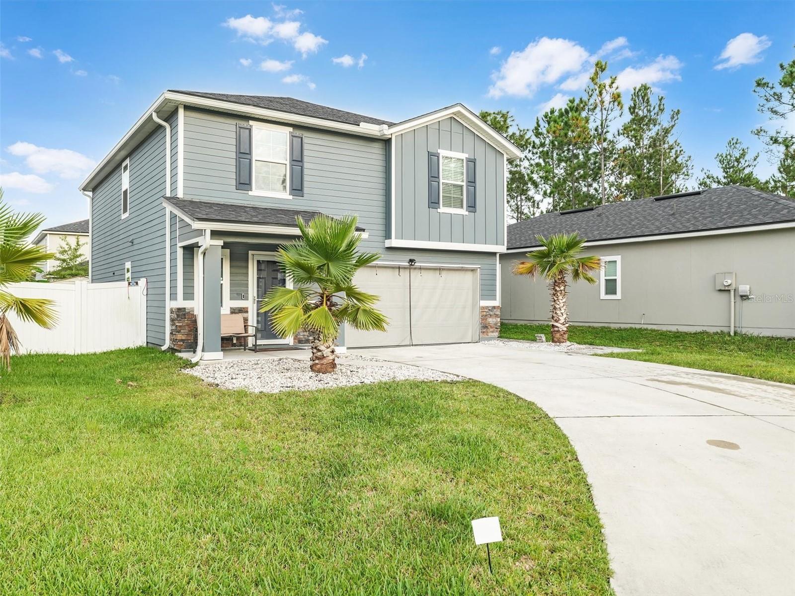 Completed construction in 2021, This "like new" home features Vinyl floors throughout, GRANITE Countertops in the kitchen, dark wood cabinets with crown molding, includes a large kitchen island over looking the dining room, living room and backyard. Upstairs features 4 bedrooms with 2 full bathrooms and the laundry room. The Primary bedroom offers a walk-in closet with another deep linen closet and a view over looking the backyard. Exterior features a multitude of UPGRADES including wood plank siding, generator hookup, COMPLETE paver patio which helps with less maintenance for yard work and plenty of room for pets. Also, including a covered patio, sprinkler system, fully fenced in yard, rain gutters that flow under ground for drainage, a community pool and there is also a BRAND NEW Publix just 5 min away and just 15 min from shopping!