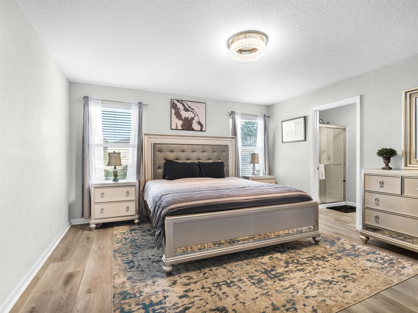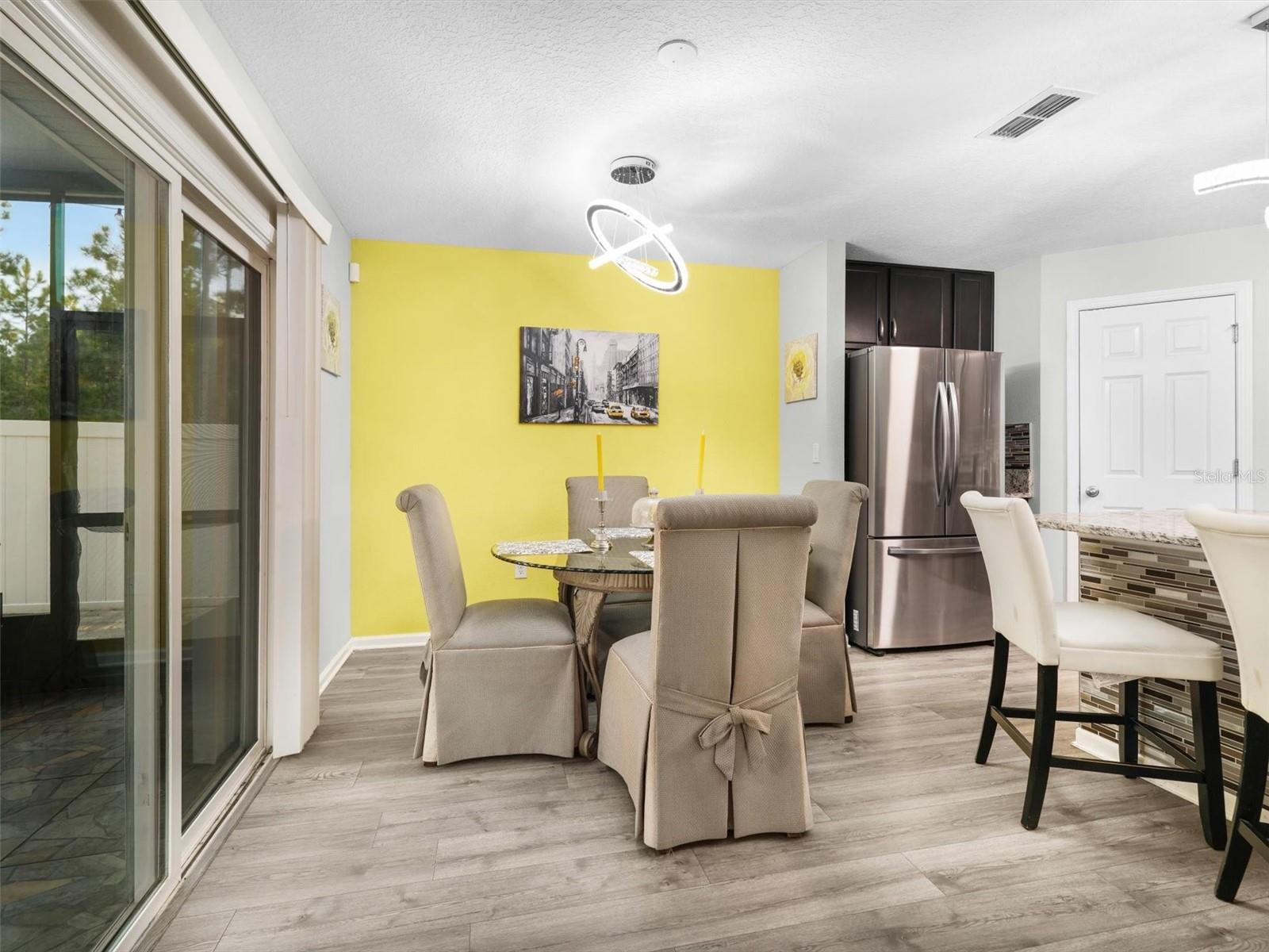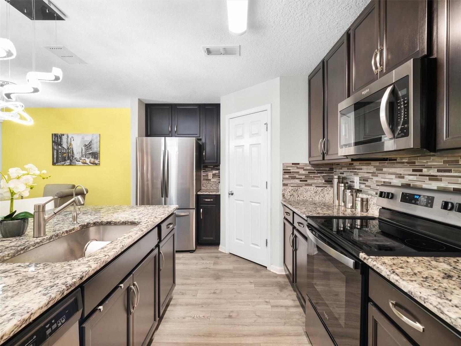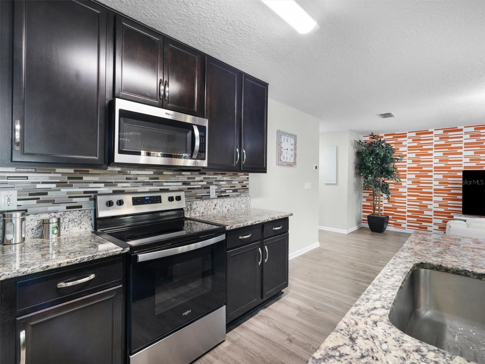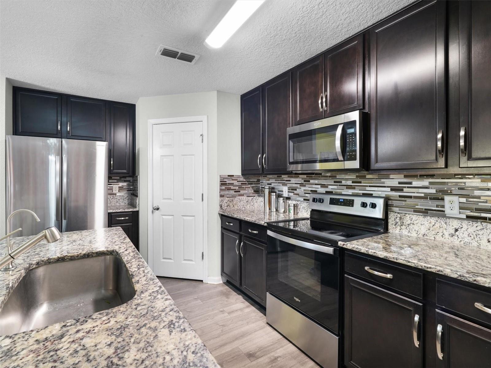 Completed construction in 2021, This "like new" home features Vinyl floors throughout, GRANITE Countertops in the kitchen, dark wood cabinets with crown molding, includes a large kitchen island over looking the dining room, living room and backyard. Upstairs features 4 bedrooms with 2 full bathrooms and the laundry room. The Primary bedroom offers a walk-in closet with another deep linen closet and a view over looking the backyard. Exterior features a multitude of UPGRADES including wood plank siding, generator hookup, COMPLETE paver patio which helps with less maintenance for yard work and plenty of room for pets. Also, including a covered patio, sprinkler system, fully fenced in yard, rain gutters that flow under ground for drainage, a community pool and there is also a BRAND NEW Publix just 5 min away and just 15 min from shopping!
