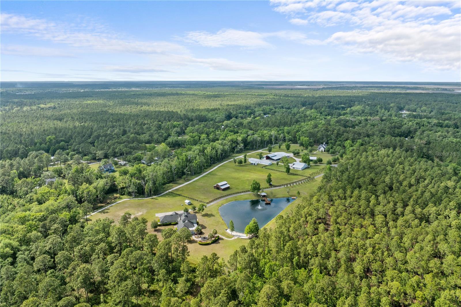 Experience the pinnacle of luxury living on this incredible property, nestled in the breathtaking landscapes of Jacksonville, Florida. Conveniently located just 10 minutes from Jacksonville International Airport, this property offers easy access for travel. This sanctuary features a parcel of 17.5 meticulously developed acres, offering a combined 9,683 square feet of living space. Note: the square footage and total rooms are spread through multiple homes described below. This 17.5-acre parcel is a lush haven of serenity, featuring first-class security with gated and video/audio monitored systems. The living spaces include a total of four lavishly appointed and decorated residences with modern amenities. Primary Residence: 5-bedrooms, 5.5-bathroom home, built in 2015, which exudes contemporary sophistication. It boasts extensive modern amenities, including bidets in every bathroom, an impressive array of chandelier lights and ceiling fans, and a state-of-the-art kitchen with double islands and sinks. This residence also features elaborate security systems, safe rooms, an air-conditioned garage, and an additional 1,300 square feet of finished living space with a full bathroom above the garage. There is also a backup generator with a transfer switch. Secondary Residence: This 3-bedroom, 2.5-bathroom home, renovated in 2021 while preserving its classic charm, was originally built in 1994. It offers a huge porch that wraps around three-quarters of the house, complete with a screened-in back porch. Guest Residences: The property includes 2 guest quarters: a one-bedroom apartment house and a two-bedroom apartment house, providing ample space for visitors or extended family, each equipped with washer and dryer units. Other Structures: The property also includes five garages with AC, bathrooms, and showers, offering potential for office use, recording studios, or conversion into apartments/homes. Behind the garages, there is space for a vegetable or fruit garden, or even a fish farm. Two additional large storage buildings offer versatility, with one potentially being used as a barn or small plane hangar. A picturesque lake graces the sanctuary, featuring a tranquil beach area and a charming locked and monitored gazebo. Enjoy fishing from the dock extending over the glistening waters! Special Event and Recreational Facilities: Enhancing the property's versatility and convenience, there are several additional buildings and storage structures which can be used for special events or corporate meetings. The expansive covered pavilion, complete with a fully equipped kitchen, refrigerator, and a separate enclosed room with showers and a bathroom, provides an ideal space. It also has parking, storage, and hookups for a full-size RV. Optional: this parcel can be subdivided into 1-acre lots with zoning allowing for two homes per acre. Sports and Recreation: For sports enthusiasts, the property offers space for a Sportsplex, equestrian activities, and ample accommodation for soccer, basketball, baseball, football, and even golf. Explore the walking and jogging paths that highlight the natural beauty of the surroundings. There is also a self-contained gym, equipped with weights, bikes, rowing machines, and bathrooms with showers, inviting you to embark on a fitness journey. Discover the endless possibilities and unparalleled luxury that Crystal Sands offers. Properties of this caliber are highly sought after and won’t remain on the market for long!