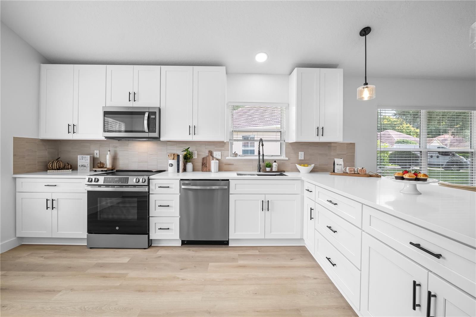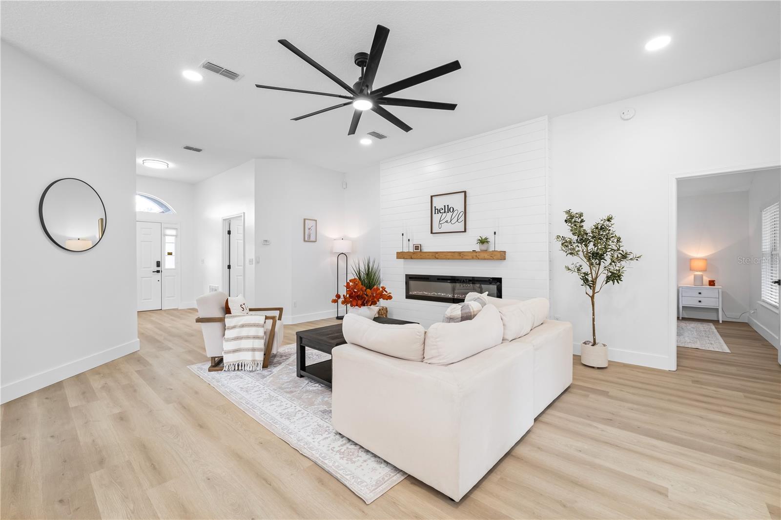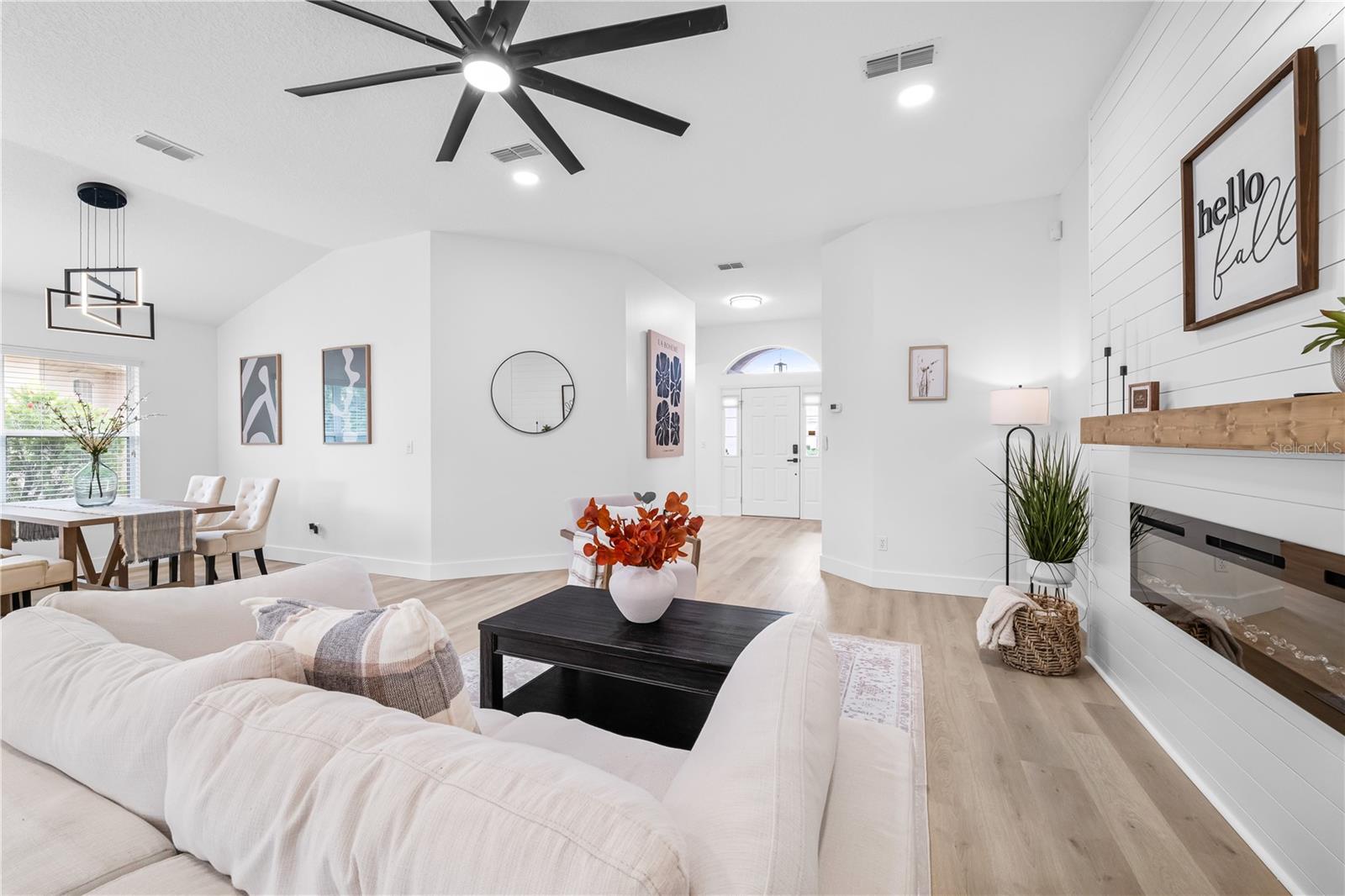 This stunning single family home is located just minutes away from the bustling San Marco square, offering the perfect blend of convenience and luxury. Experience the charm of Mediterranean style living in the highly sought after Villages of San Jose. This fully remodeled home boasts modern finishes and thoughtful design that seamlessly combines style with functionality. From top of the line appliances and quartz countertops. The gorgeous luxury vinyl flooring adds a touch of elegance, while the built-in electric fireplace is the perfect cozy addition. And that's not all - the community itself offers top of the line amenities, including a pool, pickleball courts, playground, and a serene lake surrounded by a sidewalk. Plus, with a 24 hour guard gated entry, you can enjoy peace of mind and security in this community. Don't wait any longer, come see this beautiful home for yourself today!