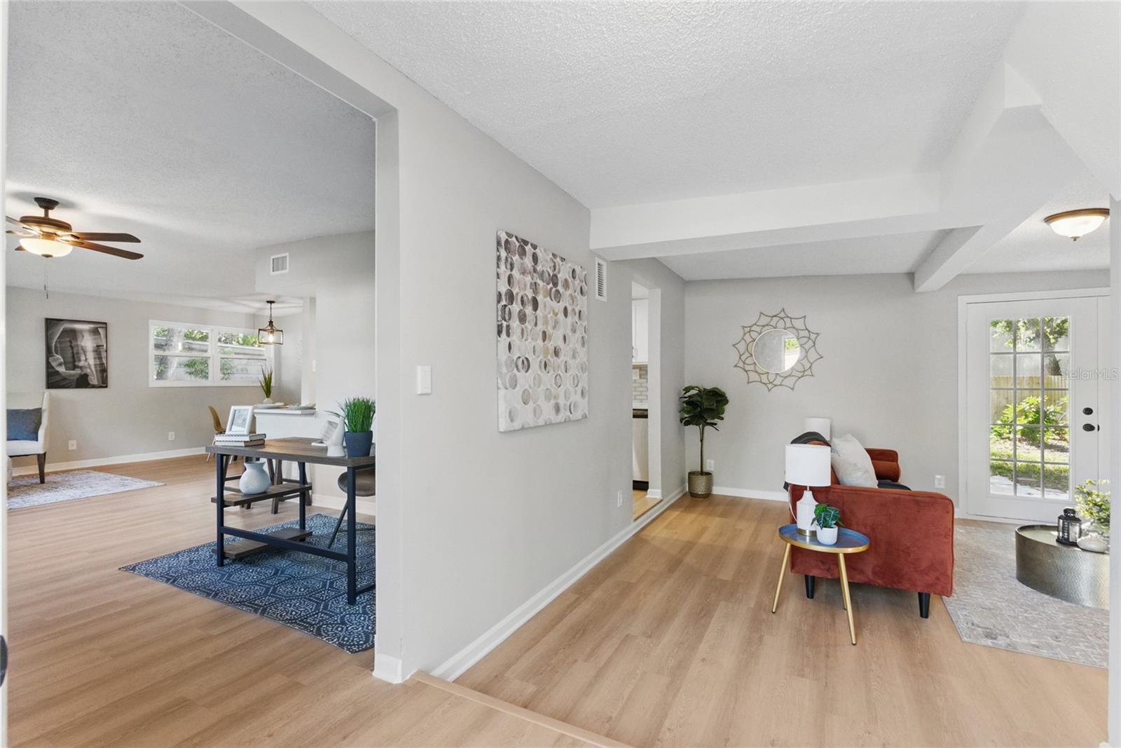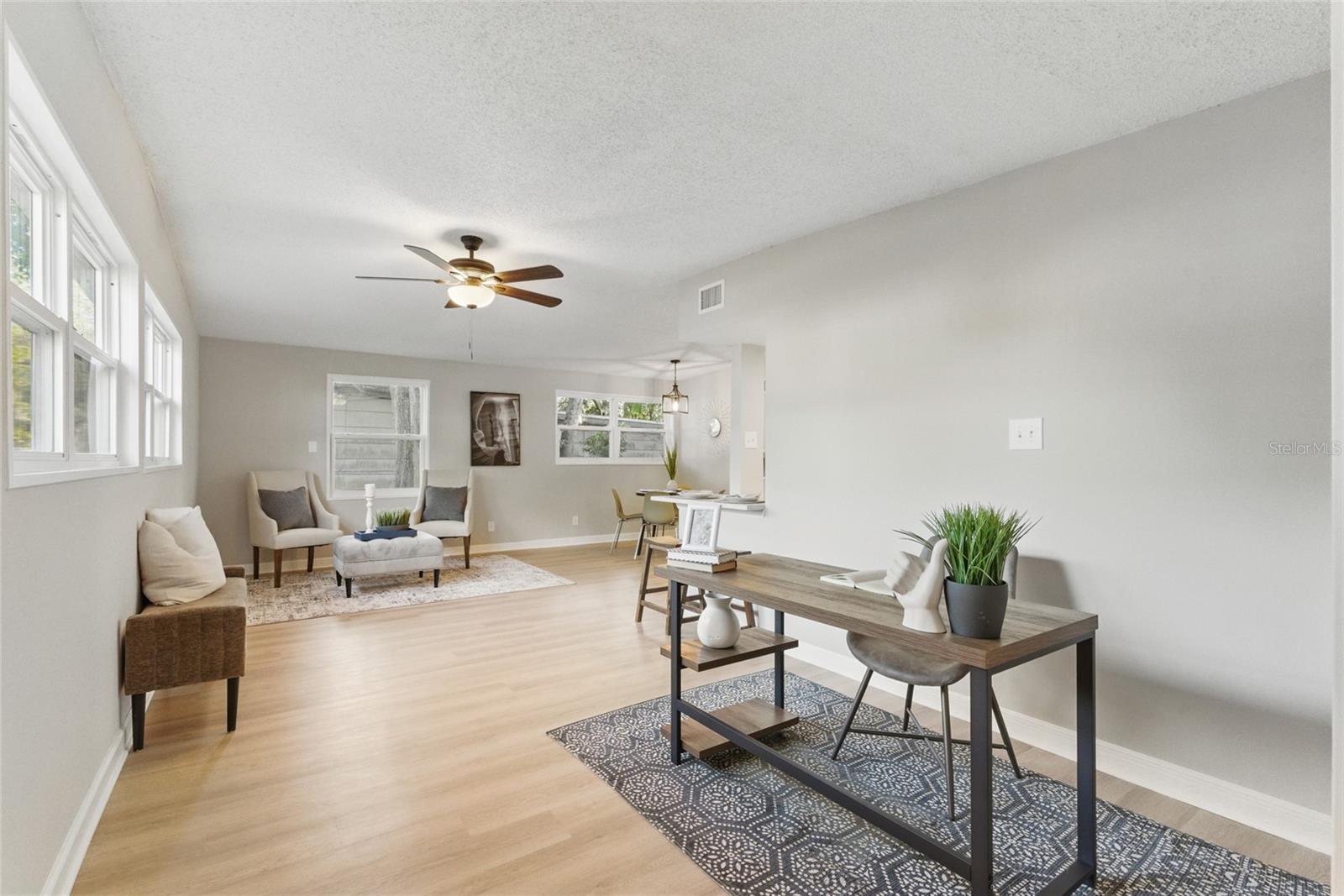 Tastefully Renovated Concrete Block Home in Arlington Hills! This 3 bed, 2 bath residence offers quality craftsmanship and modern upgrades throughout. Step into a welcoming entry with a dedicated office space—perfect for working from home. The spacious family room features a cozy fireplace and flows seamlessly into a custom kitchen complete with solid wood cabinetry, quartz countertops, and stainless steel appliances. Enjoy peace of mind with a brand new roof, new AC, new windows, and a new water heater. Both bathrooms have been tastefully updated for a clean, modern look. Outside, relax or entertain on the open patio overlooking a large, fully fenced backyard with brand new wood fencing. Move-in ready with timeless finishes and a prime location!
