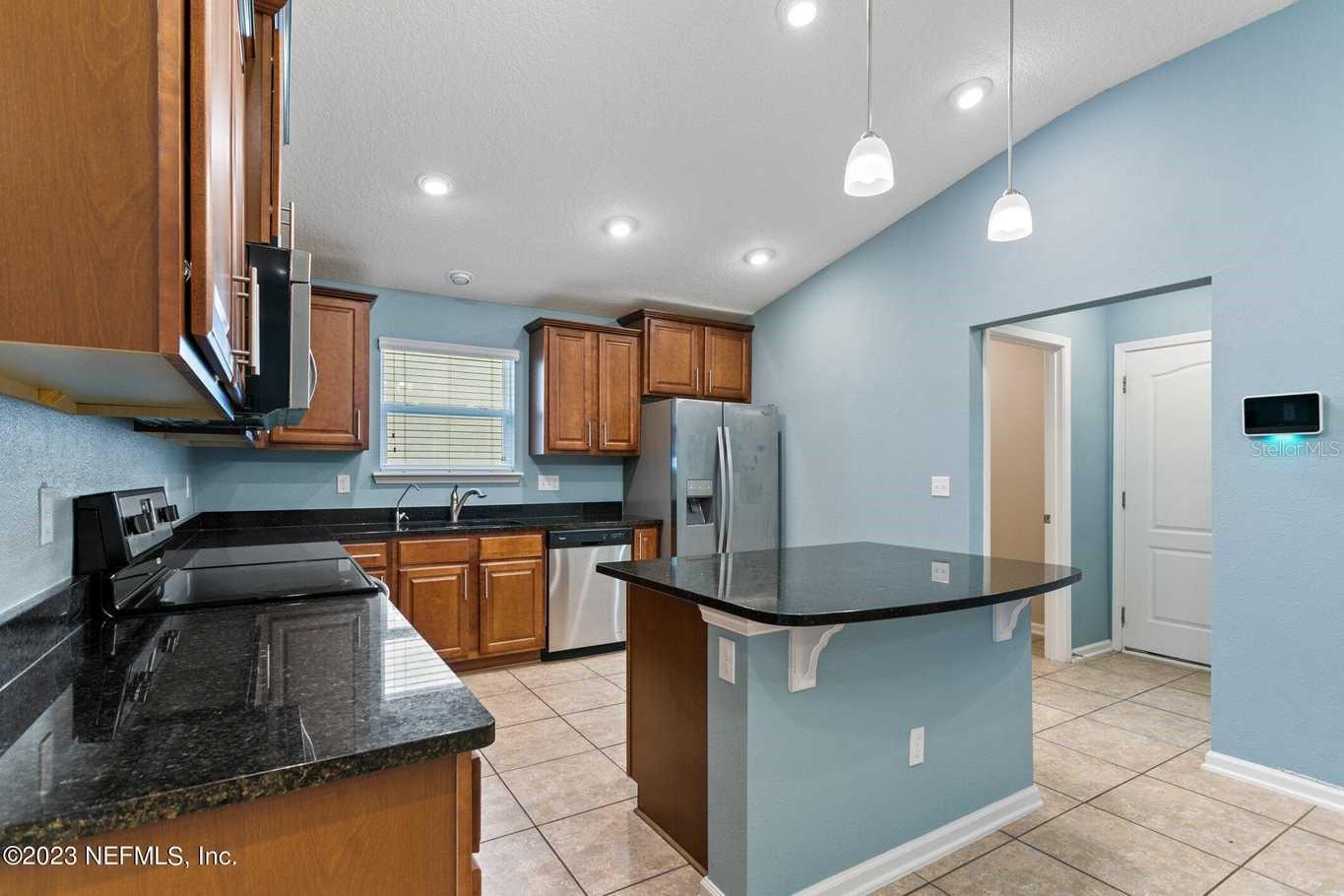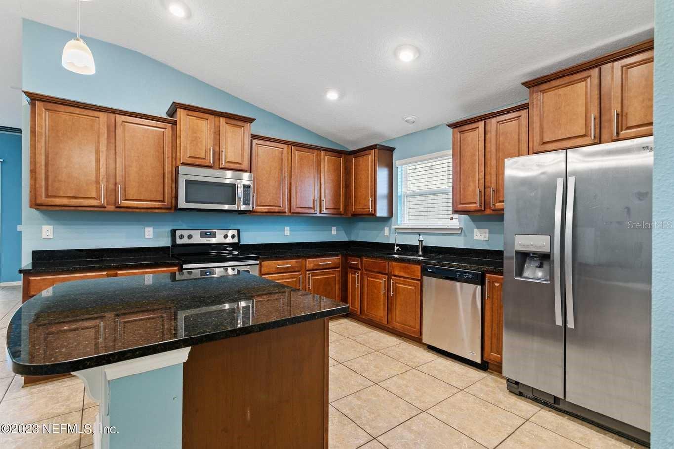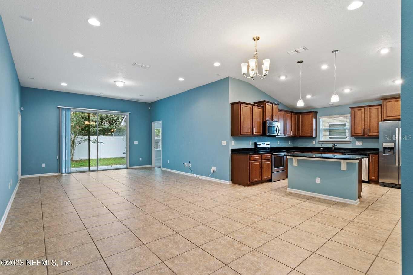 This meticulously maintained 2015-built home offers the sought-after convenience of two master suites on the ground floor. The spacious 4-bedroom, 3-bathroom design features a NEWER ROOF (2024), an open-concept living area, split bedrooms for added privacy, and a generously sized kitchen with a center island and walk-in pantry. Enjoy the ease of indoor laundry and stylish tile flooring throughout the main living spaces, with comfortable carpeting in the bedrooms. The property boasts a fully fenced backyard with vinyl fencing and an attractive full stucco exterior accented with stone details. Residents enjoy high-end amenities including 11 pocket parks, two pools (one with splash park), a recreation center for socializing, tennis courts, basketball courts, sand volleyball courts, a tot lot, and picnic areas. With its mature landscaping and ideal location, Yellow Bluff Landing is the perfect place to call home. So many recreational features mean you never have to leave home to enjoy the fun!