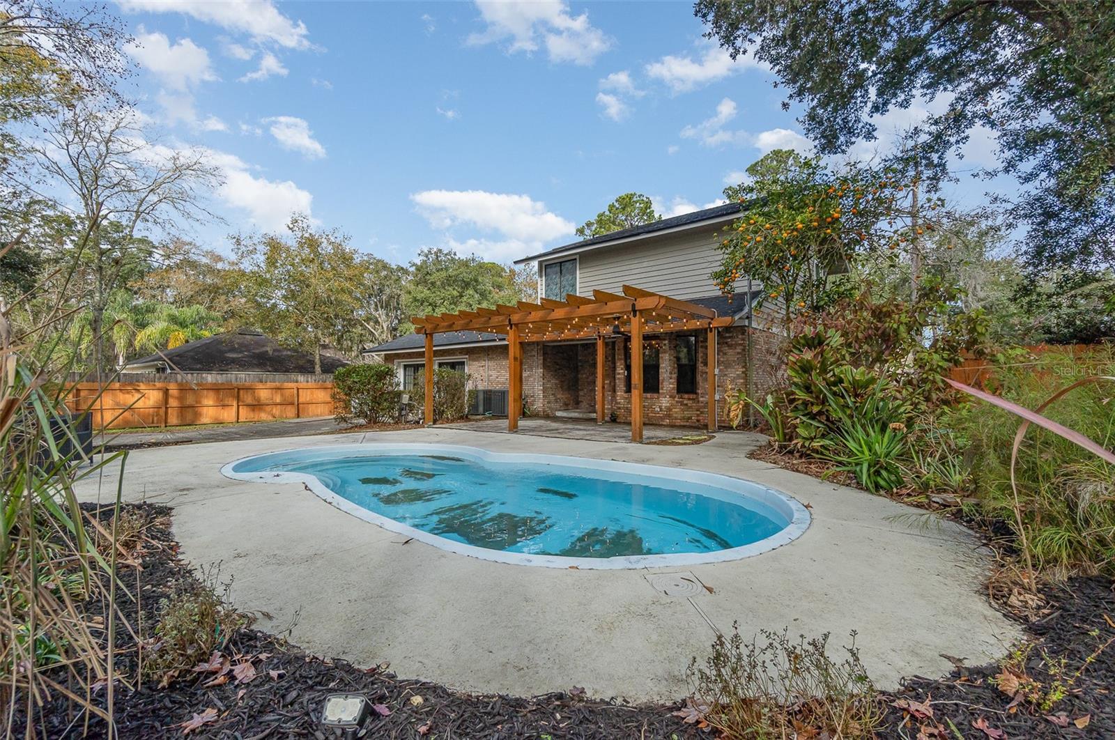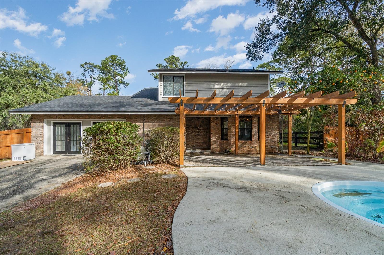 Welcome to this charming two-story home that has been lovingly renovated and is ready to offer modern comforts with plenty of space for family and entertaining. The second floor features three spacious bedrooms and two full baths, each beautifully remodeled with stylish finishes and attention to detail. On the main floor, you'll find a cozy living room complete with a wood-burning fireplace and a wet bar—ideal for entertaining guests or enjoying a quiet evening at home. The home has been refreshed with new paint, updated light fixtures, new ceiling fans, and brand-new flooring throughout, creating a warm, inviting atmosphere. The garage has been thoughtfully converted into livable space, offering flexibility for a home office, gym, or additional living area. $15000. concession towards drainfield repair and /or other repairs or renovations. The home sits on a large, fully fenced lot, with a new fence providing added privacy and security. Outside, you'll find a pool that is ready to be resurfaced, offering endless potential for your personal outdoor oasis. For those with an RV or additional vehicles, the property features an RV parking pad for added convenience. Both air conditioners are only two years old, ensuring comfort year-round. The roof was redone in 2020. New glass in the windows and a charming gazebo complete the picture of this thoughtfully updated home. With so many upgrades, including remodeled bathrooms and more, this home offers a perfect blend of modern convenience and classic charm. It’s an ideal space to create lasting memories and enjoy a comfortable lifestyle.