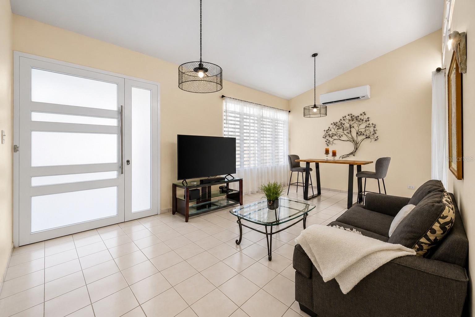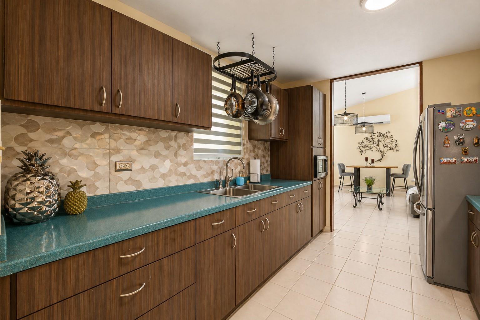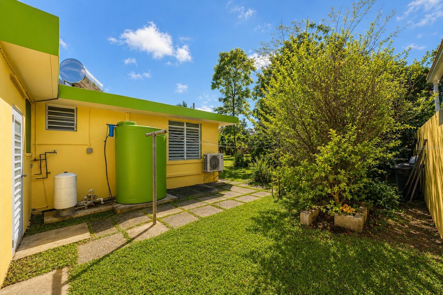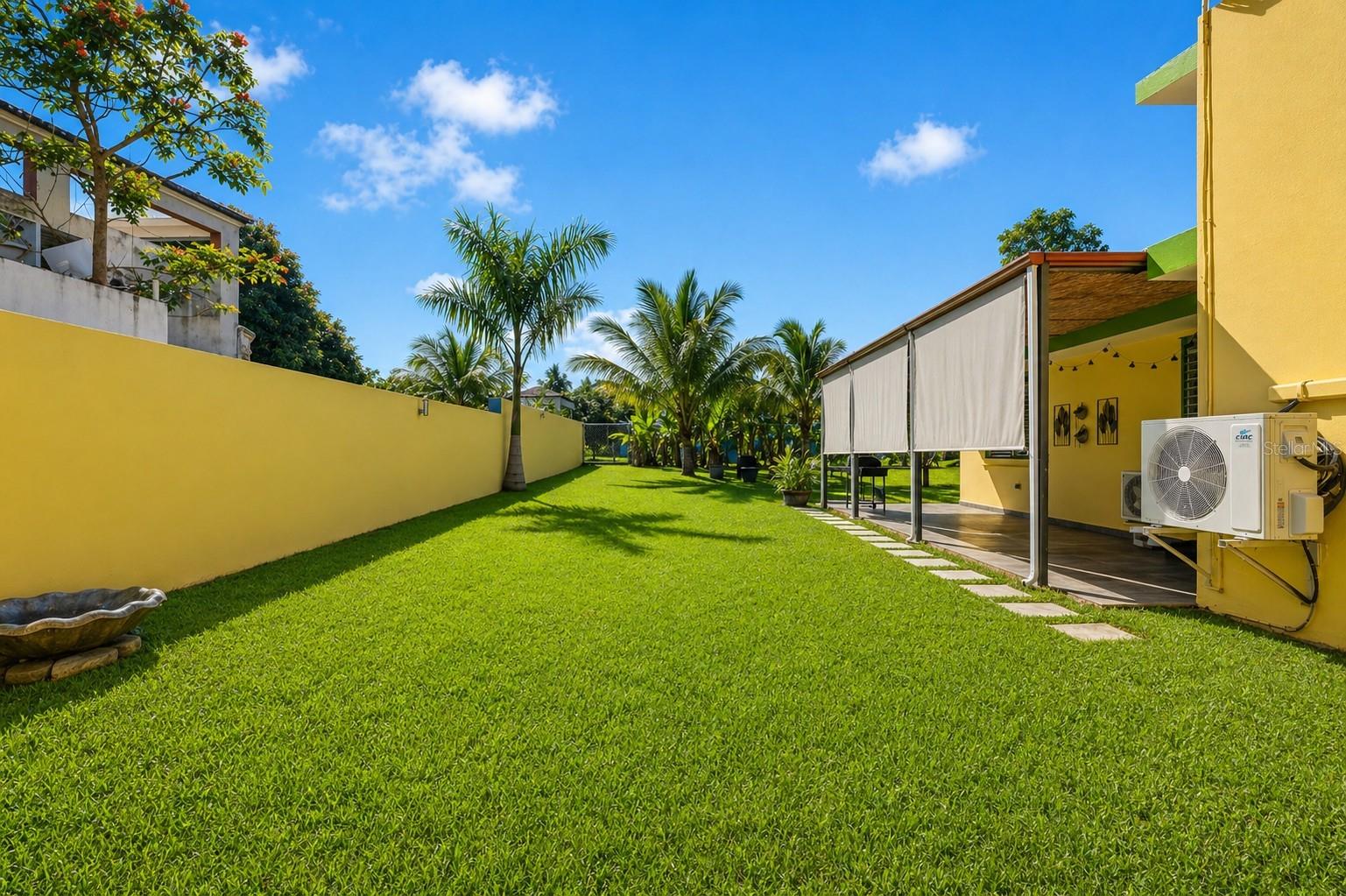 Exclusive Residence in Estancias de Juncos – Completely Remodeled. Located in a private, gated community, this property combines modern design, high ceilings in the living and dining rooms, and excellent natural light. Minutes from Amgen, Medtronic, and Becton Dickinson, it offers a strategic location. It has been completely remodeled, including new windows, updated exterior and interior doors, and security doors/windows, enhancing both the aesthetics and security of the home. It features a mahogany kitchen, a laundry area, and optimized spaces. The spacious master suite and secondary bedrooms include split-unit air conditioning in all areas, modern closets, and completely renovated bathrooms. Enjoy a cozy terrace and a spectacular, large, grassy yard with fruit trees, fully fenced, with two concrete sides providing privacy and tranquility. This residence is distinguished by being a green home, equipped with a solar panel system with a Tesla battery, a 600-gallon cistern, a solar water heater, and a gas system for the stove, dryer, and water heater, offering energy efficiency and resilience. The community offers indoor sports courts and a passive park, ideal for family enjoyment in a safe and exclusive environment. It includes a double carport with a garage door, a fully equipped kitchen, and air conditioning throughout. A unique opportunity that combines location, security, amenities, and energy self-sufficiency. Appliances Included: Refrigerator, Stove, Washing Machine, Solar Water Heater, 4 Split Unit Air Conditioners, All Light Fixtures, Storm Shutters, 600-Gallon Cistern, Gas Water Heater.