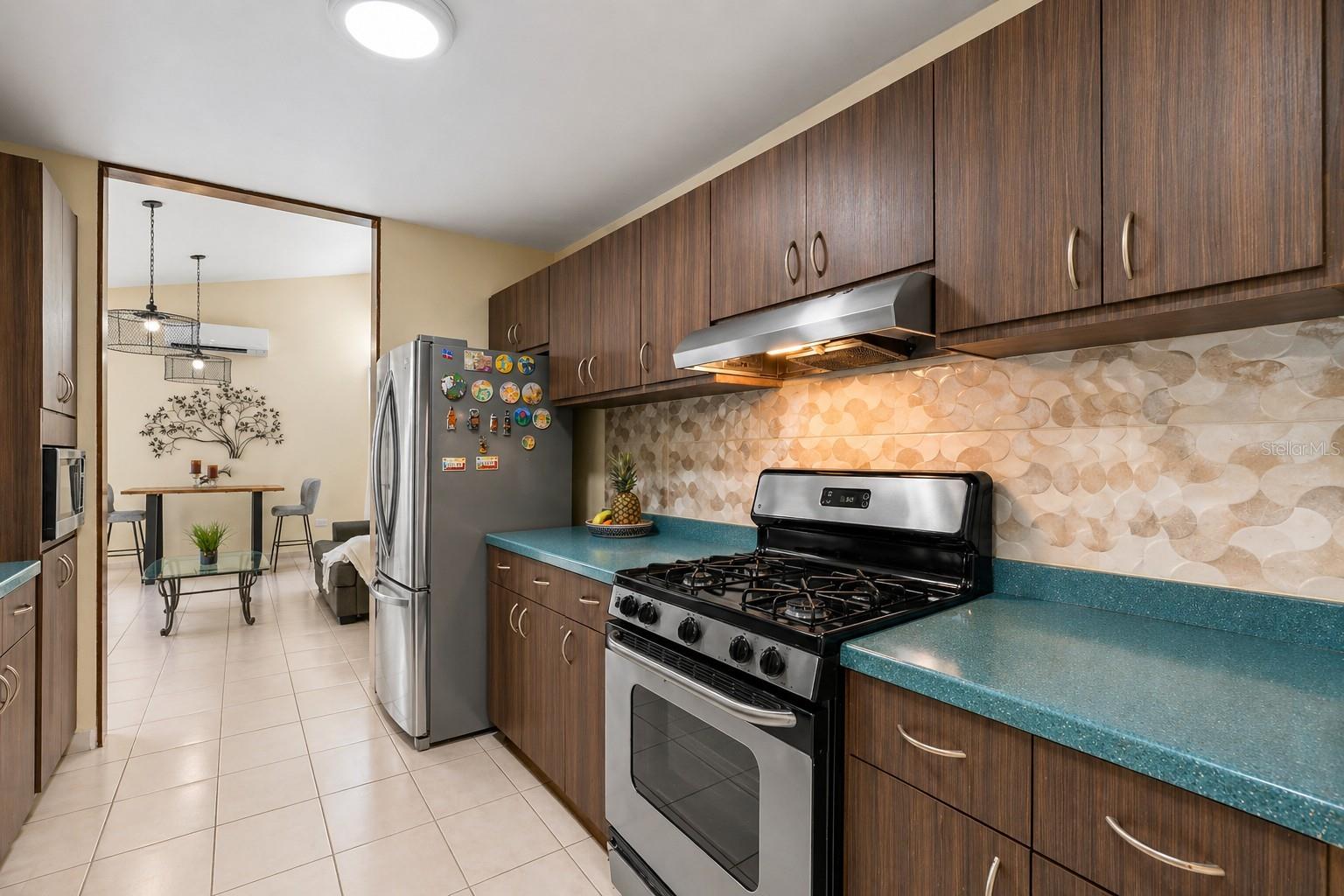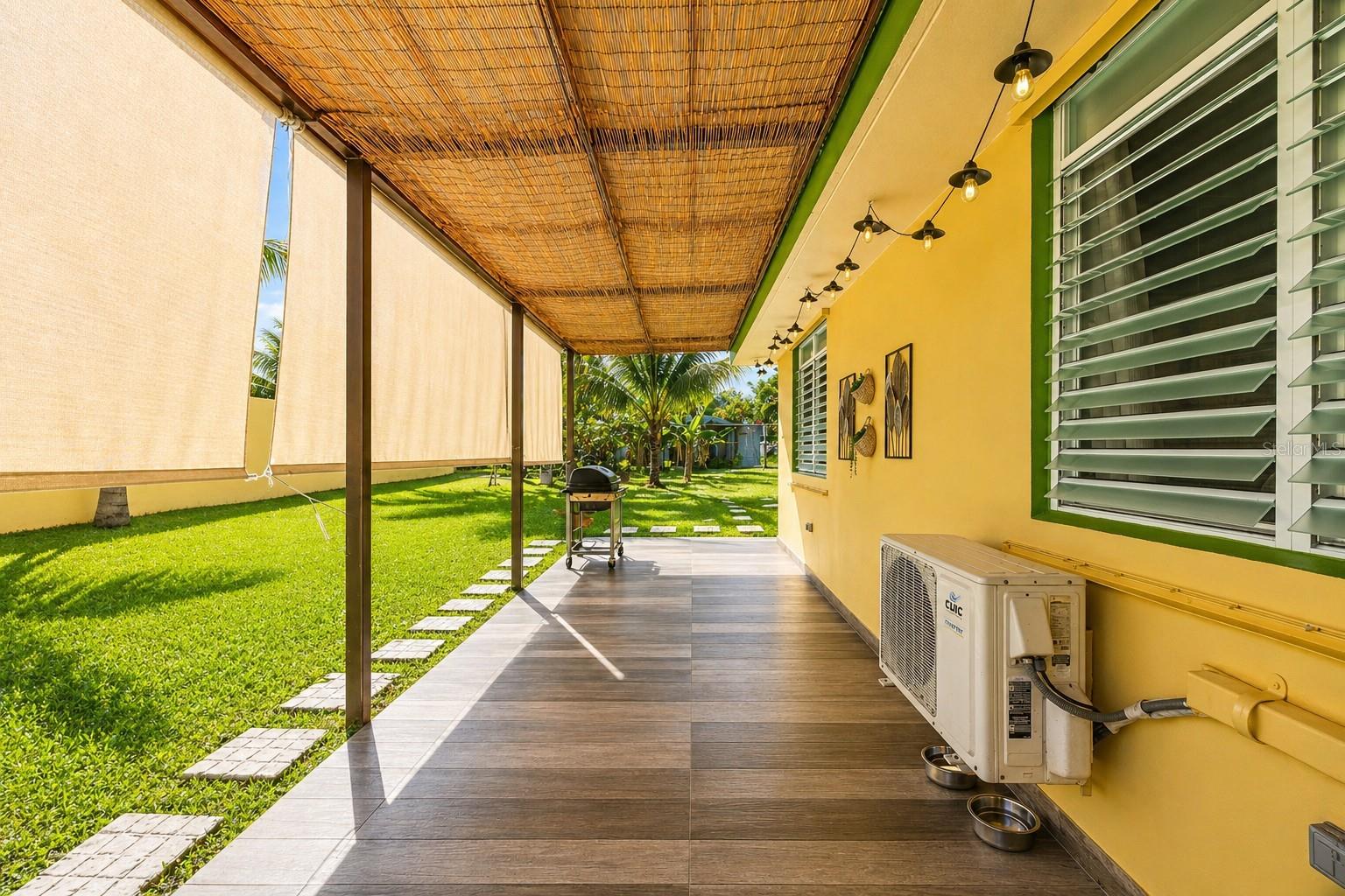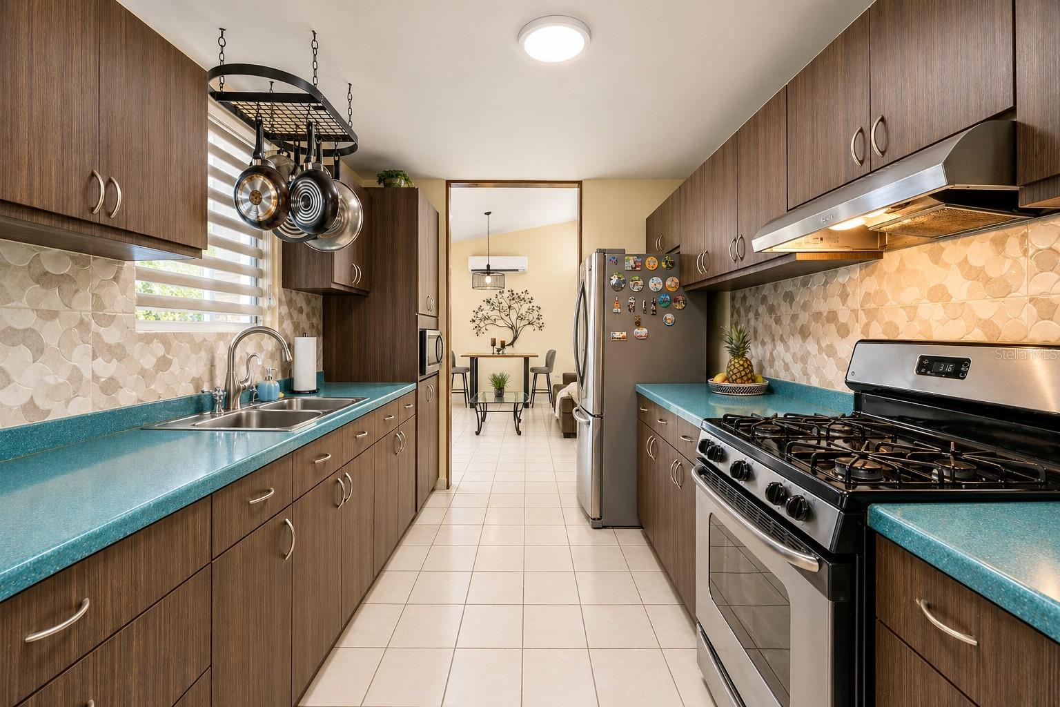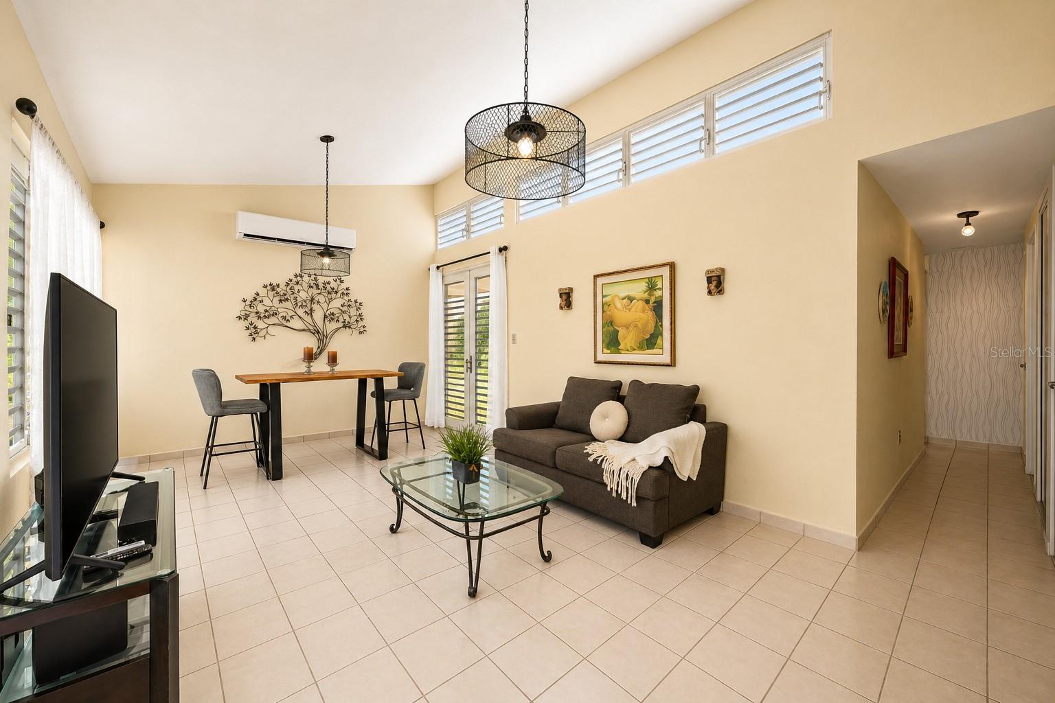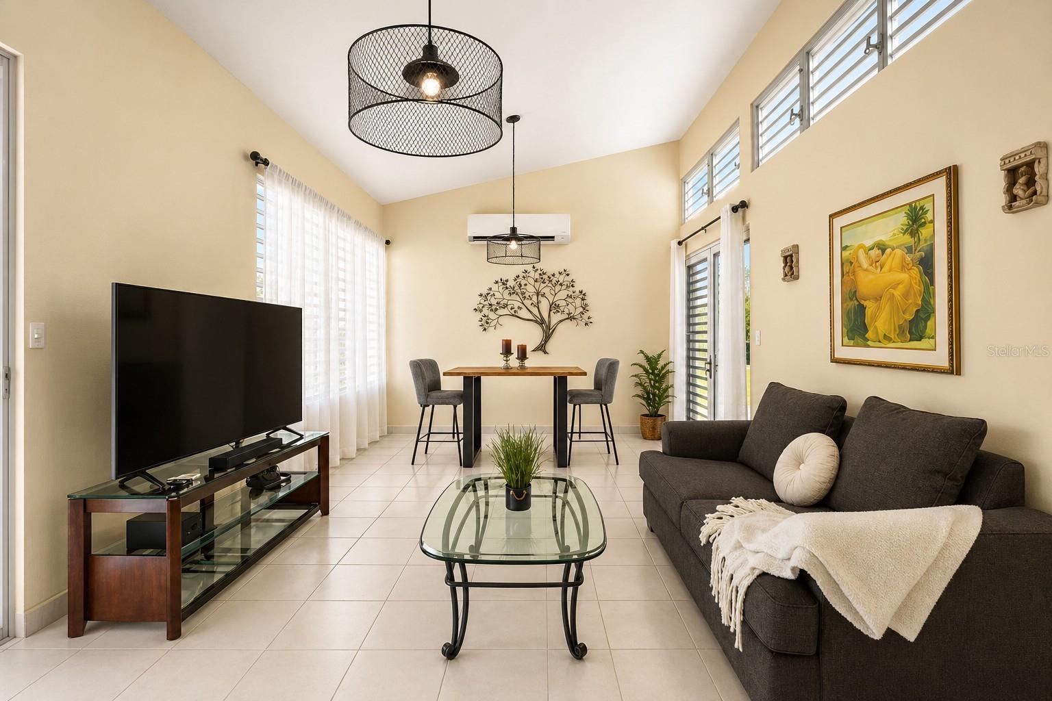 Exclusive Residence in Estancias de Juncos – Completely Remodeled. Located in a private, gated community, this property combines modern design, high ceilings in the living and dining rooms, and excellent natural light. Minutes from Amgen, Medtronic, and Becton Dickinson, it offers a strategic location. It has been completely remodeled, including new windows, updated exterior and interior doors, and security doors/windows, enhancing both the aesthetics and security of the home. It features a mahogany kitchen, a laundry area, and optimized spaces. The spacious master suite and secondary bedrooms include split-unit air conditioning in all areas, modern closets, and completely renovated bathrooms. Enjoy a cozy terrace and a spectacular, large, grassy yard with fruit trees, fully fenced, with two concrete sides providing privacy and tranquility. This residence is distinguished by being a green home, equipped with a solar panel system with a Tesla battery, a 600-gallon cistern, a solar water heater, and a gas system for the stove, dryer, and water heater, offering energy efficiency and resilience. The community offers indoor sports courts and a passive park, ideal for family enjoyment in a safe and exclusive environment. It includes a double carport with a garage door, a fully equipped kitchen, and air conditioning throughout. A unique opportunity that combines location, security, amenities, and energy self-sufficiency. Appliances Included: Refrigerator, Stove, Washing Machine, Solar Water Heater, 4 Split Unit Air Conditioners, All Light Fixtures, Storm Shutters, 600-Gallon Cistern, Gas Water Heater.