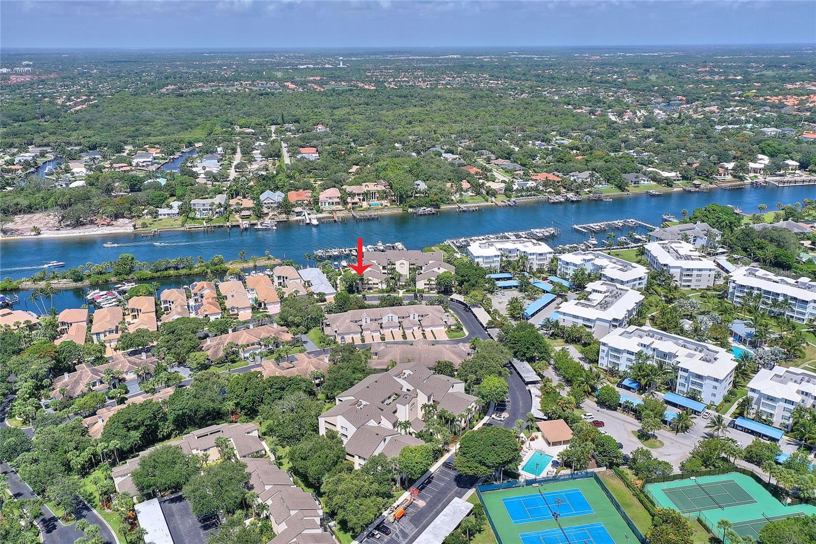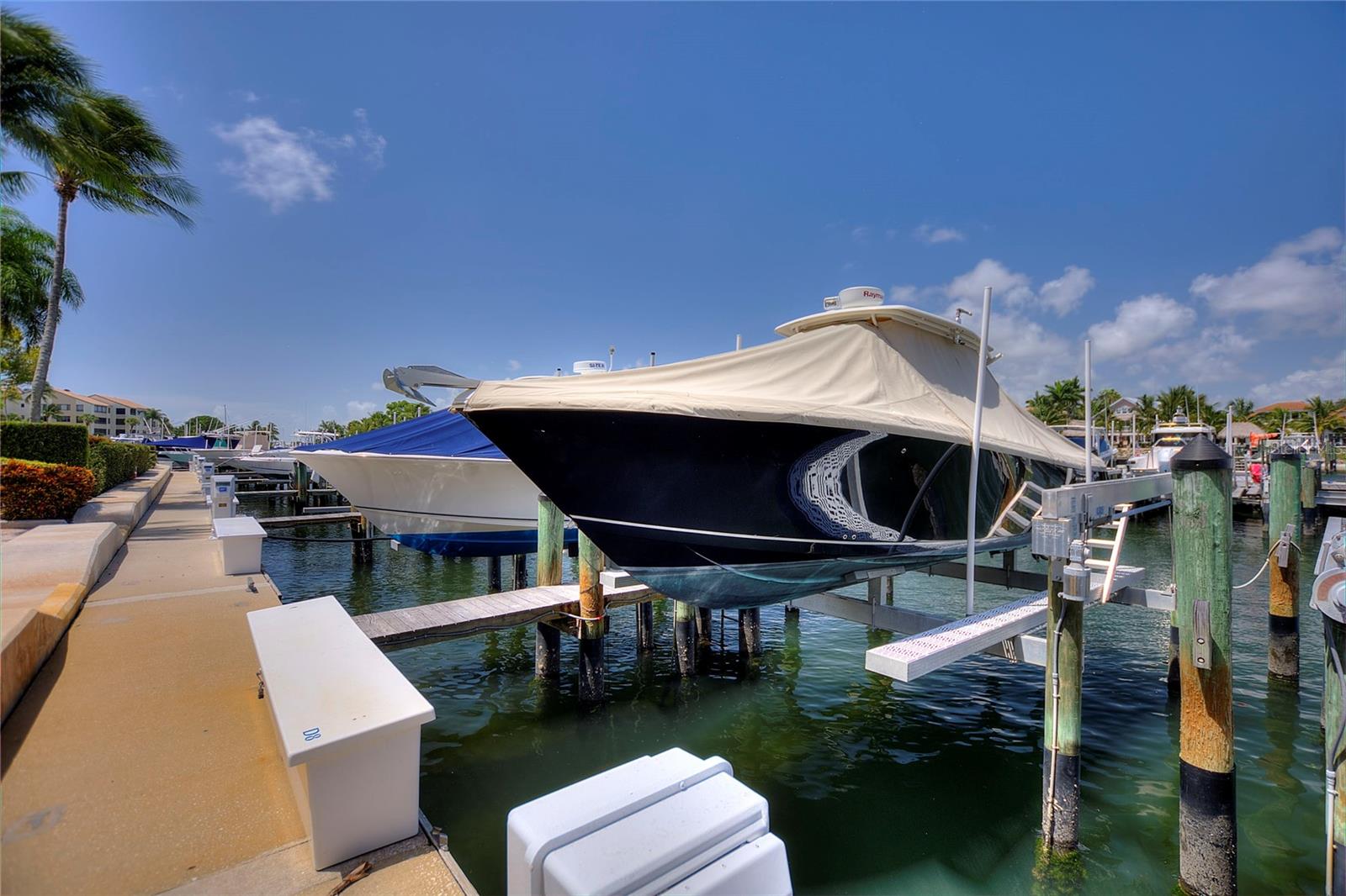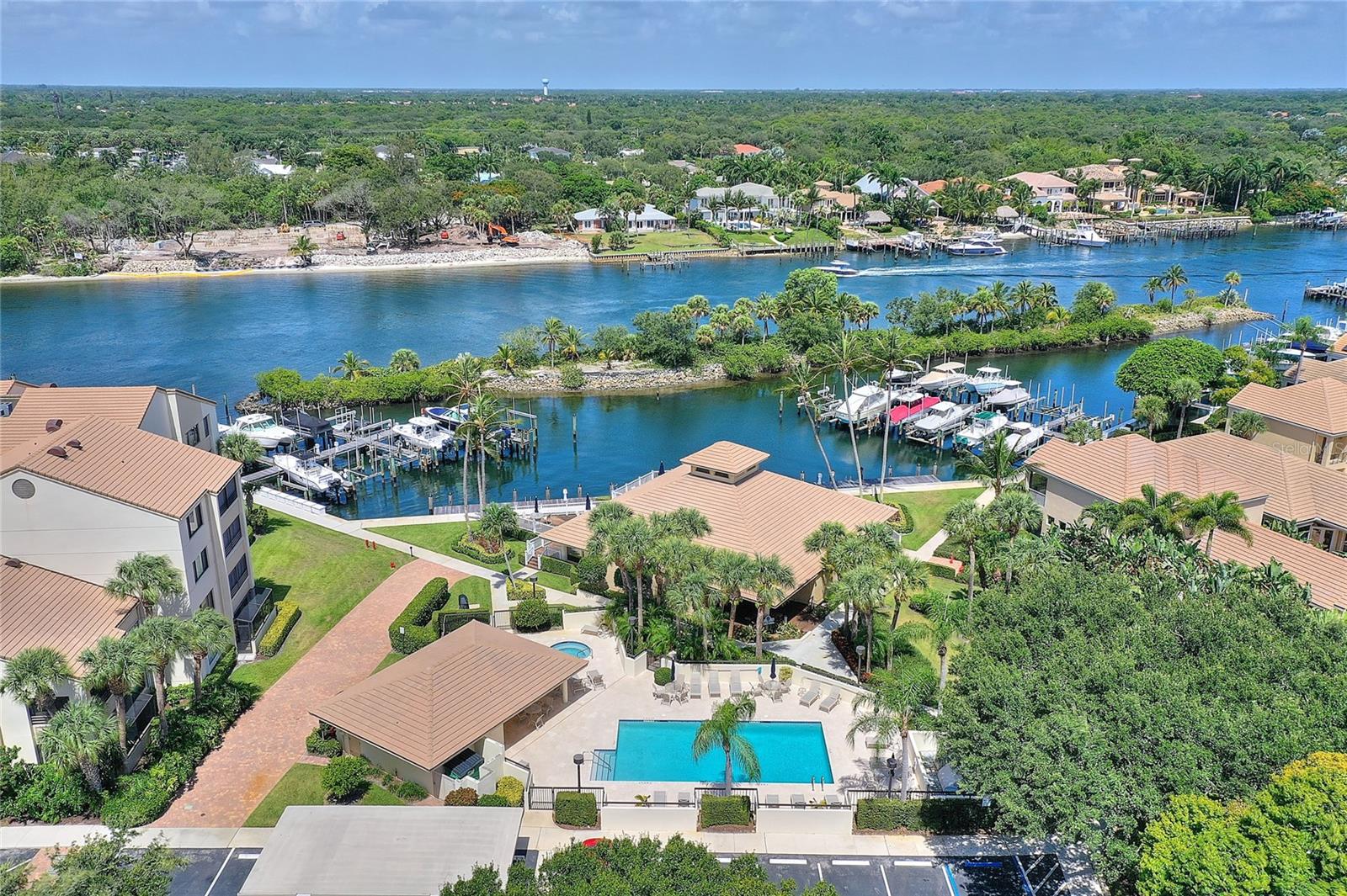 BOATERS PARADISE. CONDO AND DOCK. Beautiful waterfront condo first floor end unit a few steps to your boat dock. Dock is D-08 and has electric & water with a 20000 pound boat lift. Built in 2020. This is nestled amongst a gorgeous tree lines streets and mature landscaping. 2 bedroom and 2 bathrooms. Open floor plan. Screened in patio with a peek of Intracoastal. Clubhouse and fitness center, 2 pools, tennis courts. Resort style living with the beach and restaurants close by. Easy, relaxed living with all of the best of Florida has to offer.